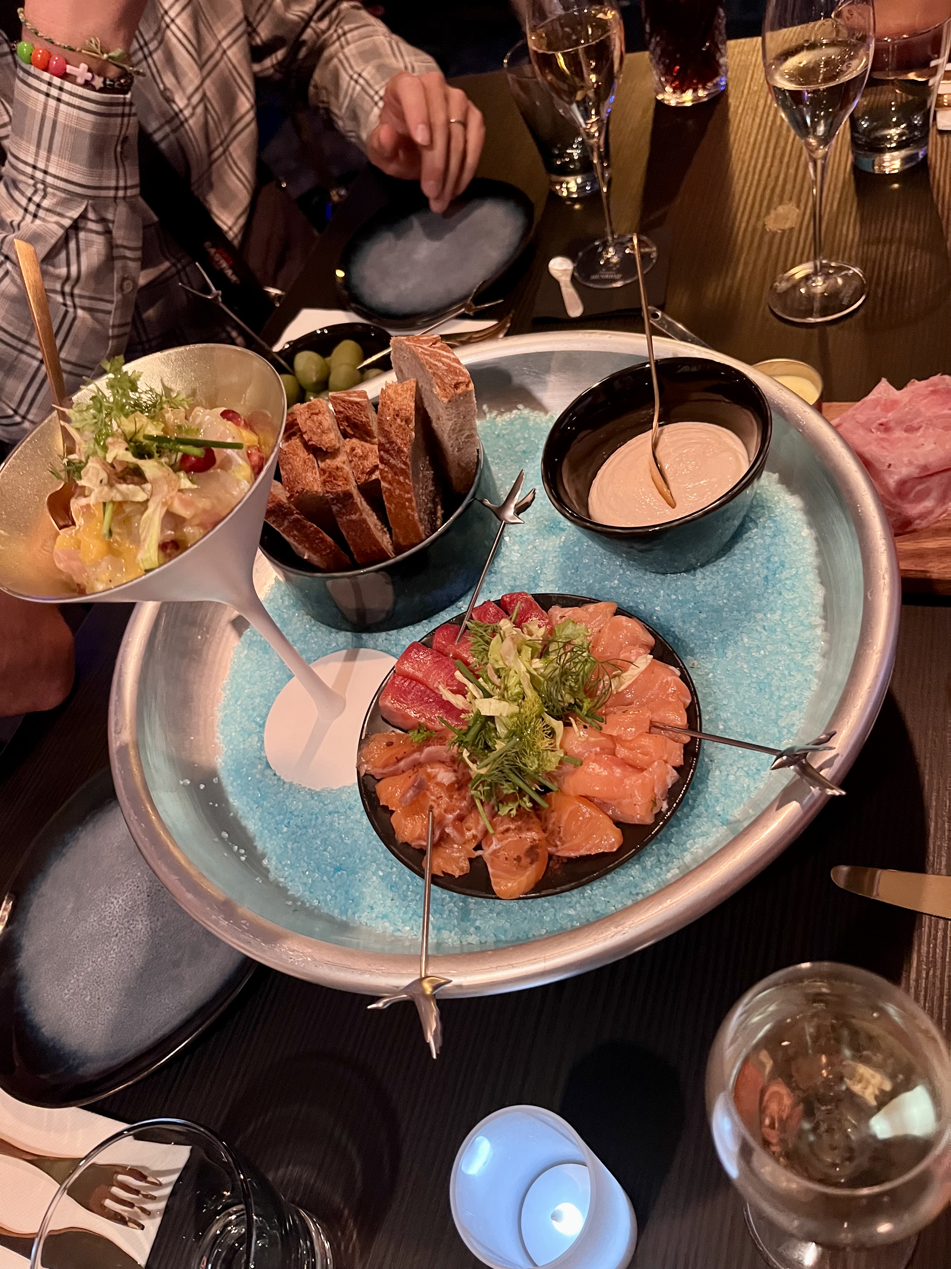 Soirée intimiste , cuisine de très grande qualité, gourmet ,acceuil chaleureux , déco très coucoun, le lieu de tous les possibles 😉 … beau salon fumeur rare à Paris …