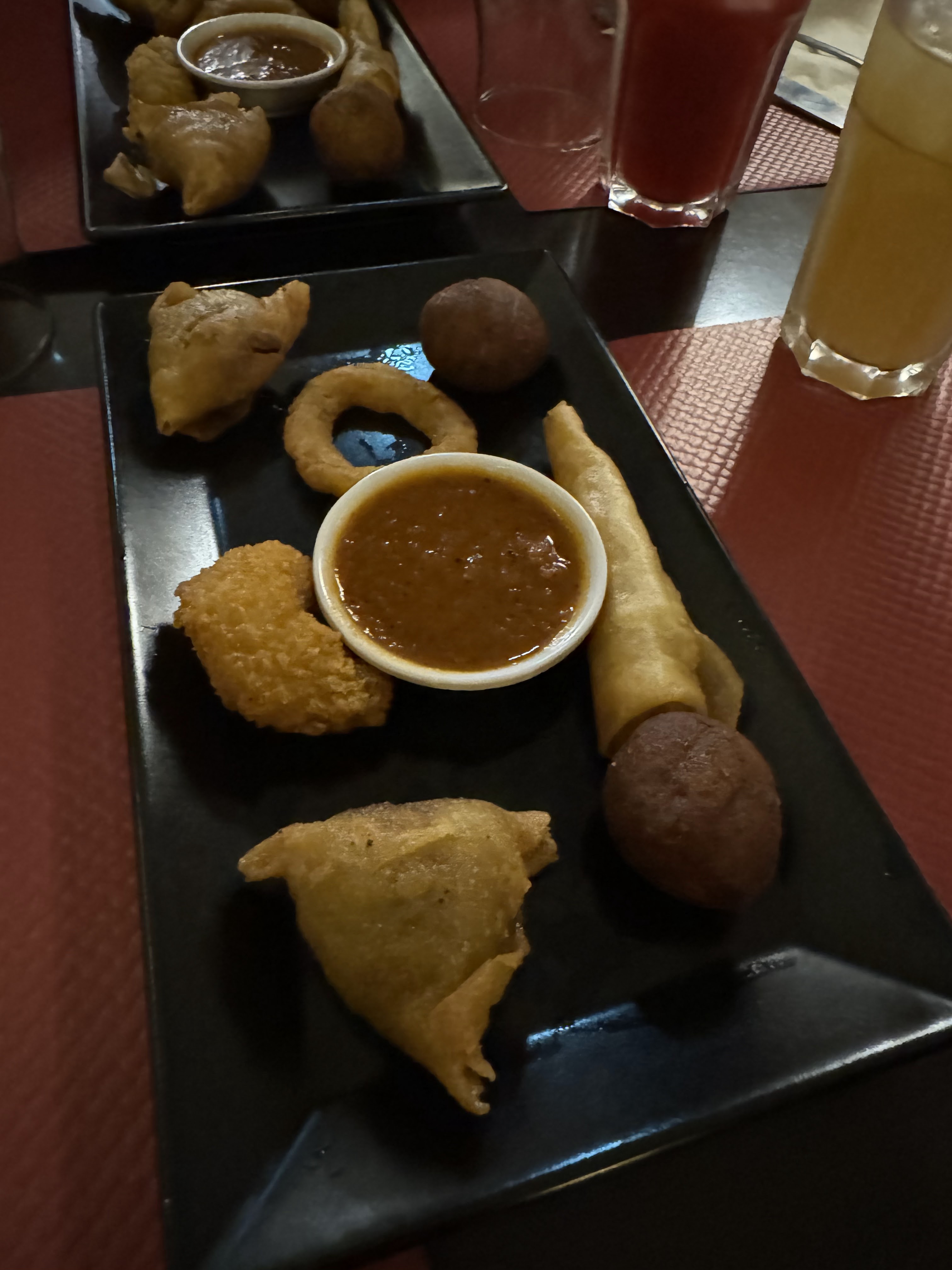 Hello les gourmands, Waouhhhhh !! Sérieusement on a eu la chance de partir en Afrique le temps d’un repas. Pour commencer un accueil hyper chaleureux la tenue le sourire ... la solution pour nous placer en terrasse. Magnifique. On a pris des entrées un délice des tapas à partager et ensuite les plats avec des sauces différentes. Les couleurs étaient là sans oublier le goût !!!! Un délice les bananes plantains habituellement mes enfants n’aiment pas ... eh bien l’assiette terminée! Le poulet grillé et sa peau croustillante. Le cocktail du moment ... tout tout étais délicieux et surtout abordable. Alors sans hésitation faites une halte régalez vous et partagez! 😚