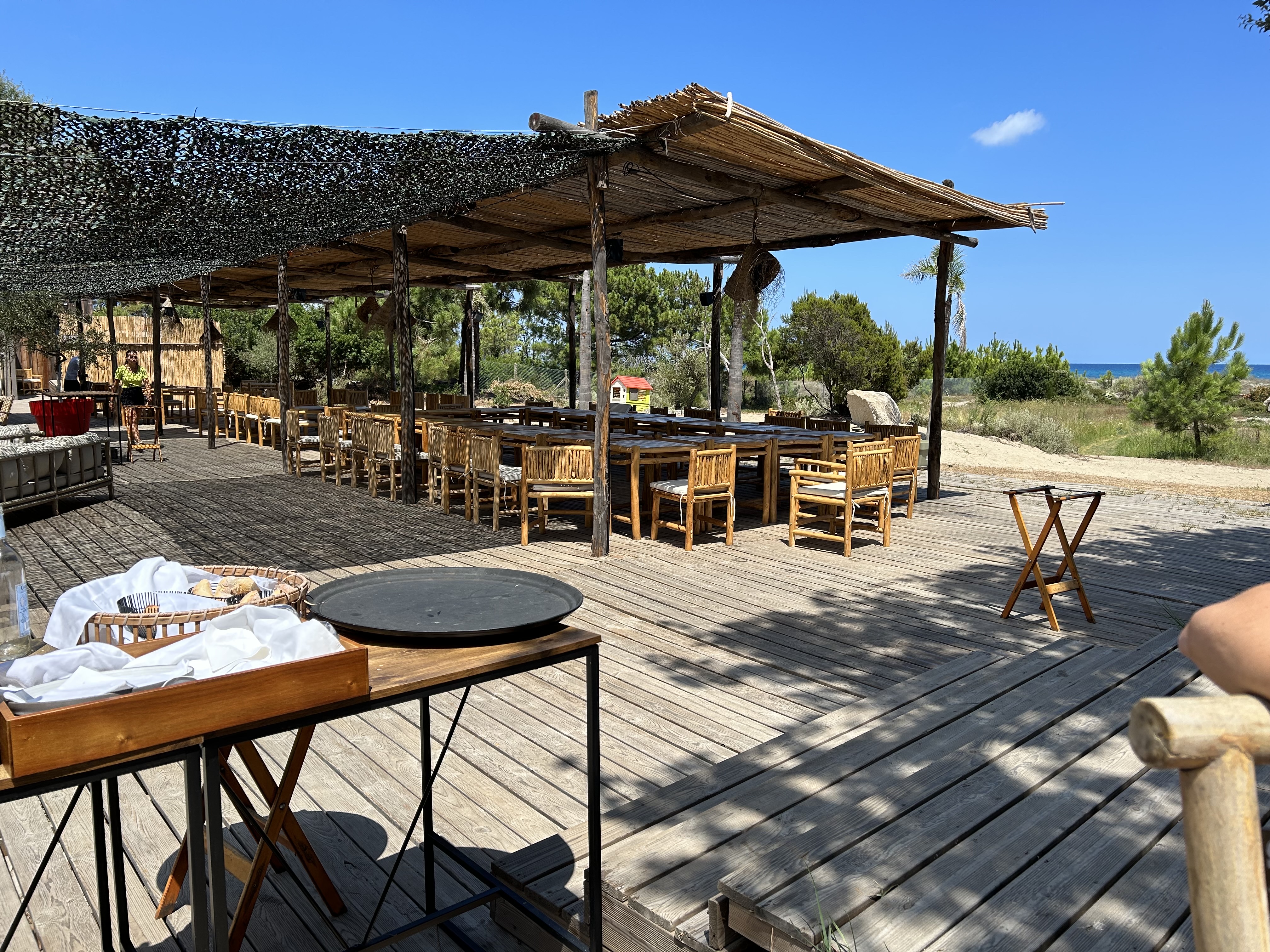 Belle découverte, ce restaurant en bord de plage est simplement splendide le cadre nous a vraiment charmés j’y vois bien même une réception pour un baptême ou un anniversaire de mariage. Au niveau de la cuisine les plats proposés à la carte son simples et efficaces quoiqu’un peu plus cher qu’ailleurs.. Le service était correct mais j’ai été surprise quand la serveuse nous a demandé ce que nous voulions dire par « digestif » peut-être n’est-ce pas commun sur le continent de finir le repas par un linoncellu ou une myrte! Le seul bémol que je reproche énormément à l’établissement c’est le manque de carte physiques. De nos jours pas tout le monde ne dispose d’un smartphone qui peut lire les QR codes ou alors je pense à des personnes comme ma grand-mère qui est âgée et qui ne sait pas se servir de cette technologie c’est dommage. Le menu version papier est indispensable dans un restaurant, même à la lecture c’est plus agréable. A part ça nous y avons bien mangé et le cadre était très agréable, attention cependant aux moucherons et moustiques c’est la conséquence d’être en bord de mer, prévoyez la citronnelle.