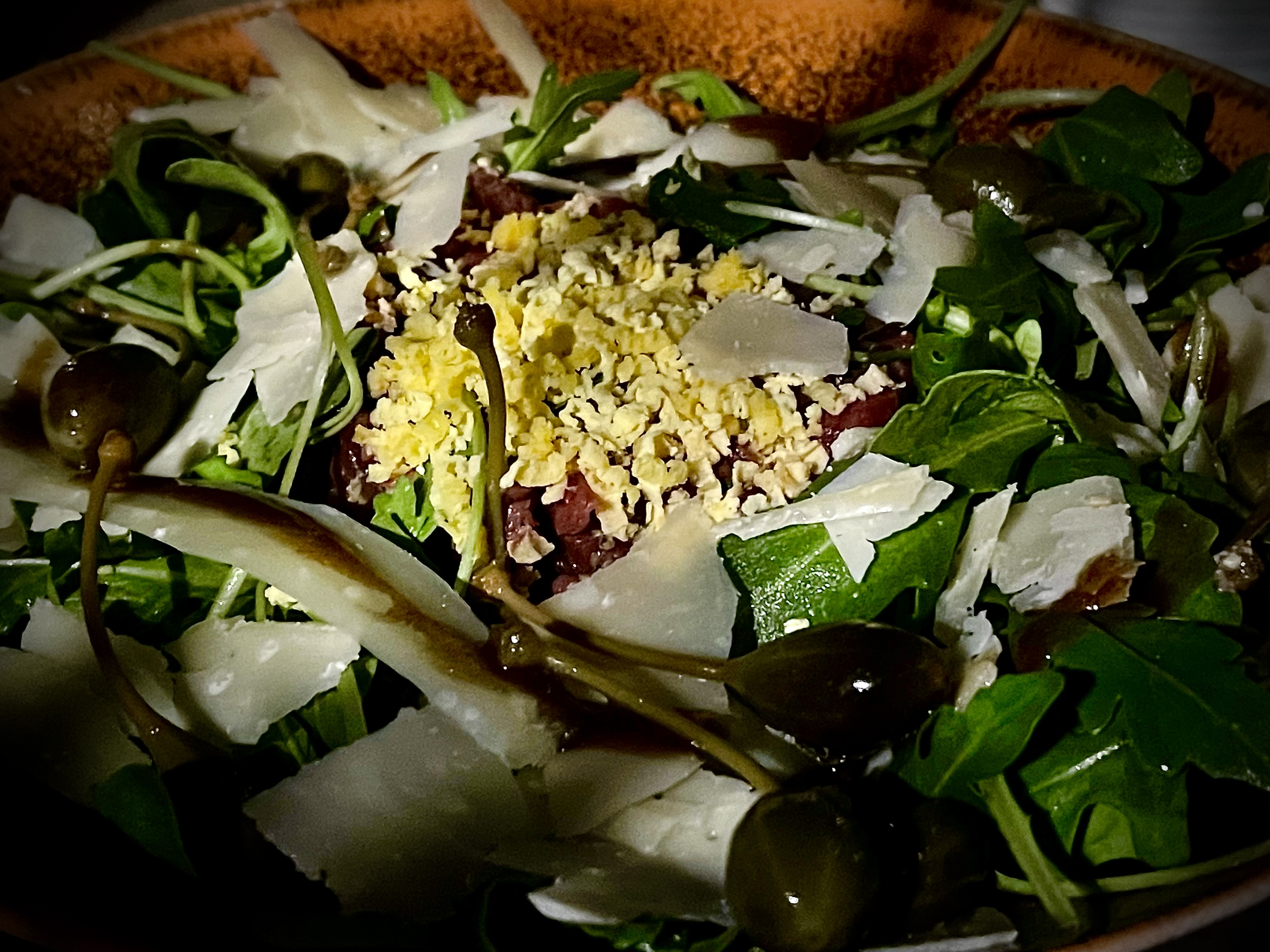Des beignets de fromages frais en entrée dont la taille est risible et pour un prix exorbitant. 18 euros pour 6 mini beignets à moitié cuit . J'ai déjà vu des panzarotti plus gros... Un serveur insistant à nous faire goûter le vin alors qu'on boit toujours nos cocktails... Une côte de boeuf à 65 euros dont la provenance est inconnue. Et dont la qualité ne laisse pas penser que le prix est justifié, qui plus est pour ce prix seulement trois petits légumes grillés et deux cuillères à soupe de purée de patate douce. Pour avoir un véritable accompagnement il faut rajouter 4 euros. Quant au dessert des glaces à moitiés fondues. Pour ma part tartelette à la vanille à 12 euros façon pierre hermé.... il aurait été utilise de marquer micro tartelette, c'est limite une mignardise.. Une table de 4 à plus de 300 euros. Pour de la nourriture dont la qualité ne justifie aucunement le prix. Seul le cadre donne juste un cachet à l'établissement qui n'est qu'un attrape touriste. Quand on voit qu'à l'addition même pas les cafés ont été offerts. Une de nos connaissance a des collègues qui ont fait un repas avec une tablée de 20 personnes, en on eu pour plus de 900 euros. ils n'ont même pas eu , eux aussi, les cafés offerts....