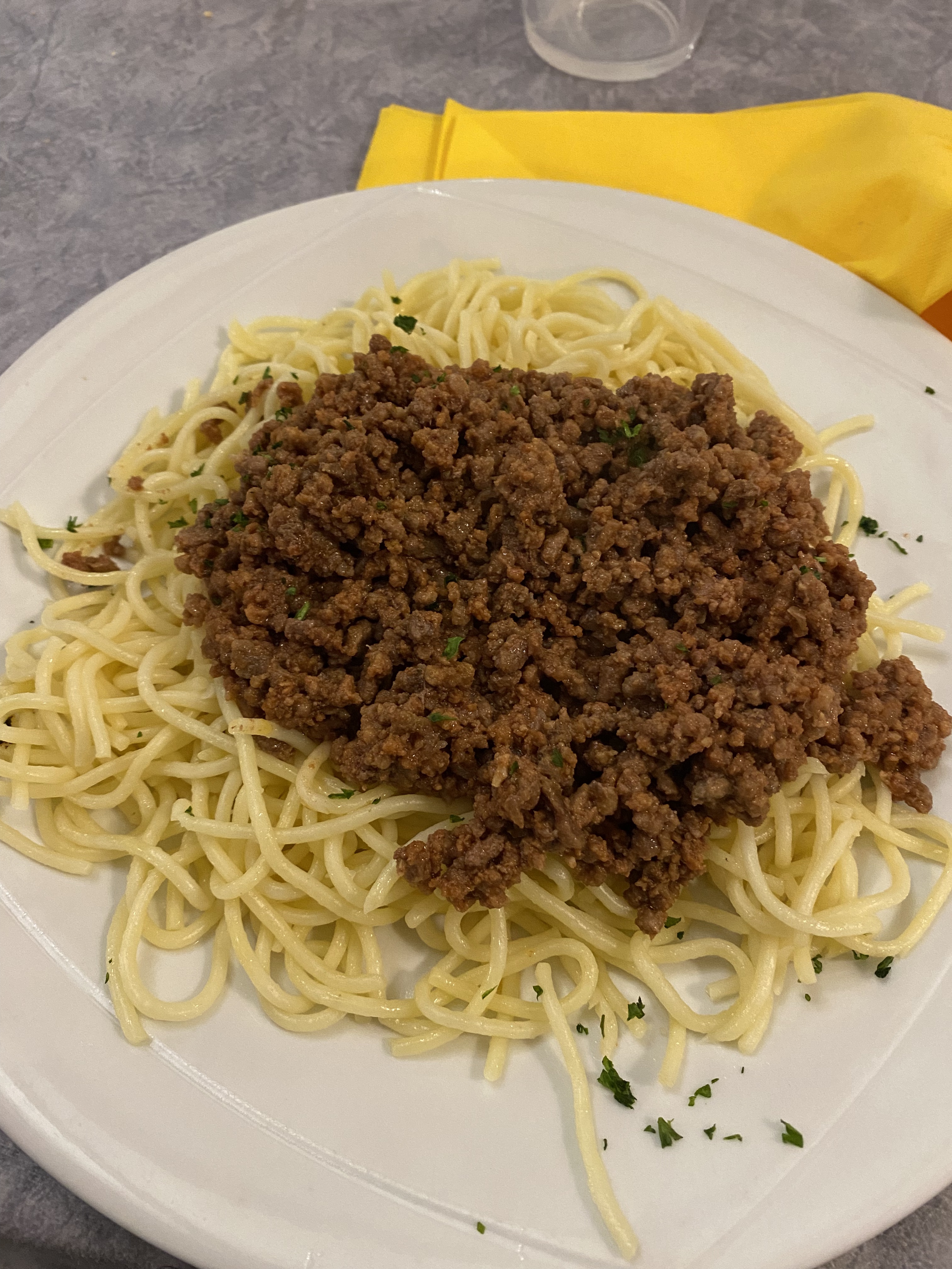 Malheureusement il y a que l’accueil qui est agréable. 🫣 La déco du lieu est comme les plats proposés, c’est austère. Je dirai que la cuisine correspond à une cantine. La garbures est bonne cependant, le plat de pâtes à la bolognaise est raté ! Le plat est composé uniquement que de 2 éléments : pâte et viande haché! Mais où est la sauce bolognaise??? 😑 Dessert industriel