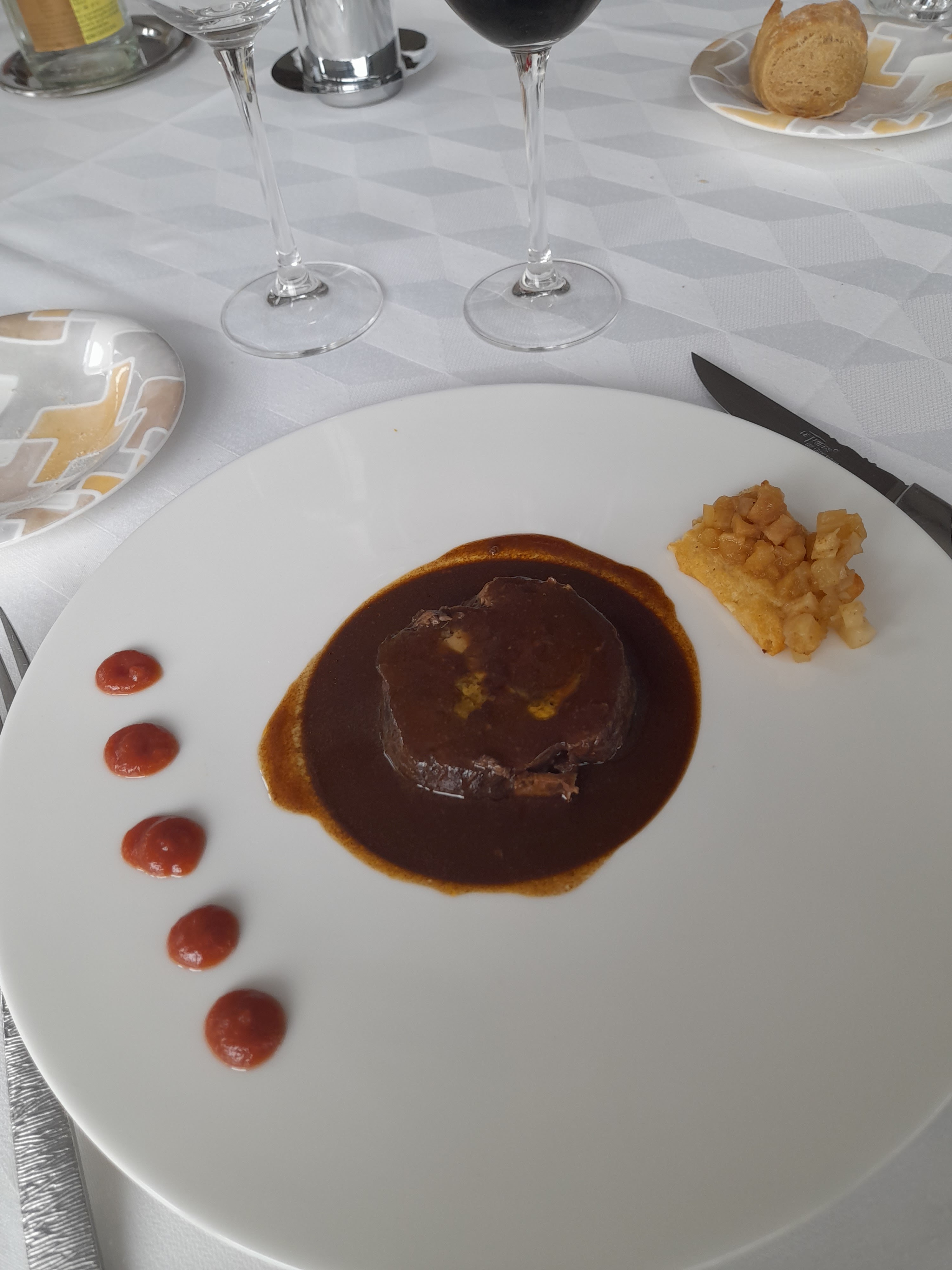 la présentation des plats, la qualité des mets, la belle carte des vins, les amuse bouches, le service irréprochable, tout est réuni pour passer un agréable moment, tout petit bémol le cadre un peu classique, c'est un restaurant qui vaut vraiment le déplacement