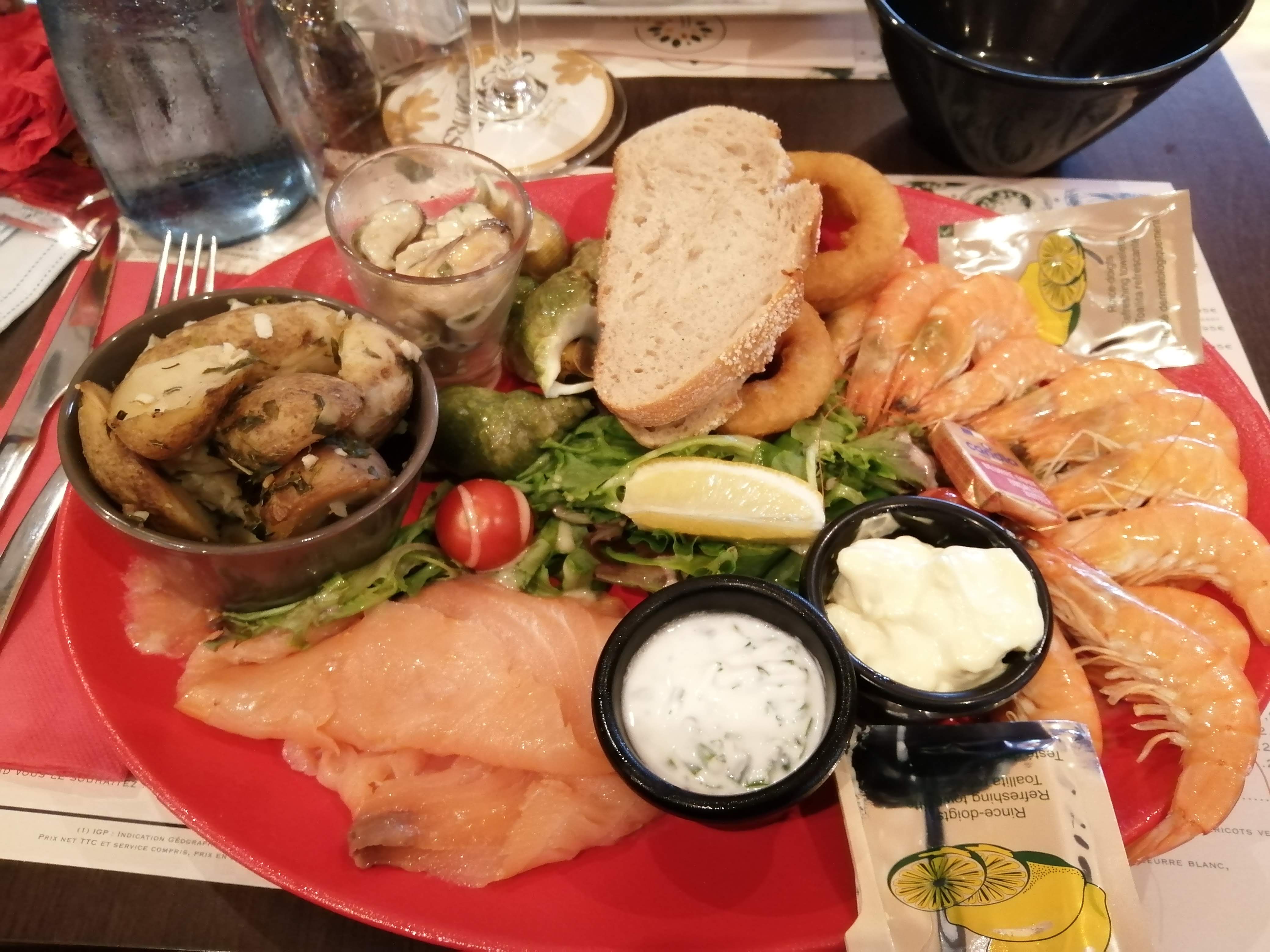 Très bon accueil buffet d'entrée très bien dû à la différence des autres enseignes verrine, crevette, bulot et saumon cuit le seul inconvénient sortie sur le côté le soir même pour les personnes à mobilité réduite.