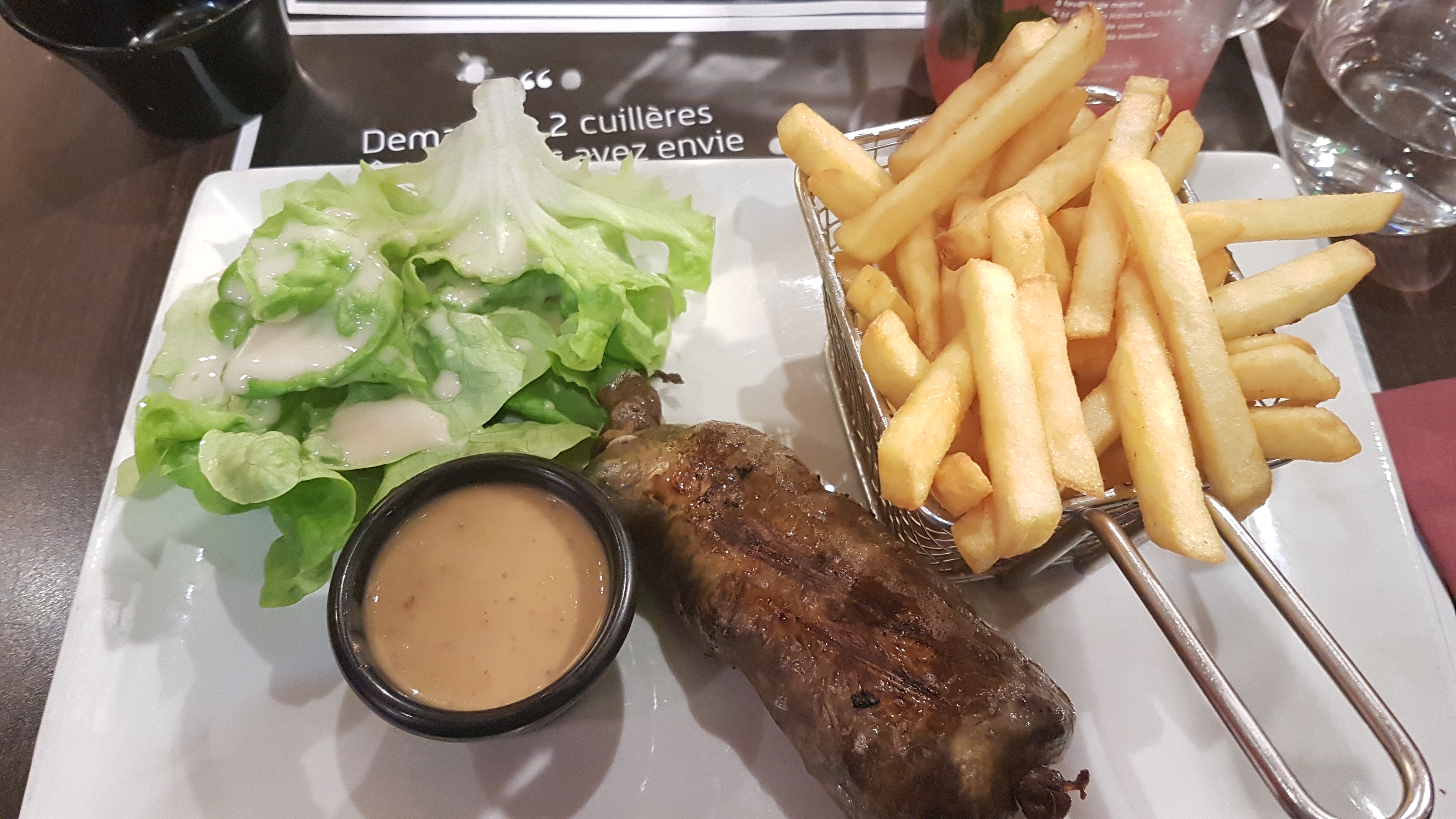 Bof!! Plus que médiocre!! Tres long!! Pas de pain malgré notre demande..carafe d'eau arrivee tardivement après 2 réclamations...frites congelées trop cuite!! Andouillette trop cuite!! Sauce Roquefort d'accompagnement bcp trop liquide!! Seul point positif la piece du boucher.. Service trop long..de plus cher pour la prestation !