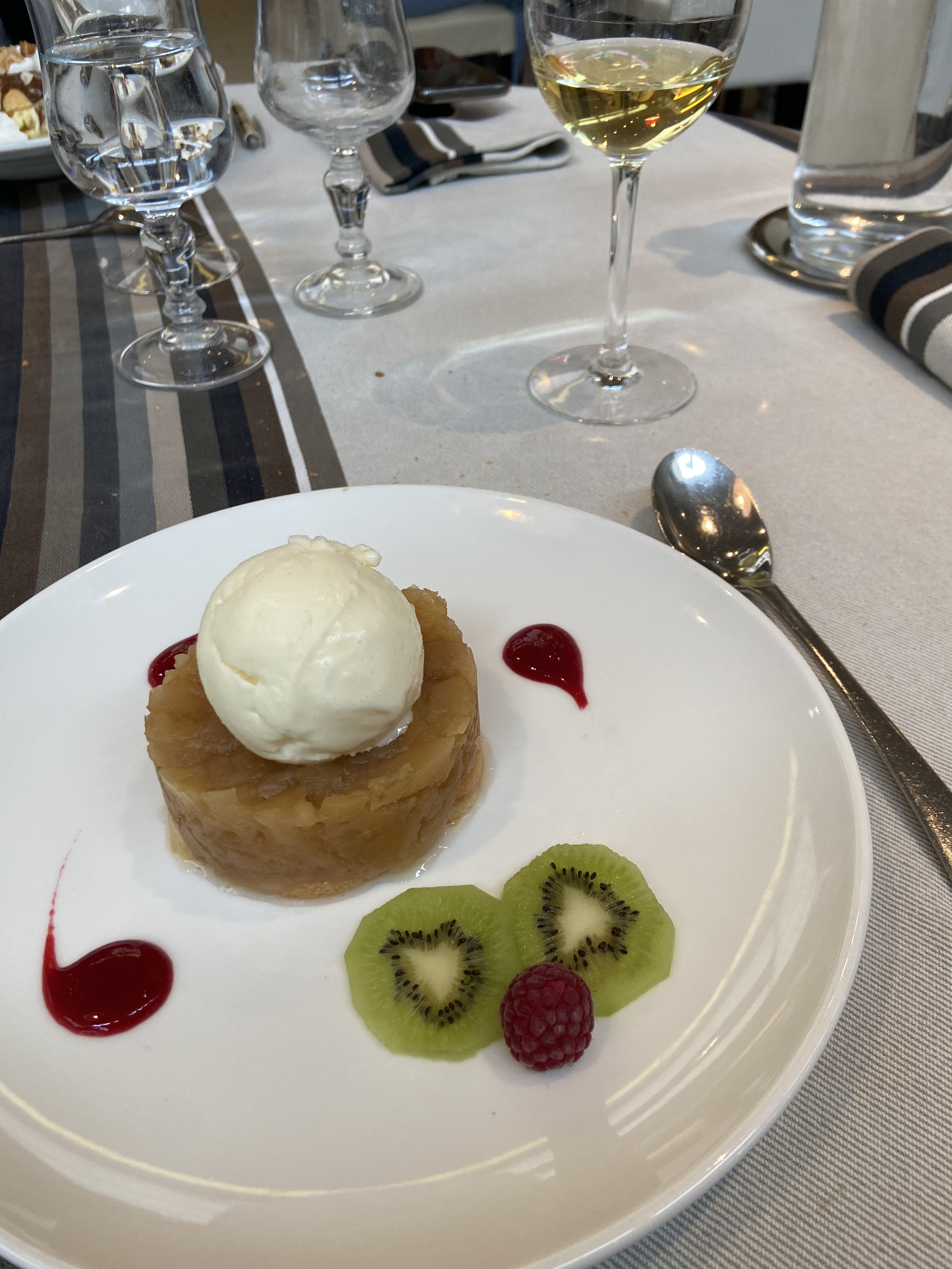 Surprise surprise ! En pleins centre ville ce restaurant simple et dépaysant surprend par des saveurs locales et gourmandes. La carte est concise et surtout promets du fait maison (en vue de sa taille). On s’est régalés ! Petite photo du parfait aux pommes, idéal pour finir sur une touche sucrée