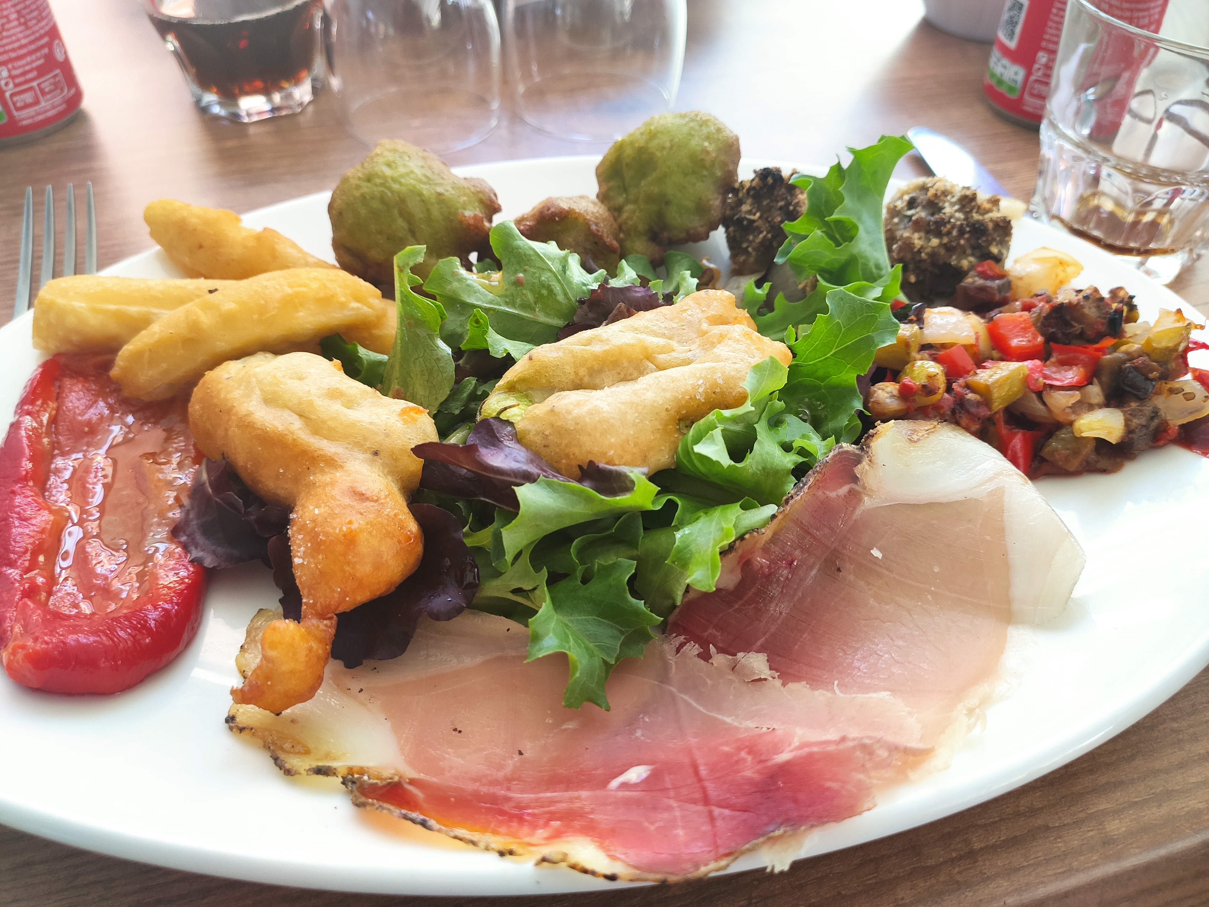 Gnocchi fade ,l’assiette de charcuterie porte mal son nom(pâté,taboulé ,champignons) Donc pas terrible