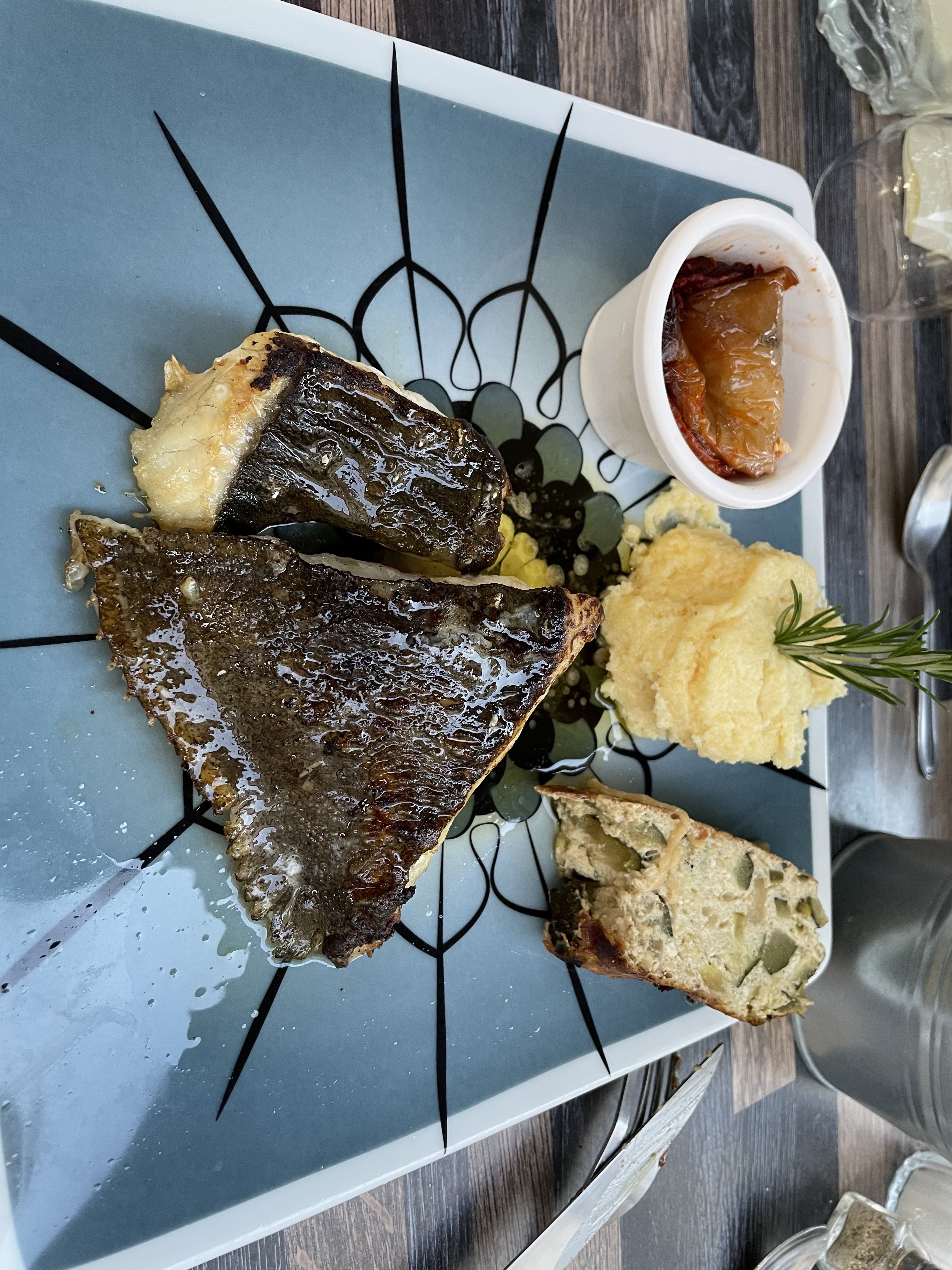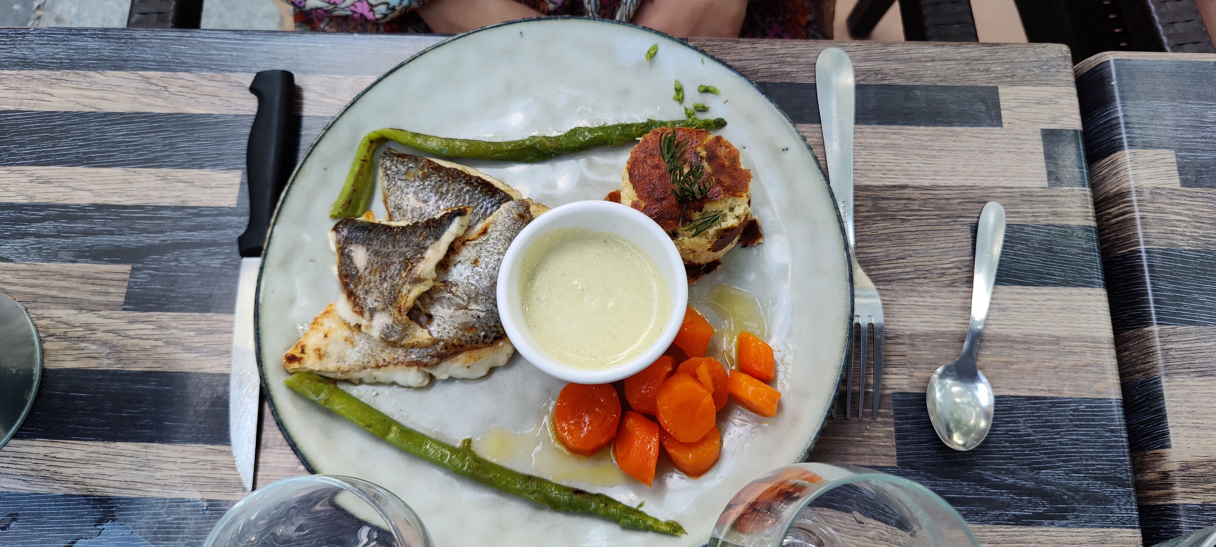 J'ai oublié de prendre une photo du plat tellement c'était bon. Loup à la planxa C'était fabuleux comme d'habitude. Merci