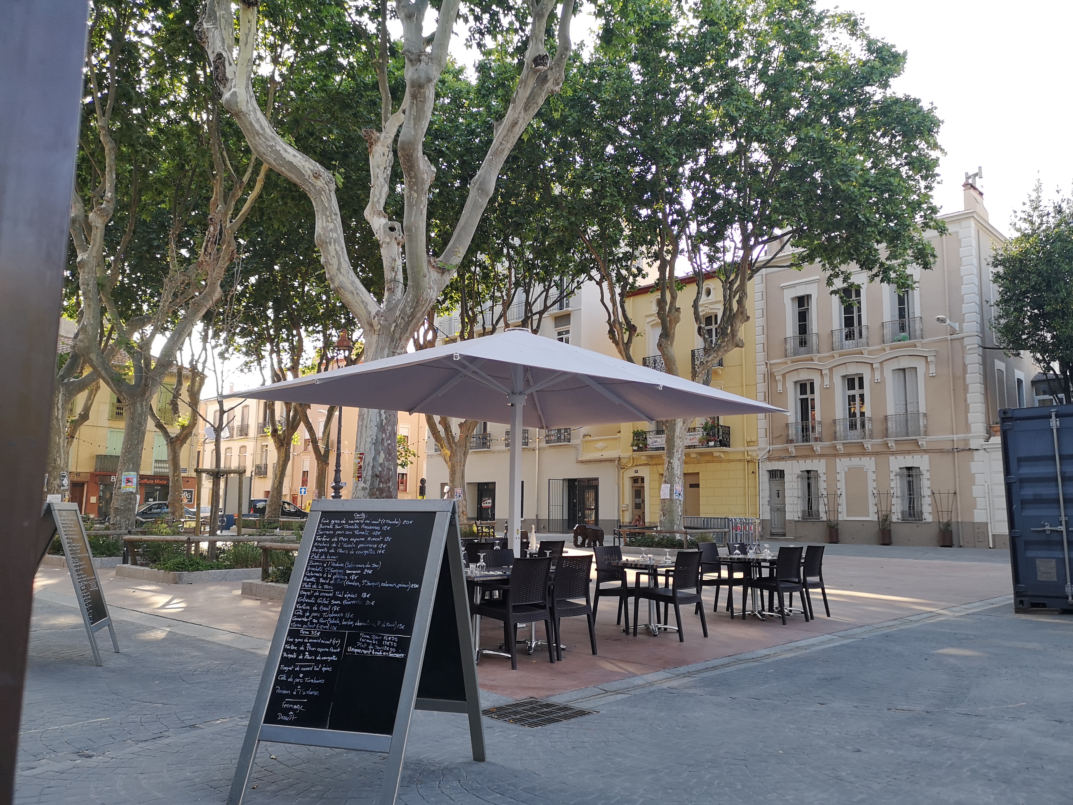 Restaurant avec vu sur une petite place bien agréable et calme en centre ville de Perpignan. Services et repas de qualité. Venez manger sans hésiter