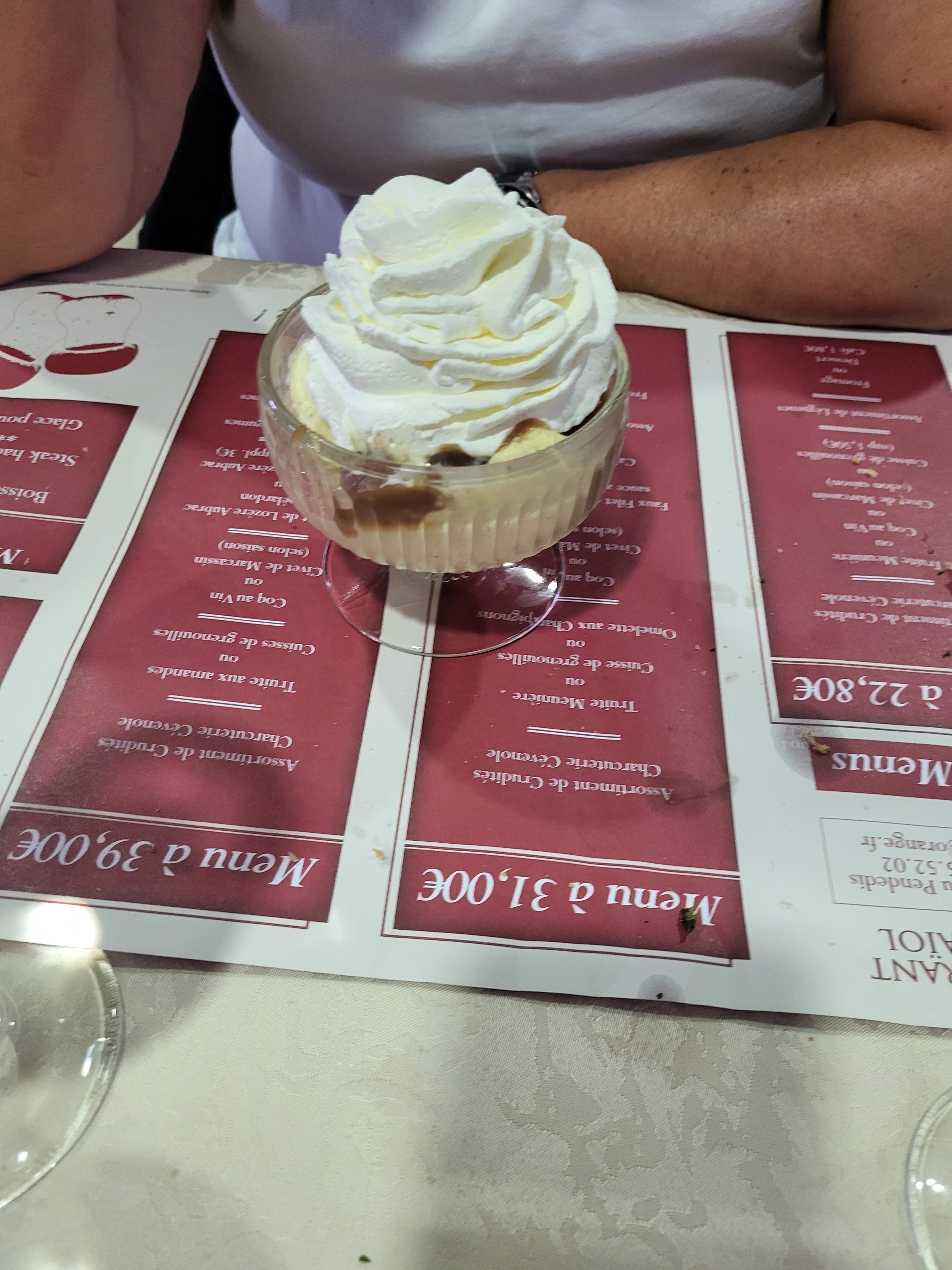 Tres bon repas. Omelette norvégienne excellente et magnifique. Personnel et proprietaire au top. Tres bon acceuil. Produit en vente tres bien. A refaire .je recommande fortement.