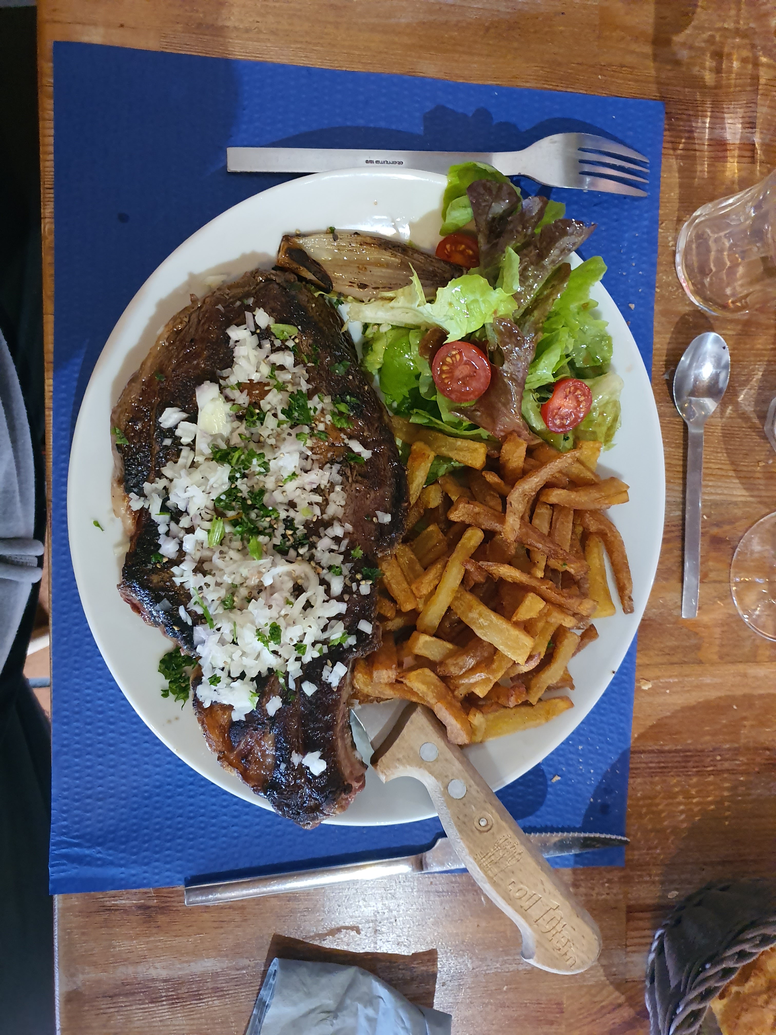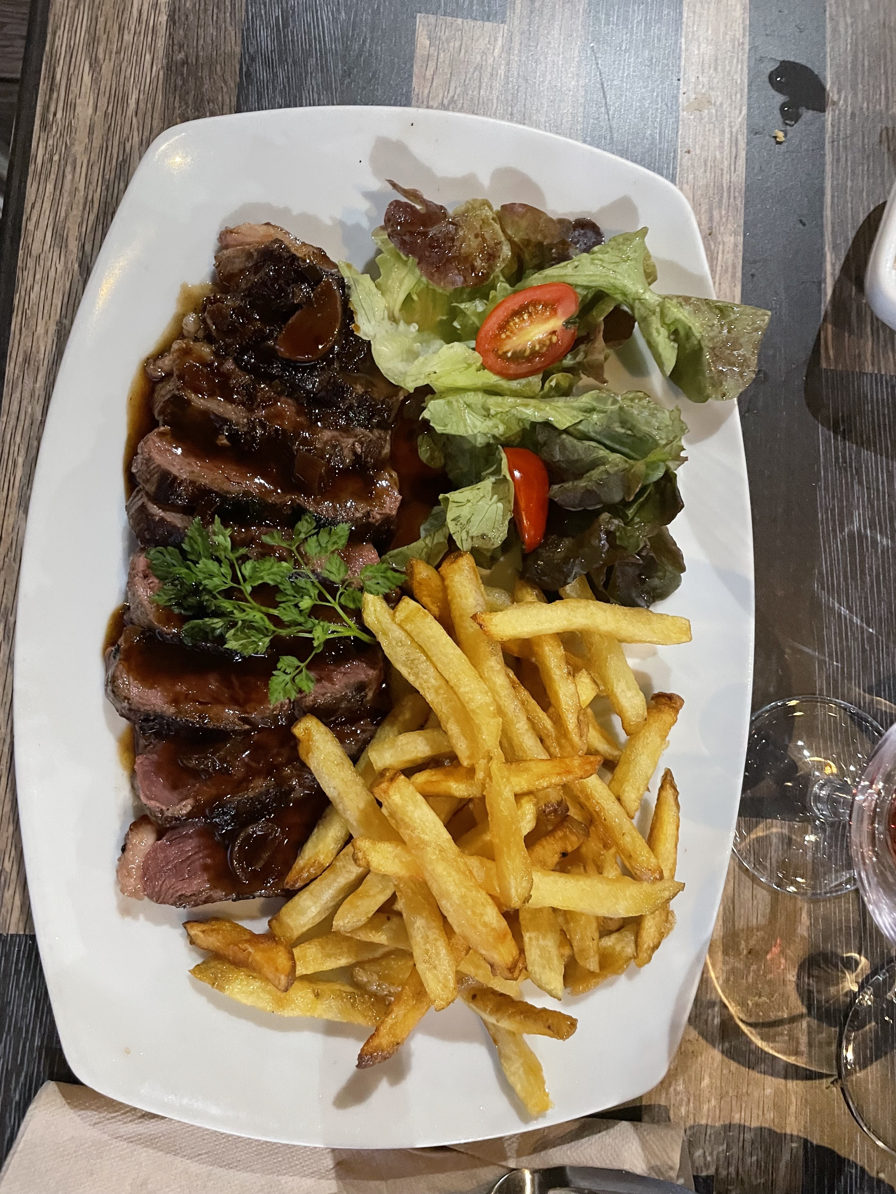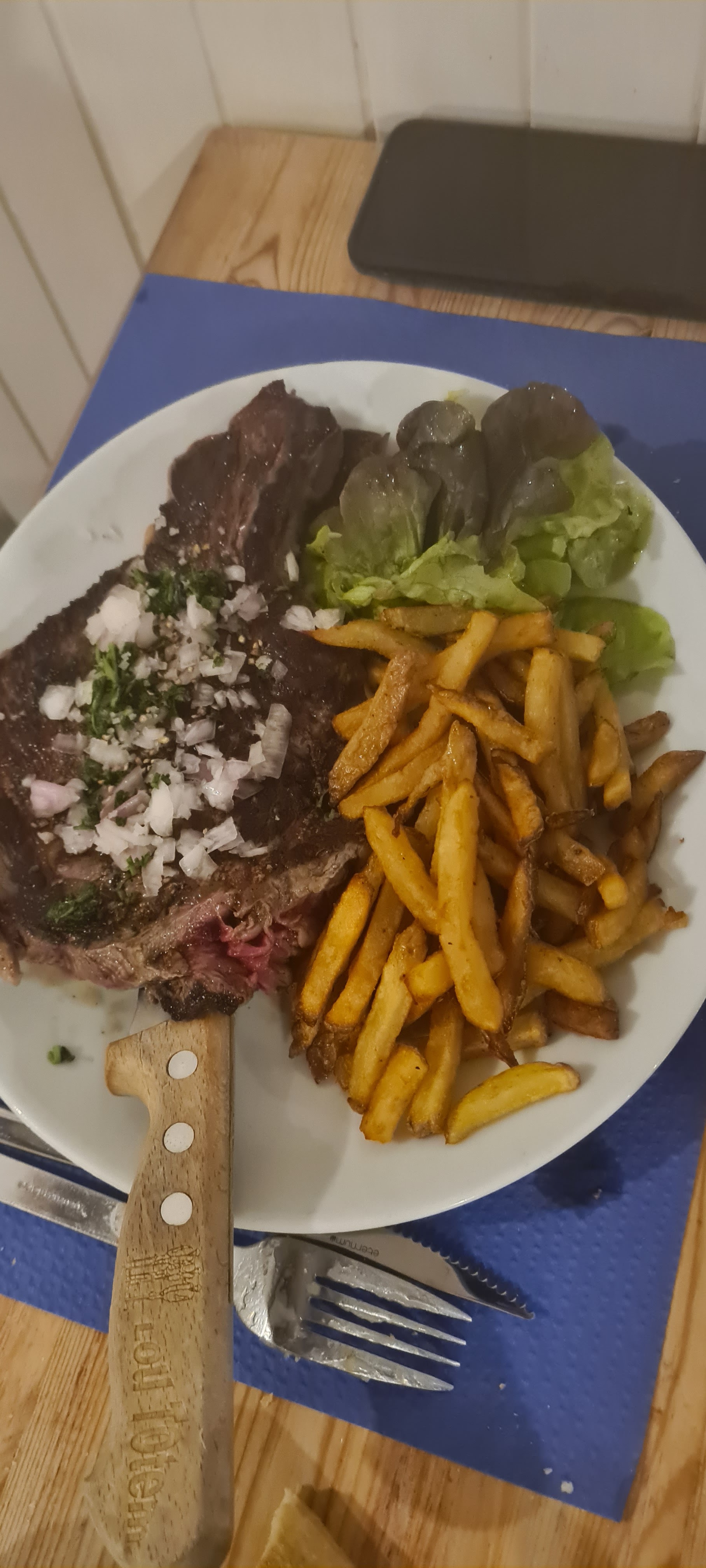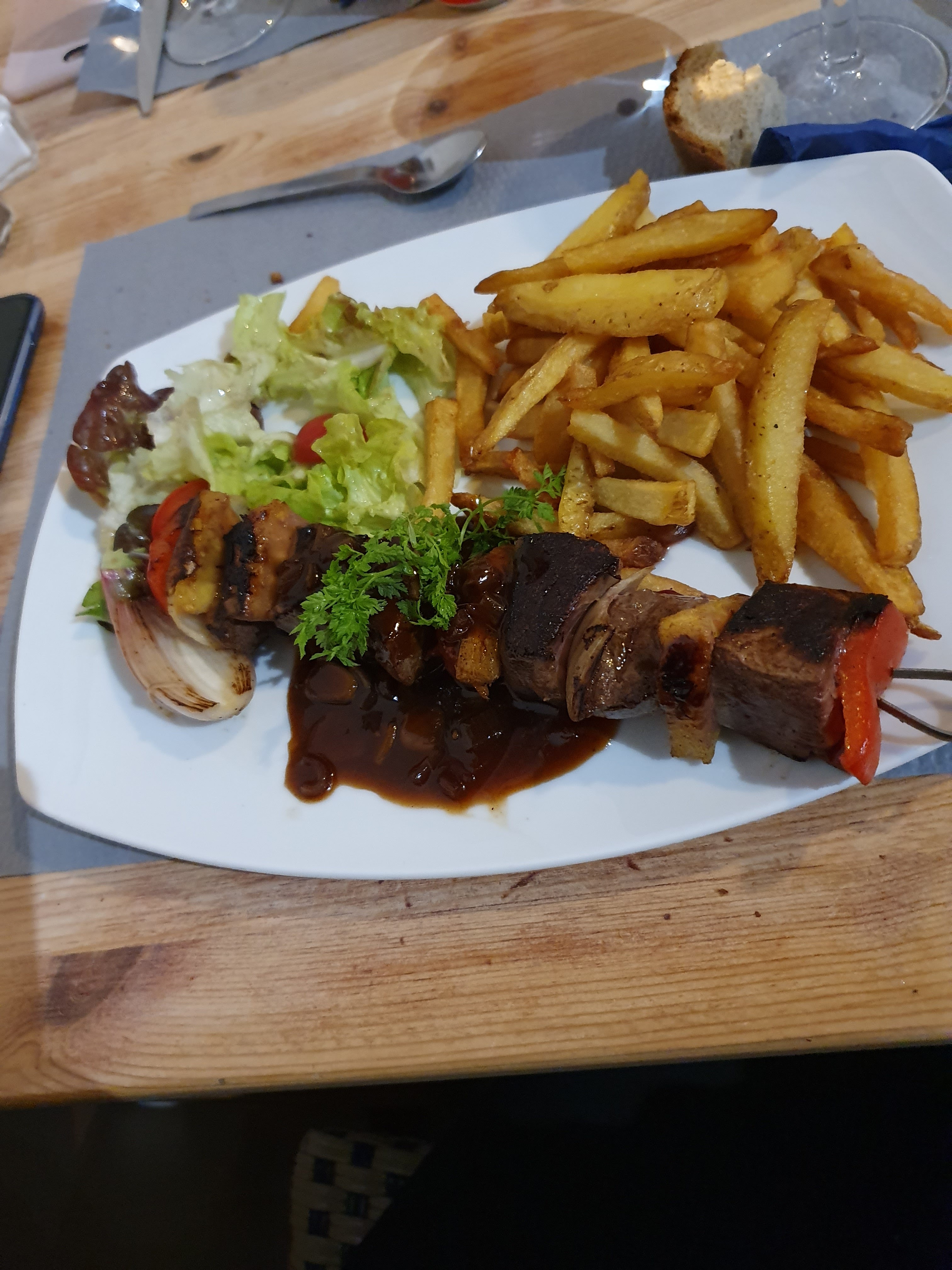 Un vrai régal !! Entrée assiette de gésiers très copieuse. Plat viande du boucher avec frites maisons. Je n'ai jamais mangée une viande aussi tendre, un vrai délice. A recommander !