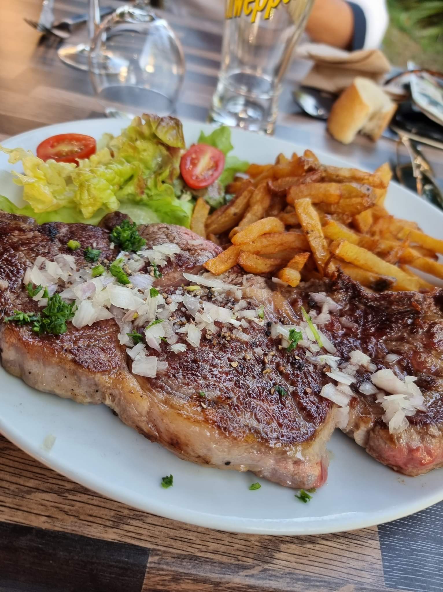 Restaurant idéal pour bien mangé. Pièce du boucher énorme, une entrecôte à l'échalote super bien cuite. Un régal, je conseille vivement d'aller manger là-bas. En plus de bien mangé l'accueil y est agréable et super beau avec un agréable coucher de soleil lors de ma visite. Merci