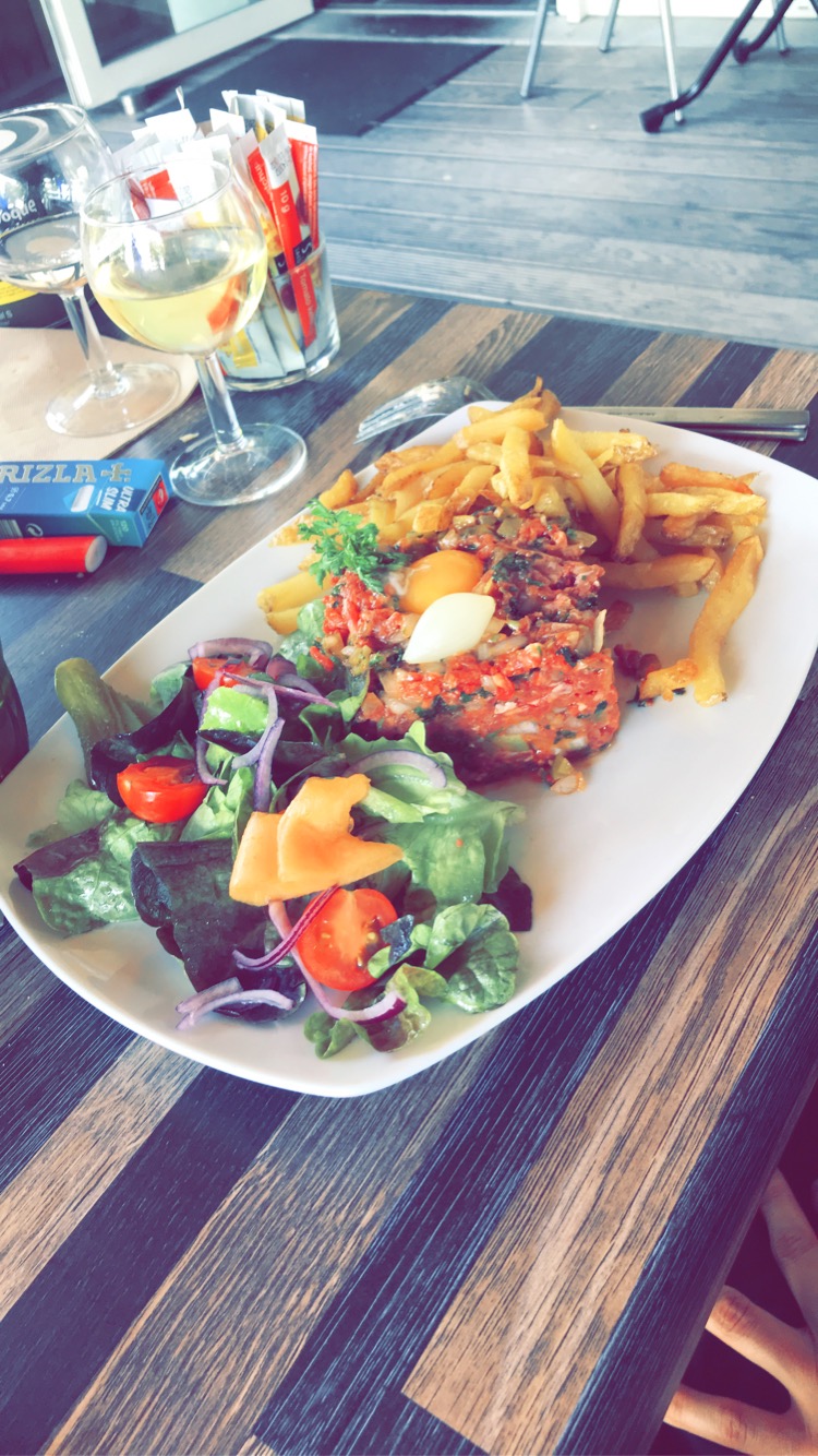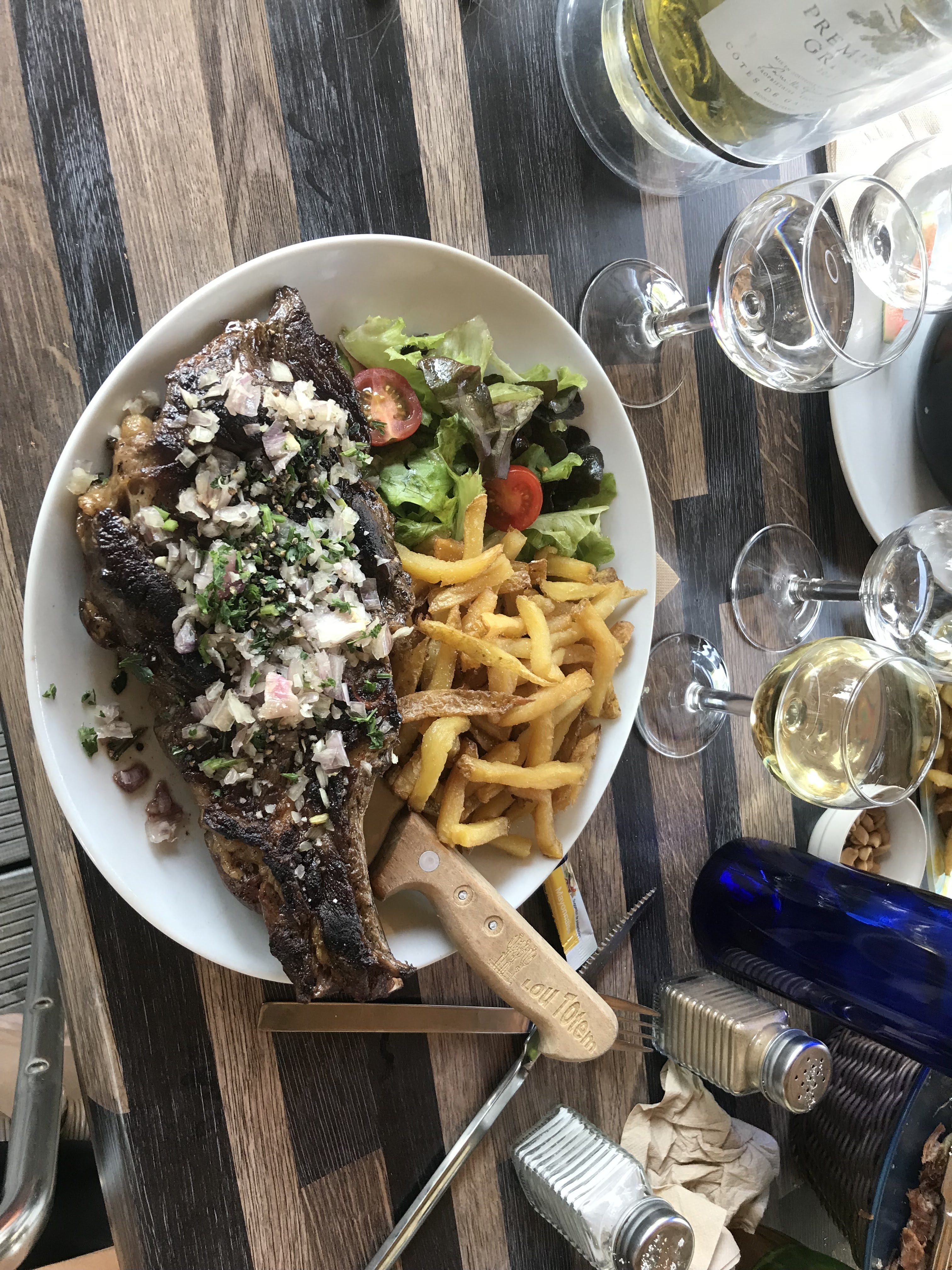 Terrasse agréable, serveuse souriante, bonnes frites! Cependant, pour la pièce du boucher il devrait y avoir des quantités différentes car elle est énorme et il y a du gras, il faut donc trier avant de manger, dommage!