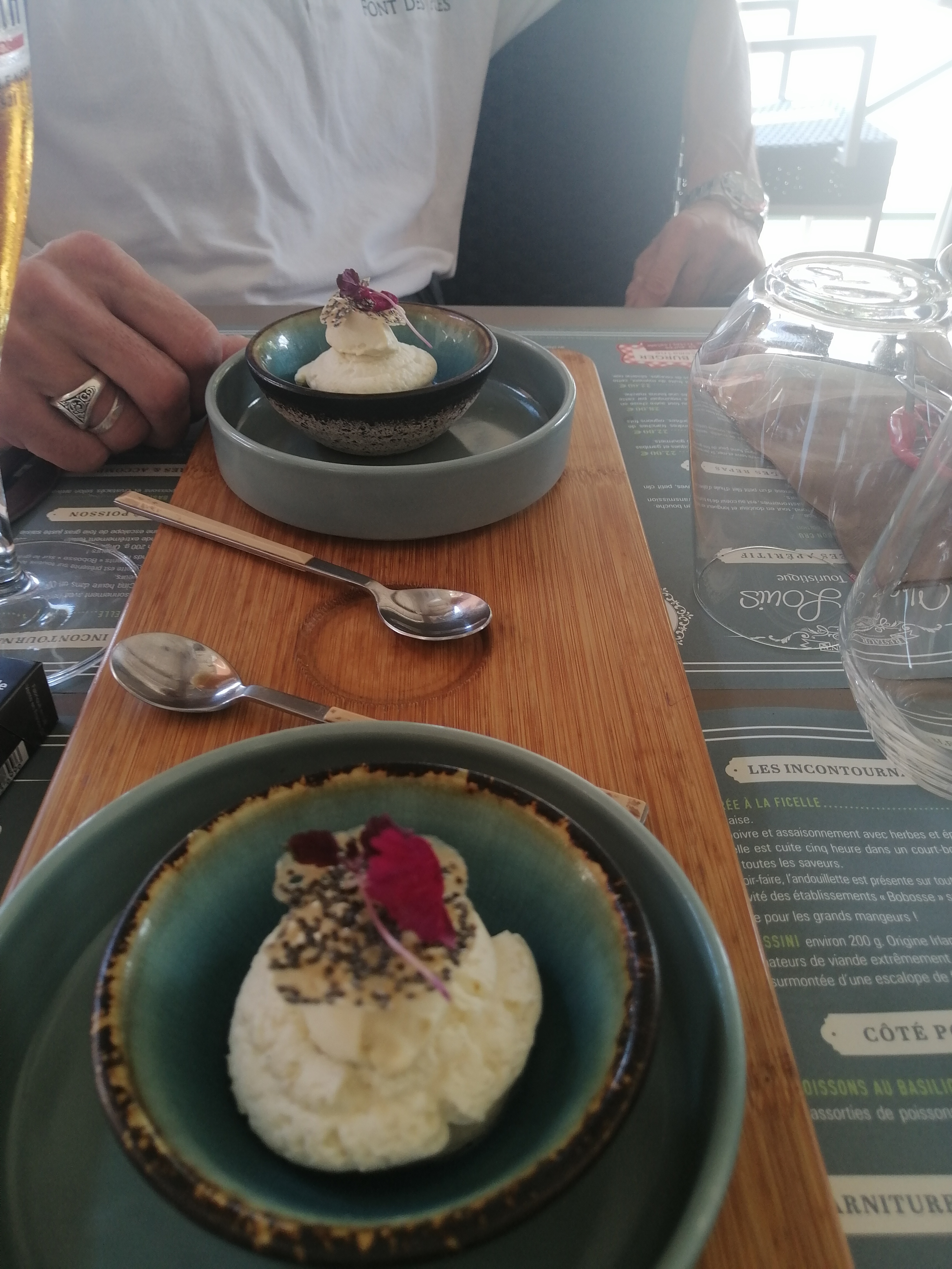 Un dimanche du mois d'aout, très forte chaleur sur la terrasse avec bâche non efficace. Pas de possibilité de manger a l'interieur, dommage. Repas excellent mais rapport qualité prix, assez cher. Nous n'avons pas prix le dessert car 9 €. Trop !