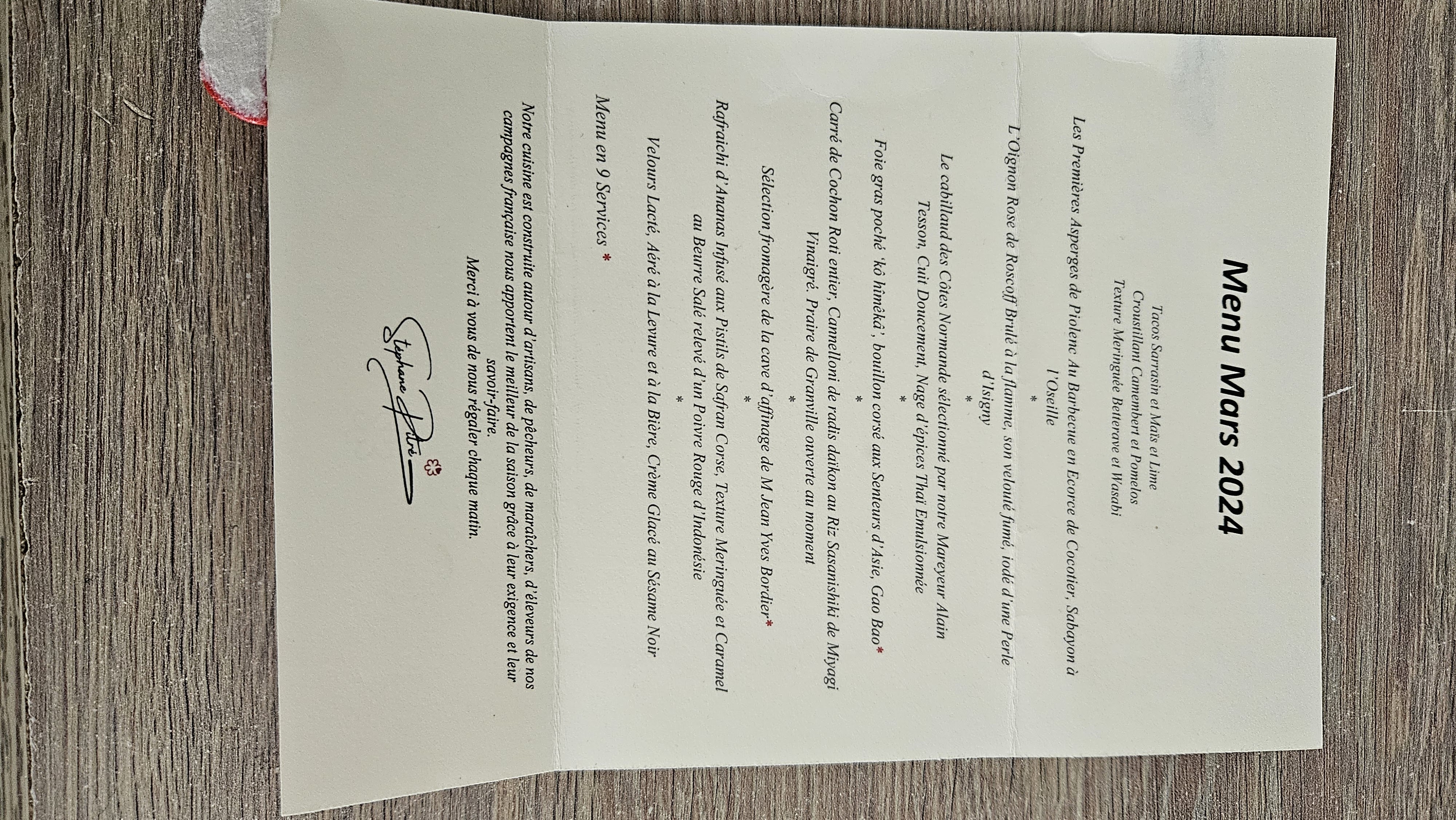Dîner excellent en 9 plats, pour un anniversaire. Cuisine superbe et service impeccable.