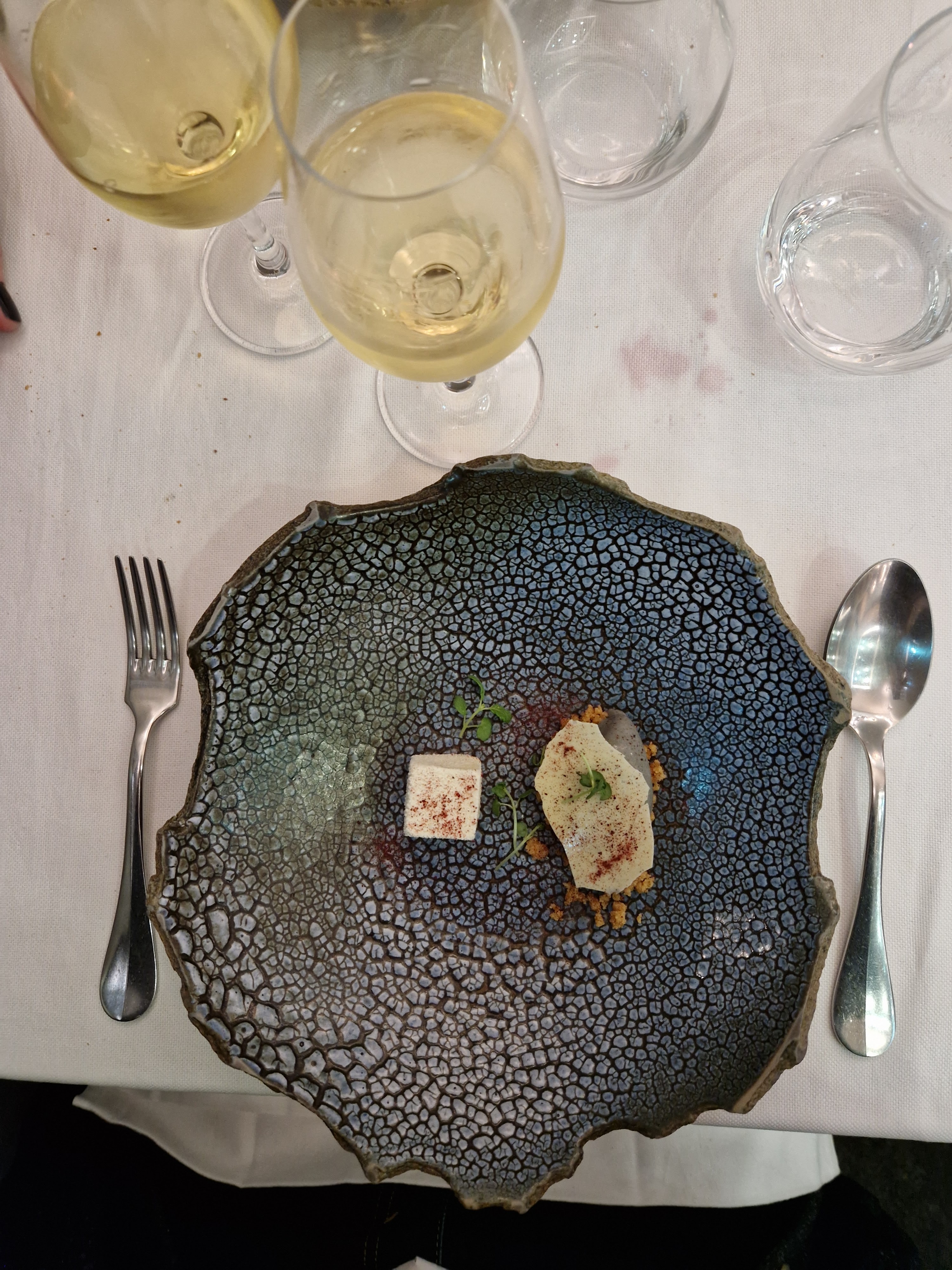 Une expérience gustative incroyable ! Parfait du début à la fin. Menu en 7 plats avec des associations de saveur fabuleuses. Mentions spéciales pour le cabillaud cuit à la perfection et le dessert (crumble d'olives noires/ganache chocolat/huile d'olive) absolument divin. Bravo au chef et à toute son équipe.