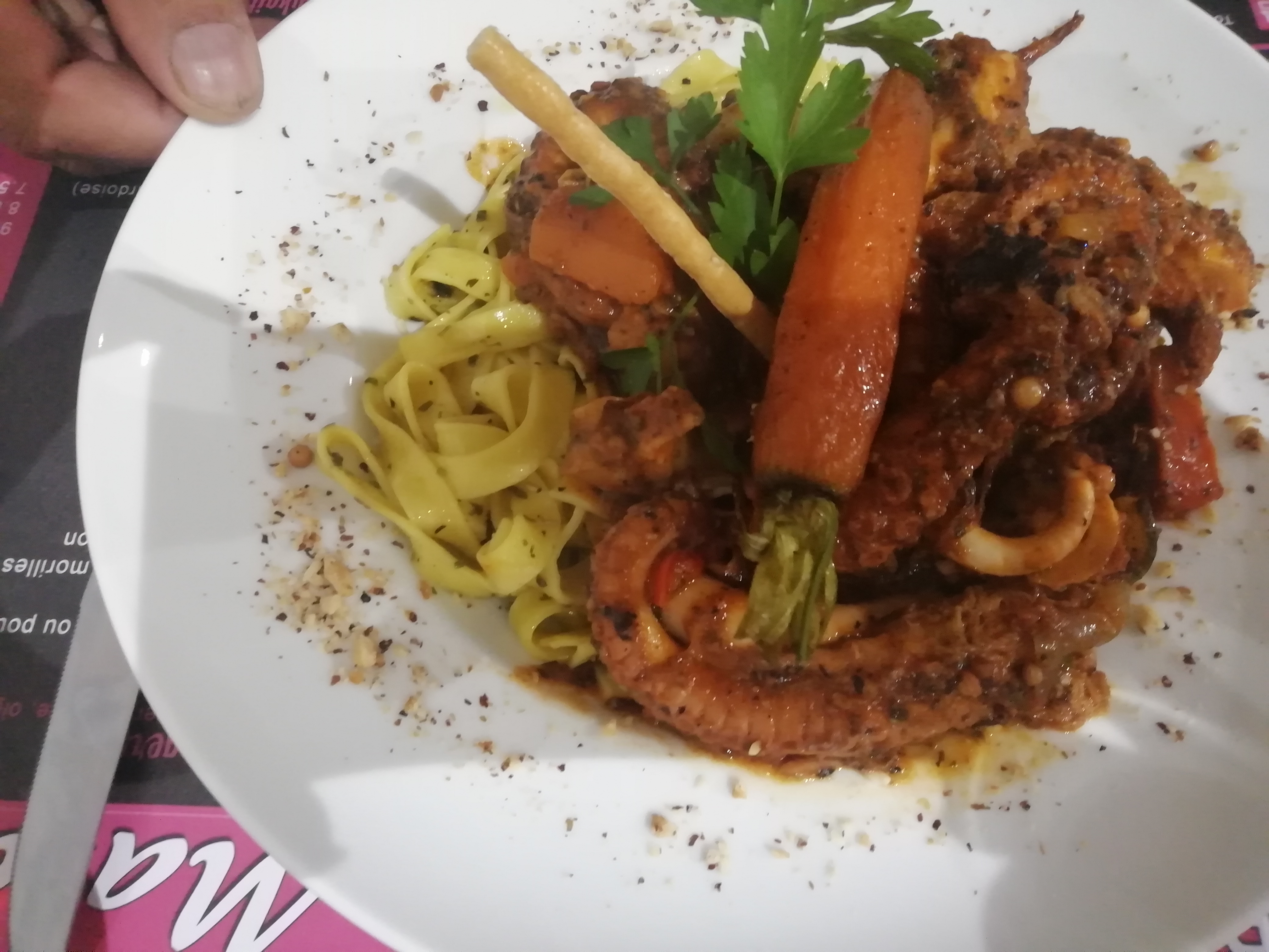 Un arrêt pour midi , superbe accueil. Un excellent repas, bien servi et délicieux. Tout en sachant que j’ai pris du poulpe, très bonne cuisson. Un chef cuisinier qui s’est géré. Le cadre est très original et sympa.