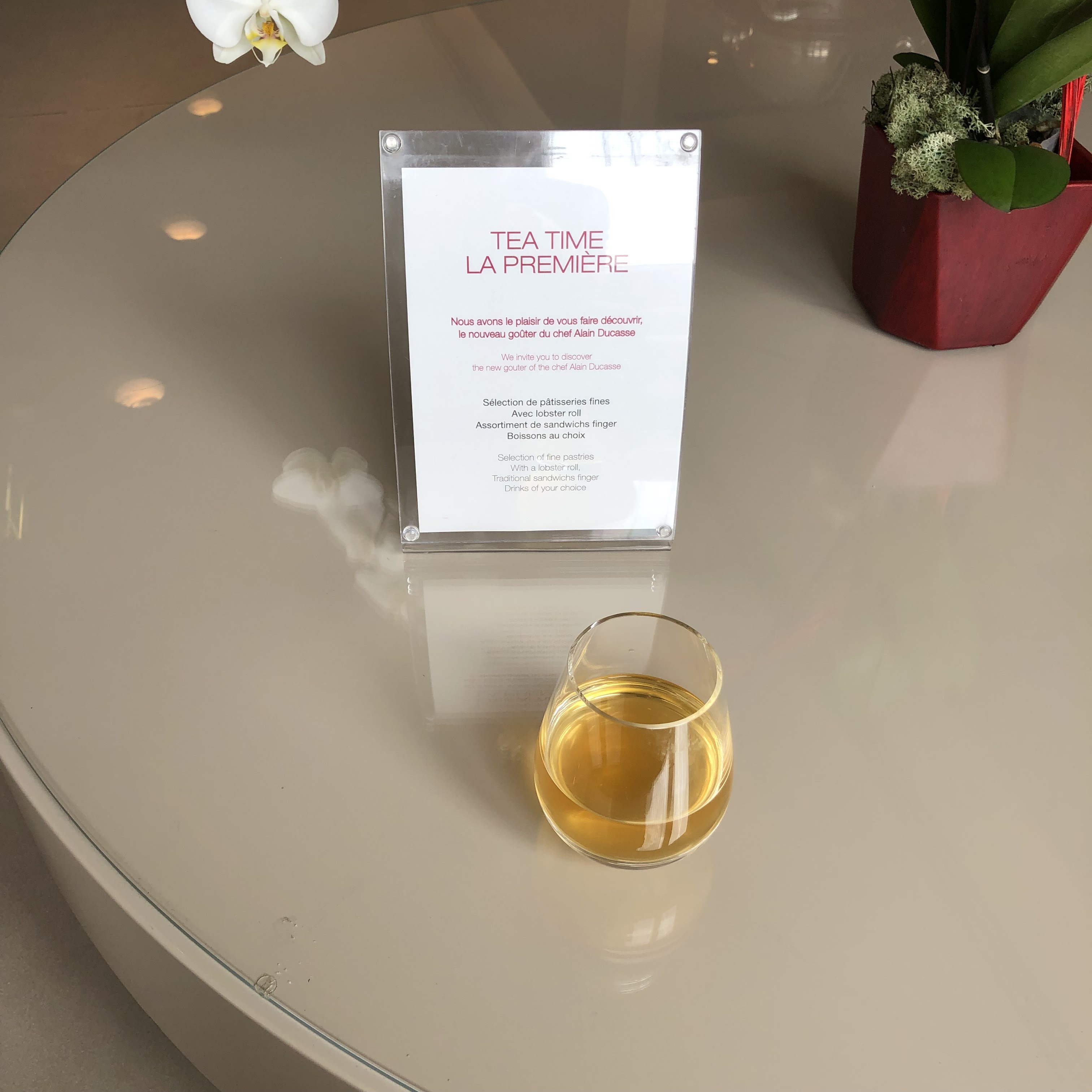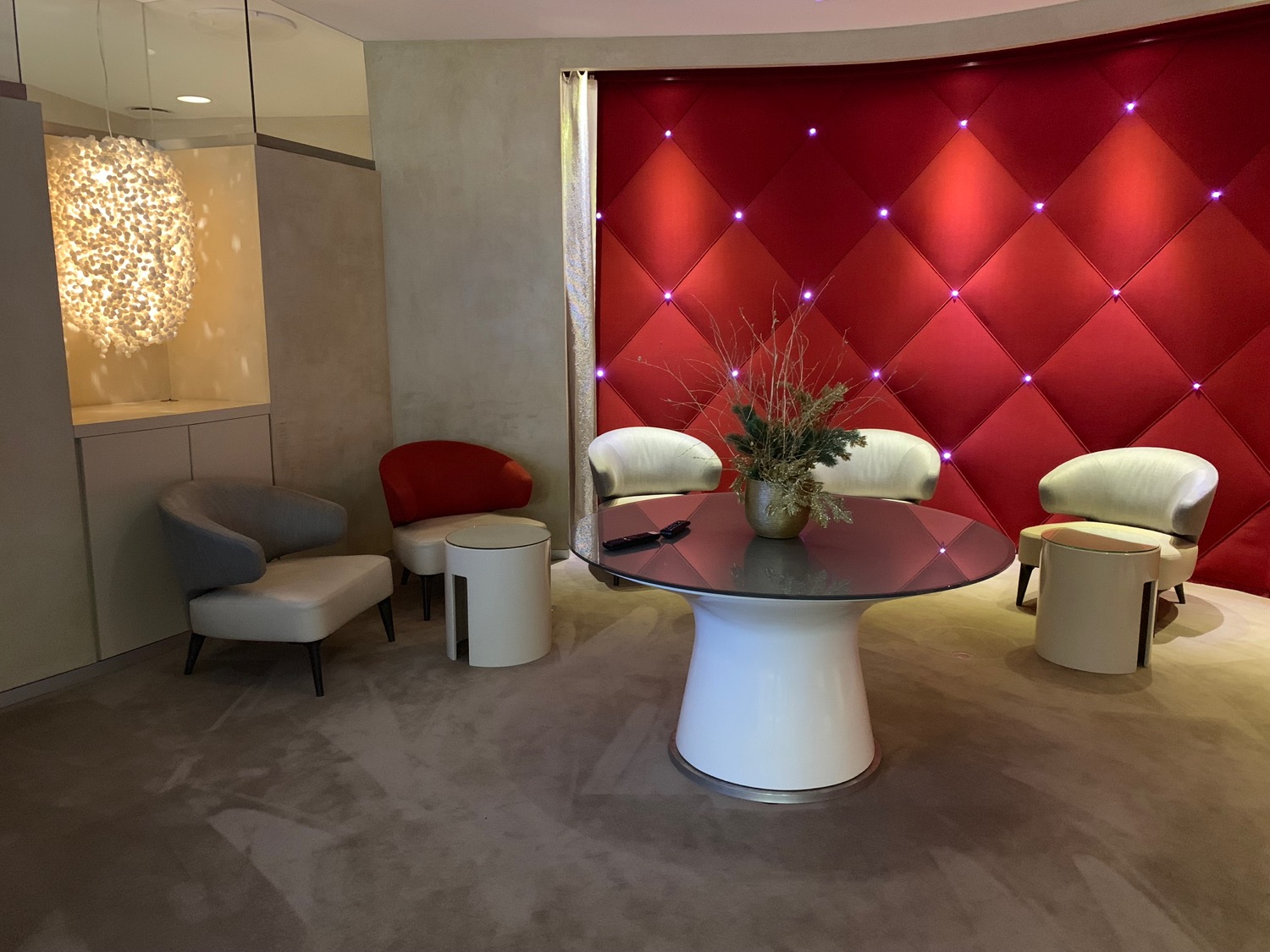 Ce salon est plutôt époustouflant, depuis le chauffeur depuis et vers l'avion jusqu'au design, en passant par la nourriture et les boissons. Les différents espaces sont magnifiques et tout est bien conçu. Les deinks sont excellents, tout comme la nourriture. J'ai adoré le foie gras et le turbot. La sélection de vins était la nourriture. Le service aurait pu être plus proactif, je devais toujours trouver quelqu'un qui se cachait quelque part quand j'avais besoin de quelque chose. Sinon, c'est un endroit charmant et j'ai hâte d'y retourner