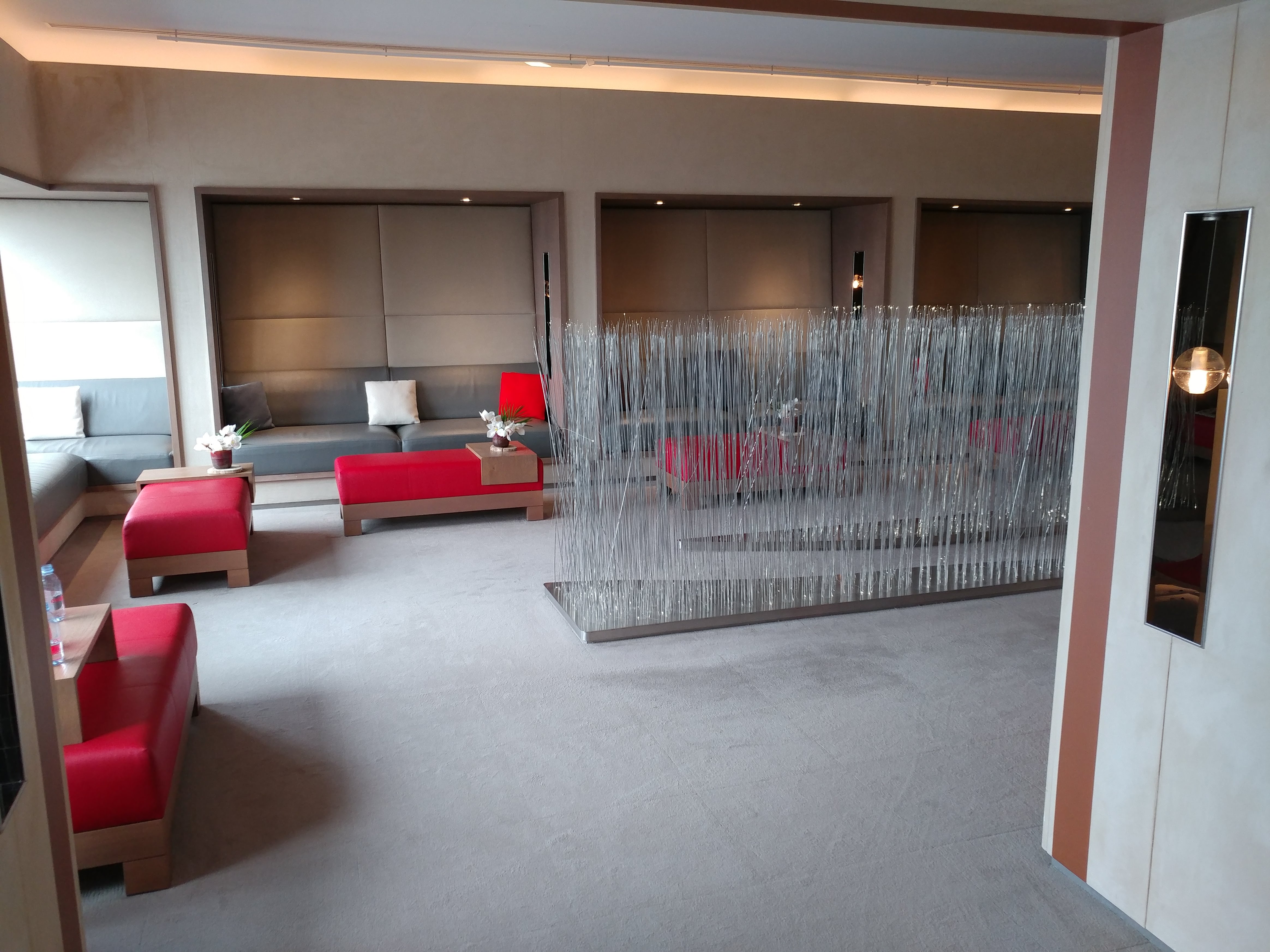 Salon d'exception avec une expérience gastronomique unique. Très bon trajet depuis le vol précédent. Le salon était assez fréquenté lorsque nous sommes arrivés vers midi ; toujours aucun problème pour trouver une table pour le déjeuner et profiter d'un bon plat complet. C'est devenu très calme du début de l'après-midi jusqu'au départ en soirée. Le massage complémentaire (soin) de 30 minutes de Biologique Recherche était très agréable.