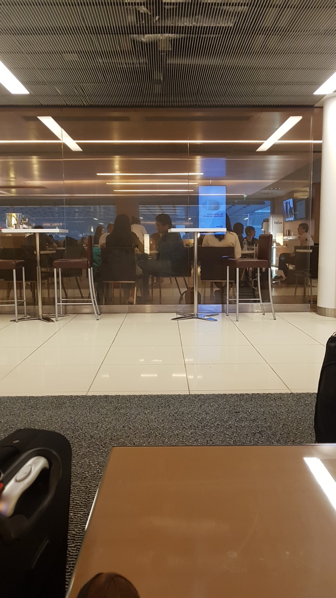 Naturellement, les options de restauration et de boissons sont variées et de haute qualité, le mobilier confortable et le personnel attentionné. Les vues sont un peu utilitaires et les toilettes sont trop petites pour desservir même un salon partiellement rempli.