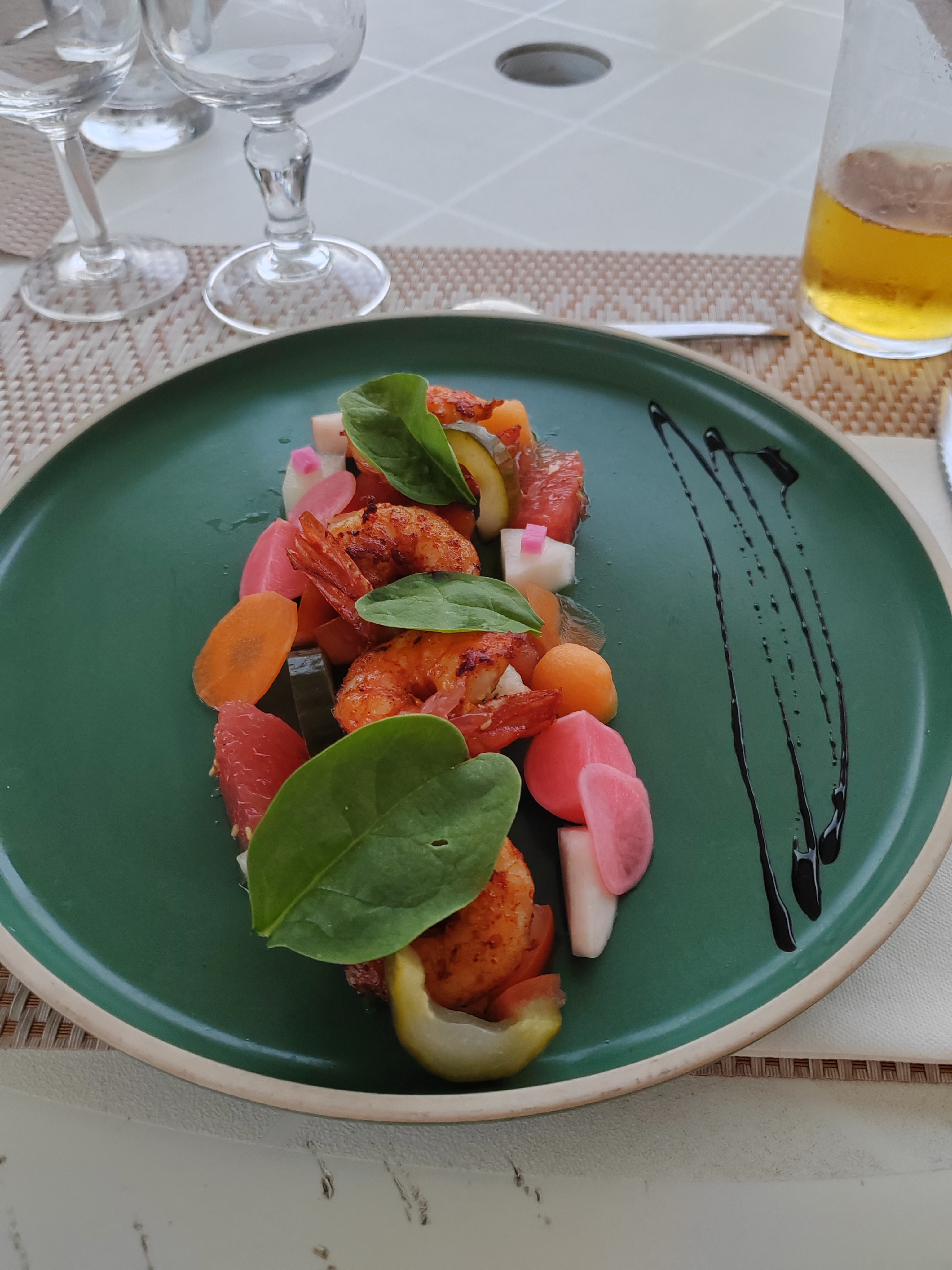 Lieu qui à première vue semble digne de sa devanture et de sa communication. En revanche, l’extérieur est une désillusion. Grosse différence entre la décoration et le mobilier intérieur. La terrasse est sans âme, sans charme et sans aucune mise en valeurs. Chaises et tables en plastique blanc, sales et cassées. Les verres et les carafes ne sont pas propres En revanche, la qualité des plats est en adéquation avec le lieu (intérieur) et la carte réduite laisse penser que les produits sont locaux et/ou frais. Le personnel fait avec ce qu’ils ont, leur gentillesse est remarquable et leur professionnalisme aussi. Bien que le service ne soit pas parfait avec quelques oublis. En revanche, quelques bémols, - plus de Gin un Samedi soir.. - obligé de faire l’appoint pour le règlement en espèce, car pas de possibilité de rendre la monnaie