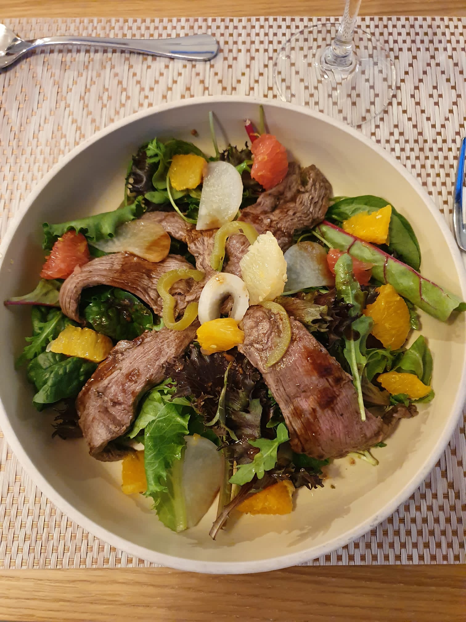 Désolé, mais NON. Un endroit totalement arnaque. Les photos ici sur Google et sur le site Internet du restaurant sont trompeuses (pour le dire doucement). Il n'y a pas de nappe sur les tables à l'heure du dîner comme on peut s'y attendre sur les photos, l'endroit est daté comme une maison de retraite (n'en déplaise aux personnes âgées) qui aspire à devenir quelque chose de meilleur qu'il ne l'est réellement. Délai d'attente pour passer commande : long. J'ai commandé des crevettes avec une salade de pamplemousse et autres agrumes en entrée et du poulet en plat principal. Mon fiancé a également commandé une salade de bœuf et du poulet d'inspiration asiatique. Tout d’abord, les serveurs ont commencé à mélanger les tables et les commandes ; nos entrées ne nous ont pas été servies du tout, même si le serveur a prétendu que nous les avions déjà mangées, ce qui n'était pas vrai, et a essayé de nous servir le poulet. Ensuite, nous avons finalement reçu nos entrées, ce qui était incorrect pour moi, puis j'ai eu les mêmes crevettes dans une assiette différente. Puis vint le même poulet, mais réchauffé (seulement le poulet, les côtés ne l'étaient pas et ils étaient froids). Les entrées n'étaient pas mauvaises, mais le plat principal manquait de goût. La façon dont les plats étaient servis montrait un effort. Qualité : médiocre. Nourriture : fade. Décoration : démodée, pas de nappes comme annoncé, froide, vieilles chaises des années 80 ou 90, manque de lampes derrière le bar...