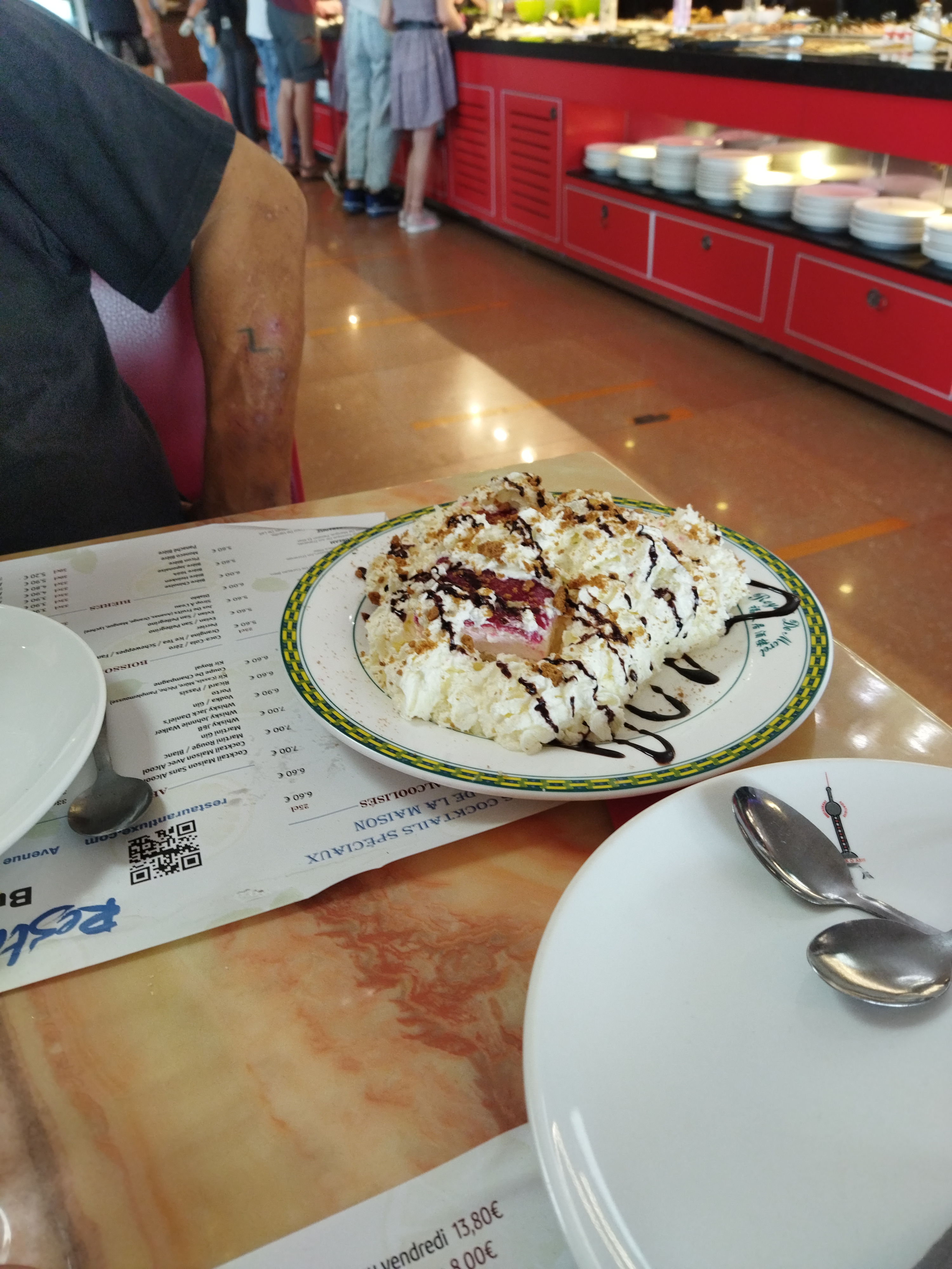 Super accueil. Il y a du choix dans les nems , les sushis crudités pour ceux qui n'aiment pas les sushis 🍣 . Wok grillades et choix dans les desserts 😋 je recommande Il y a un air de jeux pour les enfants. Fin de service : ils enlèvent les plats cela part au frais , ils portent des gants pour l'enlèvement. Rien a redire sur l'hygiène