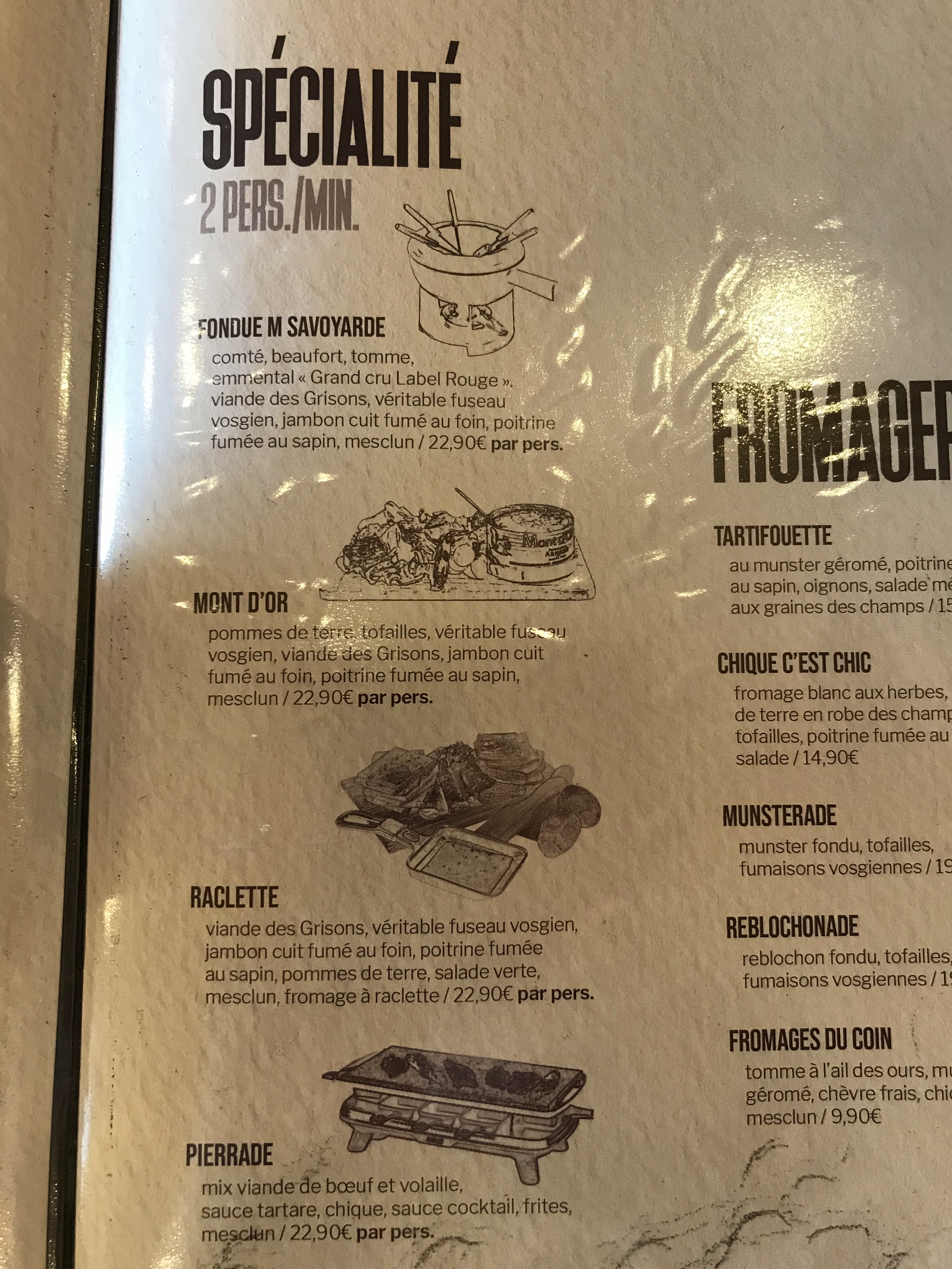 Bon déjà... Y'a quand même un gros problème avec les restos dans cette ville encore blindé par les touristes... Les 3/4 pas ouvert....imcomprehensible.. Nous trouvons celui ci qui a l'air pas trop mal... Fuyez...! Et finalement, nous comprenons pourquoi il y a du monde vu que les autres sont fermés... Le service est déplorable.. Autant le petit jeune très sympathique mais qui apparemment préfère passer son temps sur son téléphone... autant la jeune fille de ce soir... . Mon dieu, je pense qu'il faut réellement qu'elle change de métier... Mal aimable au possible, pas un sourire, nous la faisons clairement chié. Pour un resto qui propose un large choix de produit montagnard nous étions ravi... Nous avons vite déchanté... Aucun plat montagnard servi aujourd'hui car pas assez de personnel... OK ok, il serait peut être bon de l'indiquer déjà à l'entrée ou sur votre carte non !? Déjà premier manque de professionnalisme évident et de non respect de la clientèle. Nous avons commandé je pense deux plats simple tartiflette et charcuterie Mon dieu, une honte ! .. Aucun goût, fade, c'est un plat gras certes mais la... Nous avons un doute sur le fait que nous avions eu du munster et du roblochon... Et en regardant les autres avis, cela confirme que nous nous sommes fait avoir..quand à la charcuterie, nous avons eu en tout et pour tout 3 Rondelles par plat qui se battait en duel et loin d'être fraîche ! Par contre le prix lui était très fourni.. Après 30 minutes d'attente pour la prise des desserts/café, nous avons abandonner l'idée et nous sommes parti. Nous avons nous même directement réglé à l'intérieur car évidemment personne n'est venu nous voir pour nous donner l'addition. Clairement une déception totale, une belle arnaque à tout les niveaux que ce soit au niveau du service, du goût et de la qualité des plats, du prix. Les bons avis, le patron vous a payé ou bien ? Parce que clairement ce resto ne mérie te aucunement sa note ! FUYEZ !!