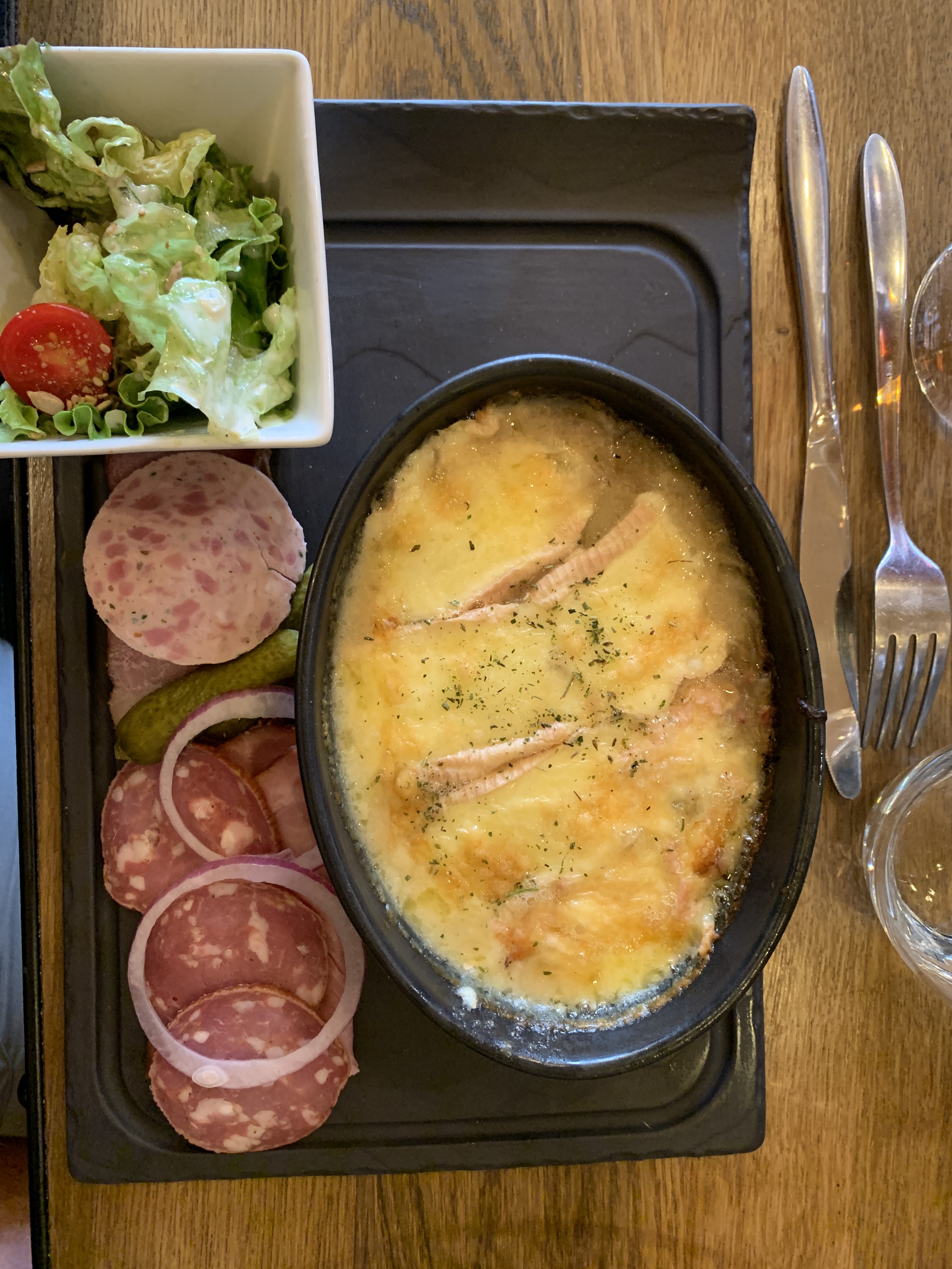 Super ambiance, Un plat délicieux avec un bon goût de fromage, la charcuterie était bonne. Le service a était rapide et un serveur super agréable !
