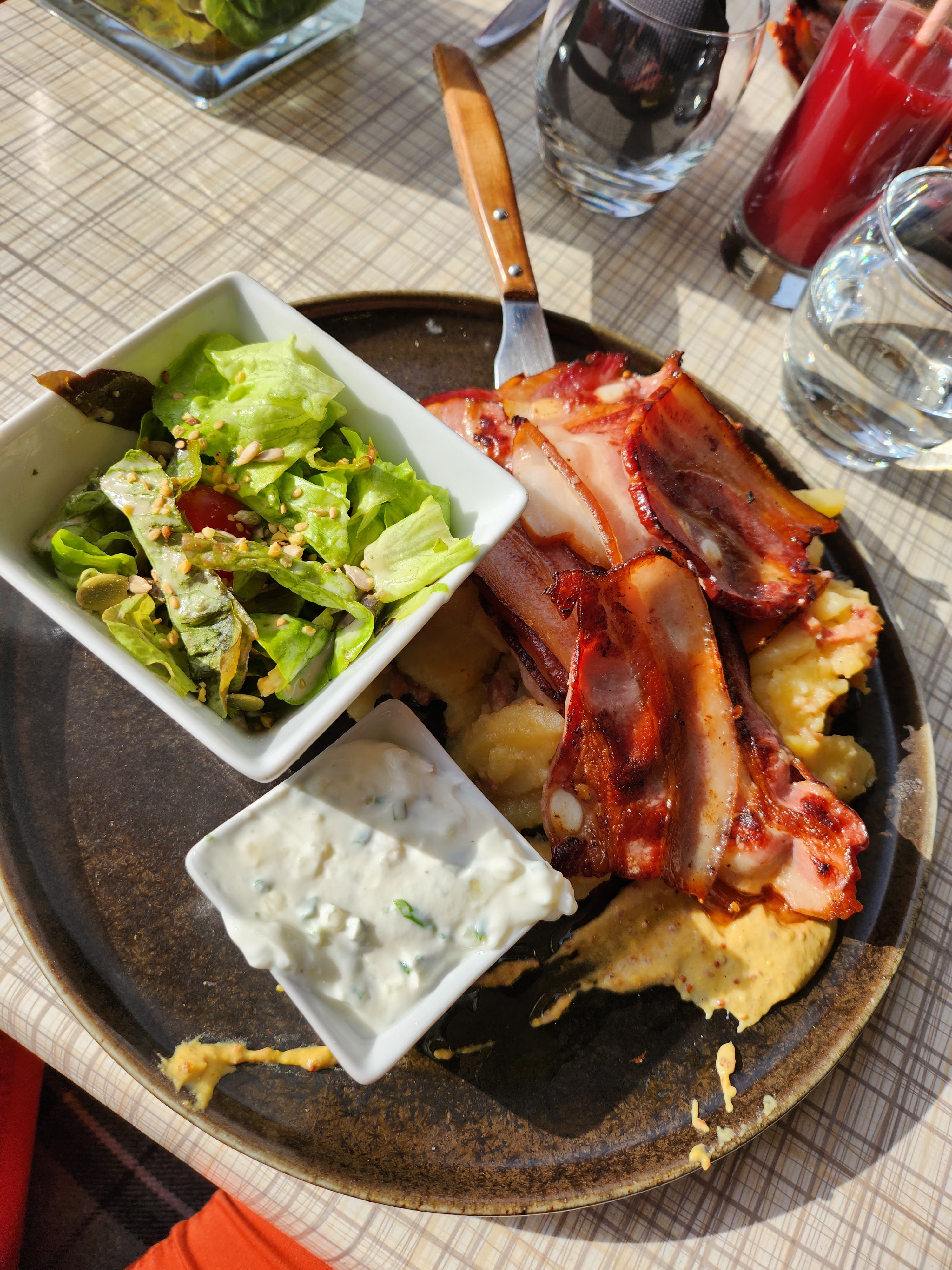 Déjeuner sur la terrasse, au soleil ! Service correct et repas bon rapport qualité/prix. Très joli déco intérieur !