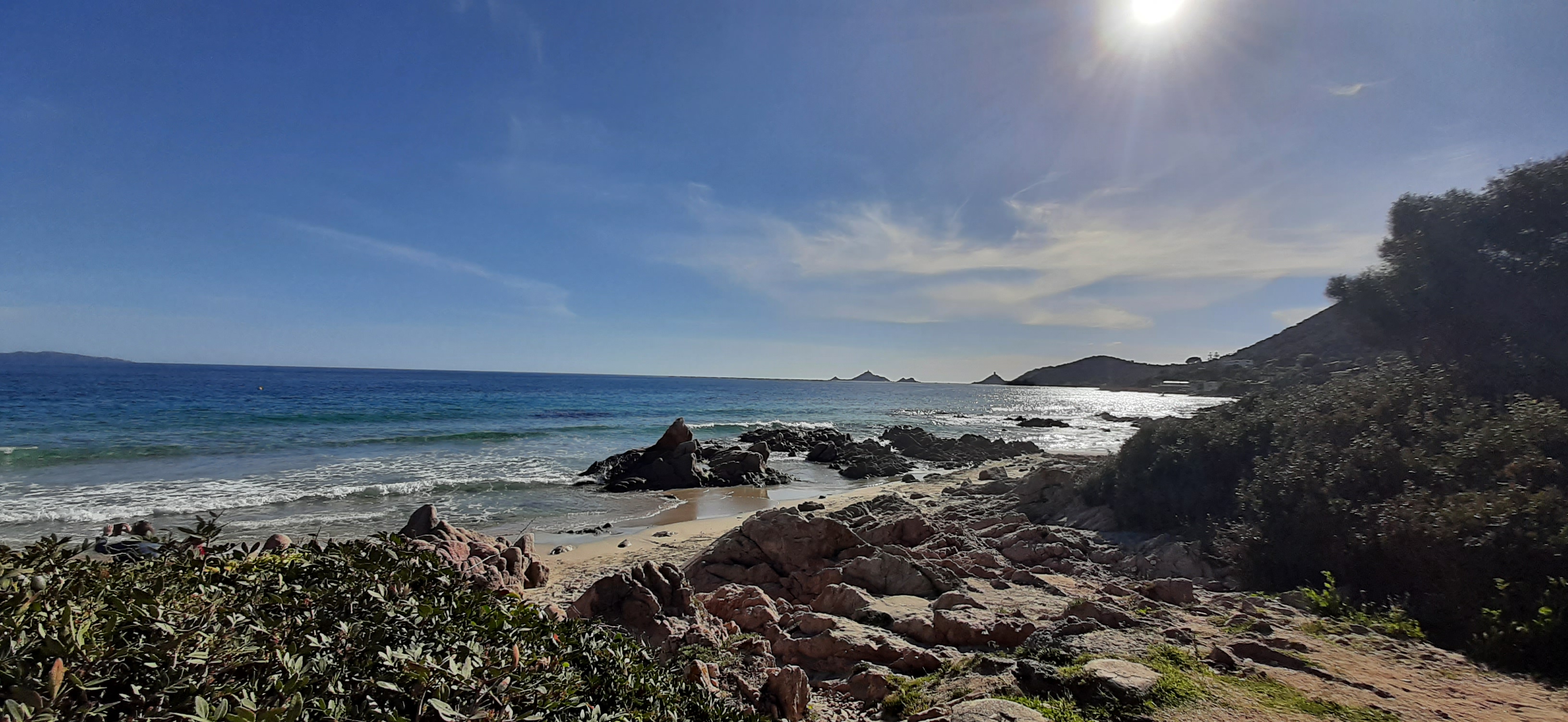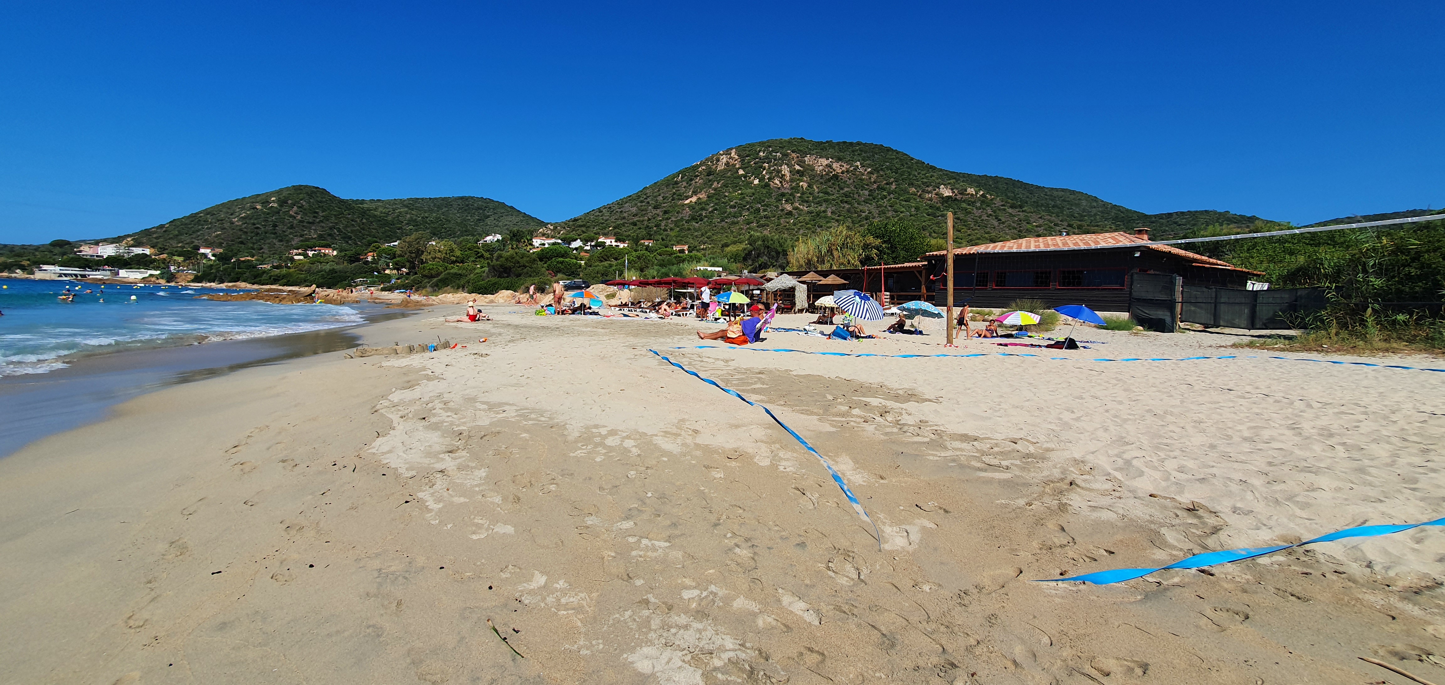 Superbe vue sur la plage, les îles Sanguinaires et accès privé à la zone de baignade protégée de la plage. Parking devant le restaurant juste à côté de la route principale du bord de mer. Bonne nourriture et service amical. J'aurais aimé qu'ils aient un tuyau d'arrosage pour rincer le sable en revenant de la plage.