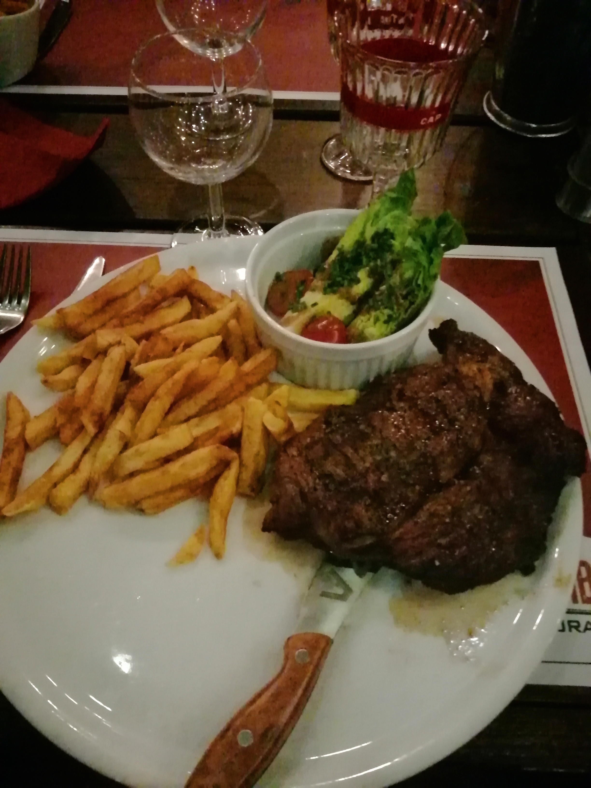 Nous sommes en France depuis un mois et c'était le pire repas que nous ayons eu. Le steak n'était pas comestible (et 28 euros). Incroyablement décevant.