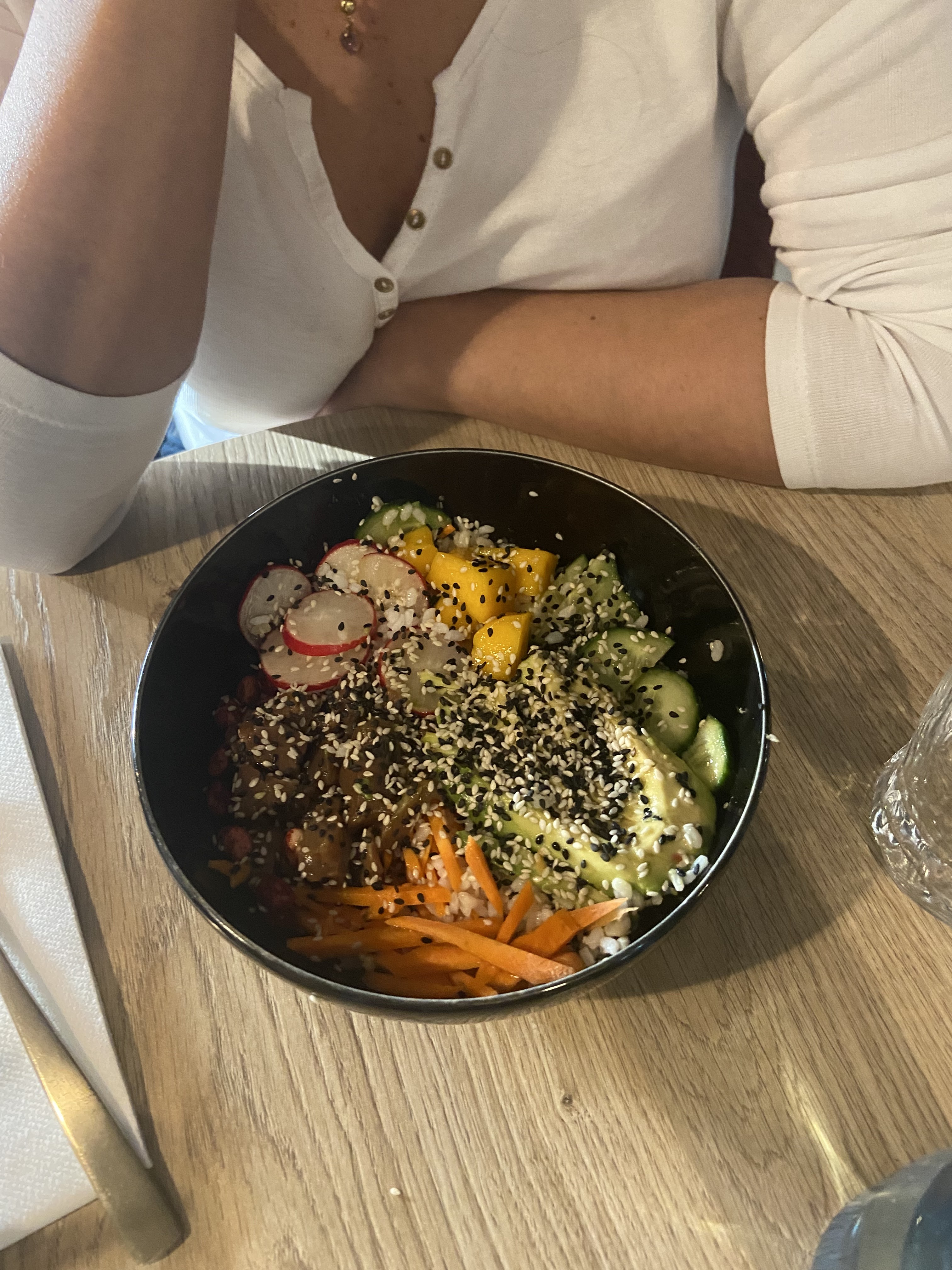 Bel endroit et service très attentionné Mais repas moyen, notamment pièce du boucher pas tendre et mal cuite, et profiteroles pas au niveau (choux durs). (Poke Bowl et tartare de saumon en revanche très bons) Nous l’avons signalé, on nous a remercié de le signaler, mais pas de retour. Dommage parce qu’elles avaient l’air bonnes.