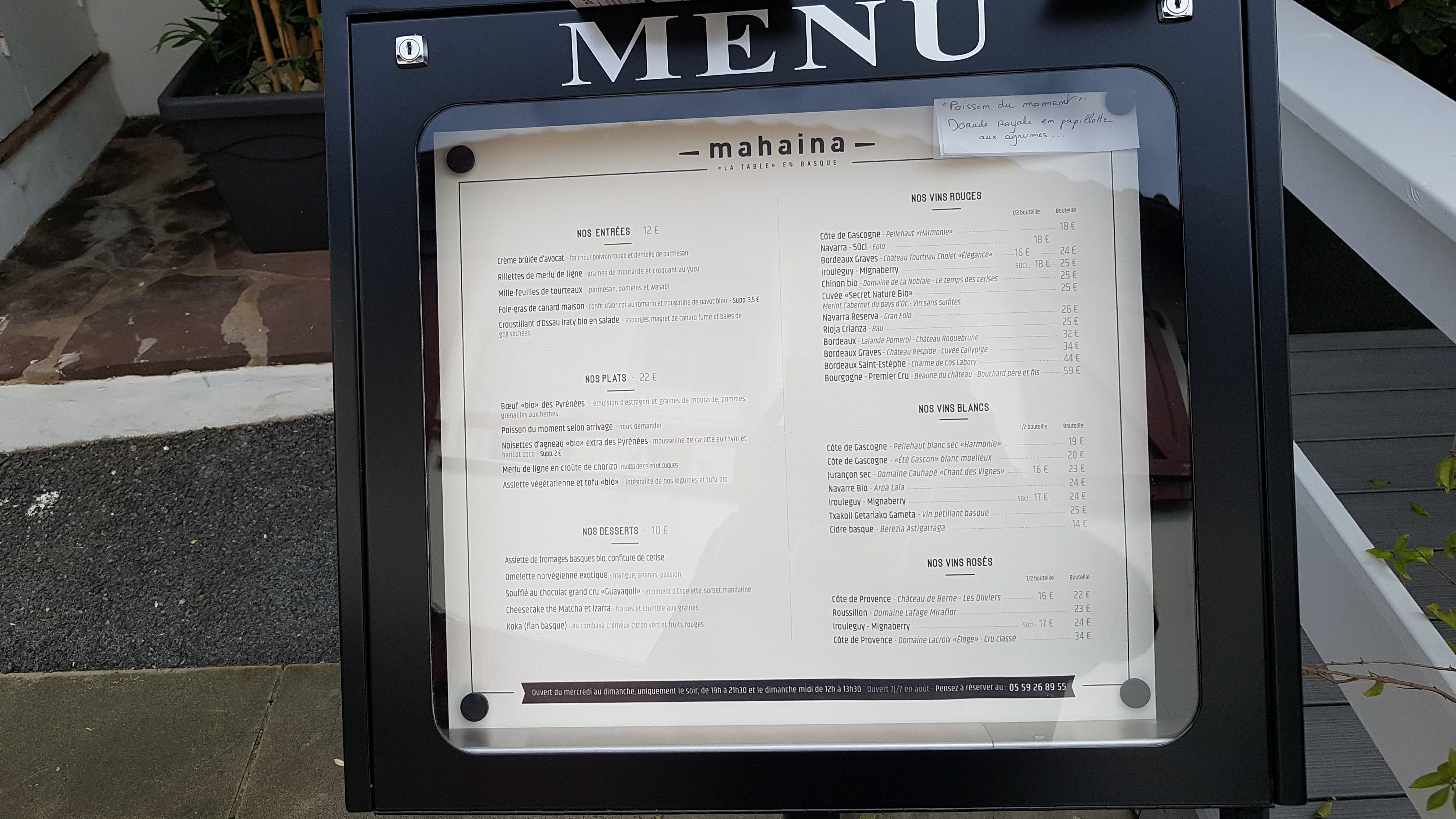 Le Mahaina est un restaurant extraordinaire, le cuisinier est un artiste culinaire et la sommelière nous fait découvrir des vins naturels exceptionnels, c'est une adresse à ne pas manquer à Bidart, vos papilles en rêveront pendant un long moment !!! Le bonheur assuré !!