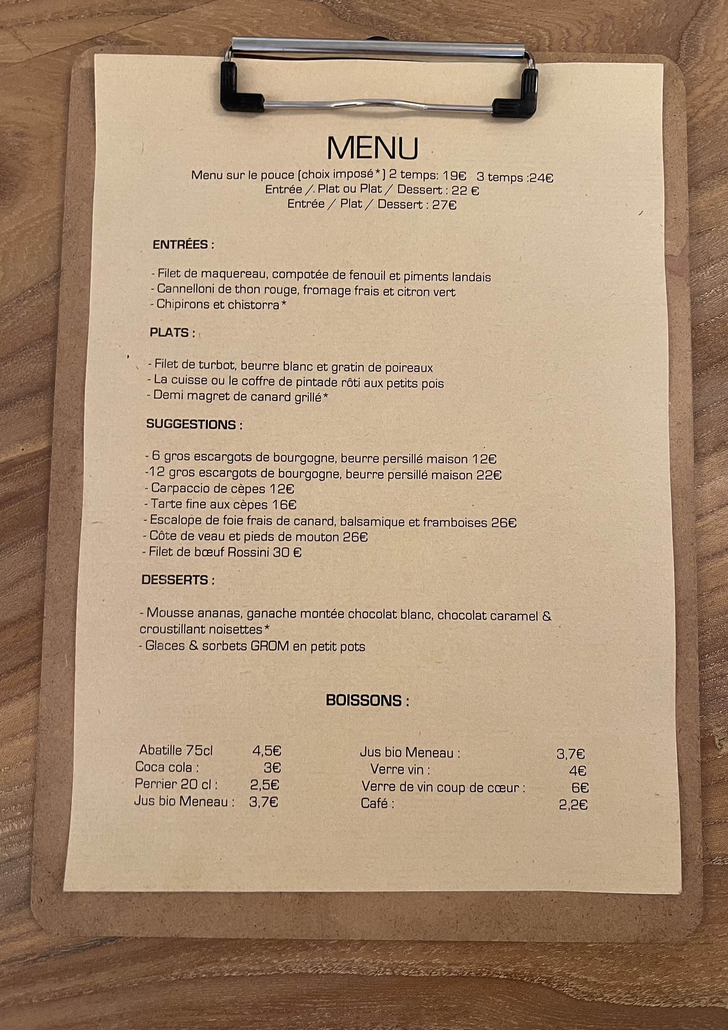 Déjeuner ce midi dans ce sympathique et très bon restaurant. Entrée et plat excellents mais plus de place pour le dessert ! La cuisine est au bout de la table des hôtes ce qui permet de voir le chef Sébastien élaborer chaque plat avant qu’il ne soit servi par Mathilde. On salive avant de déguster. Très bons vins. Je recommande vivement.