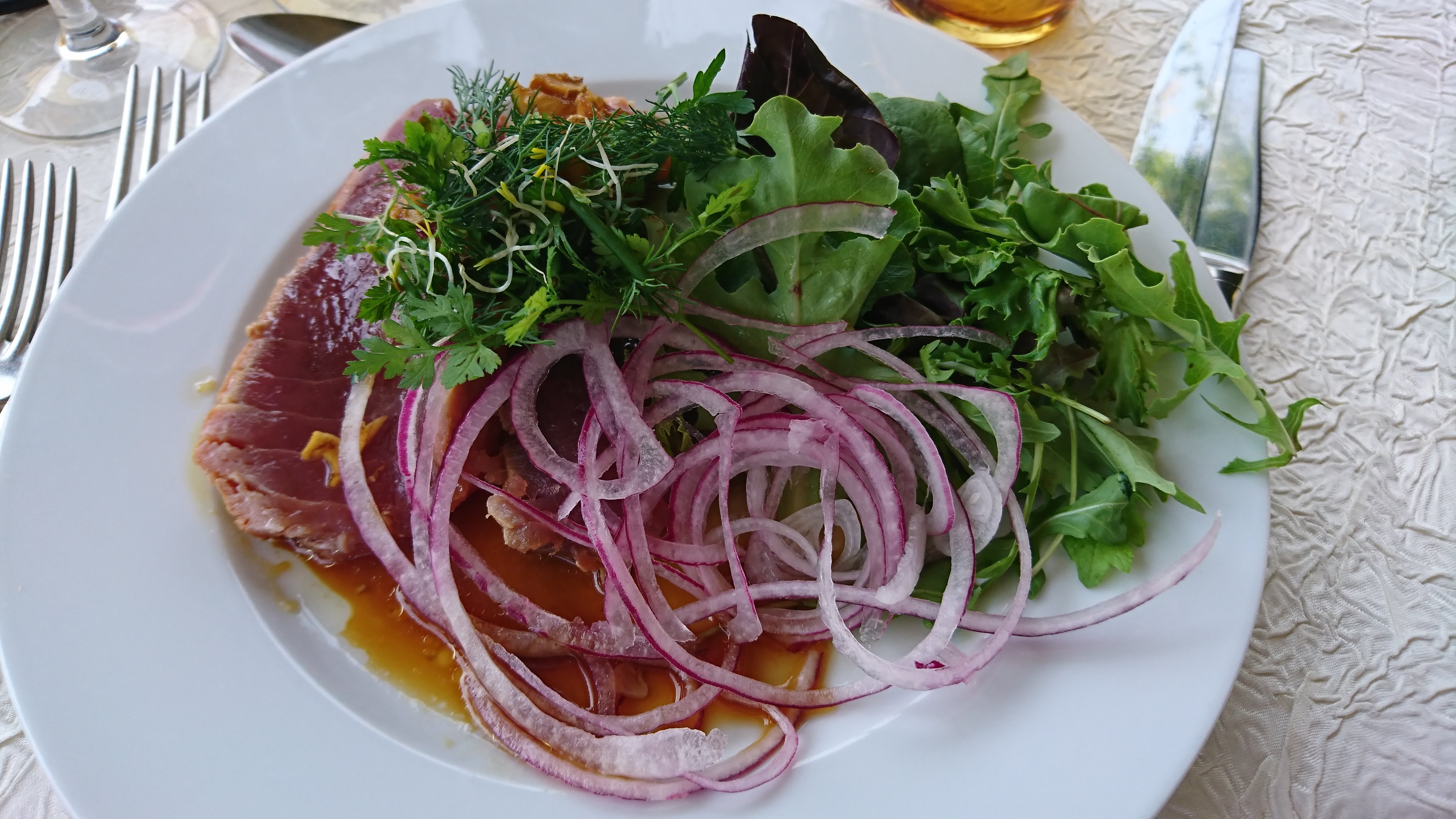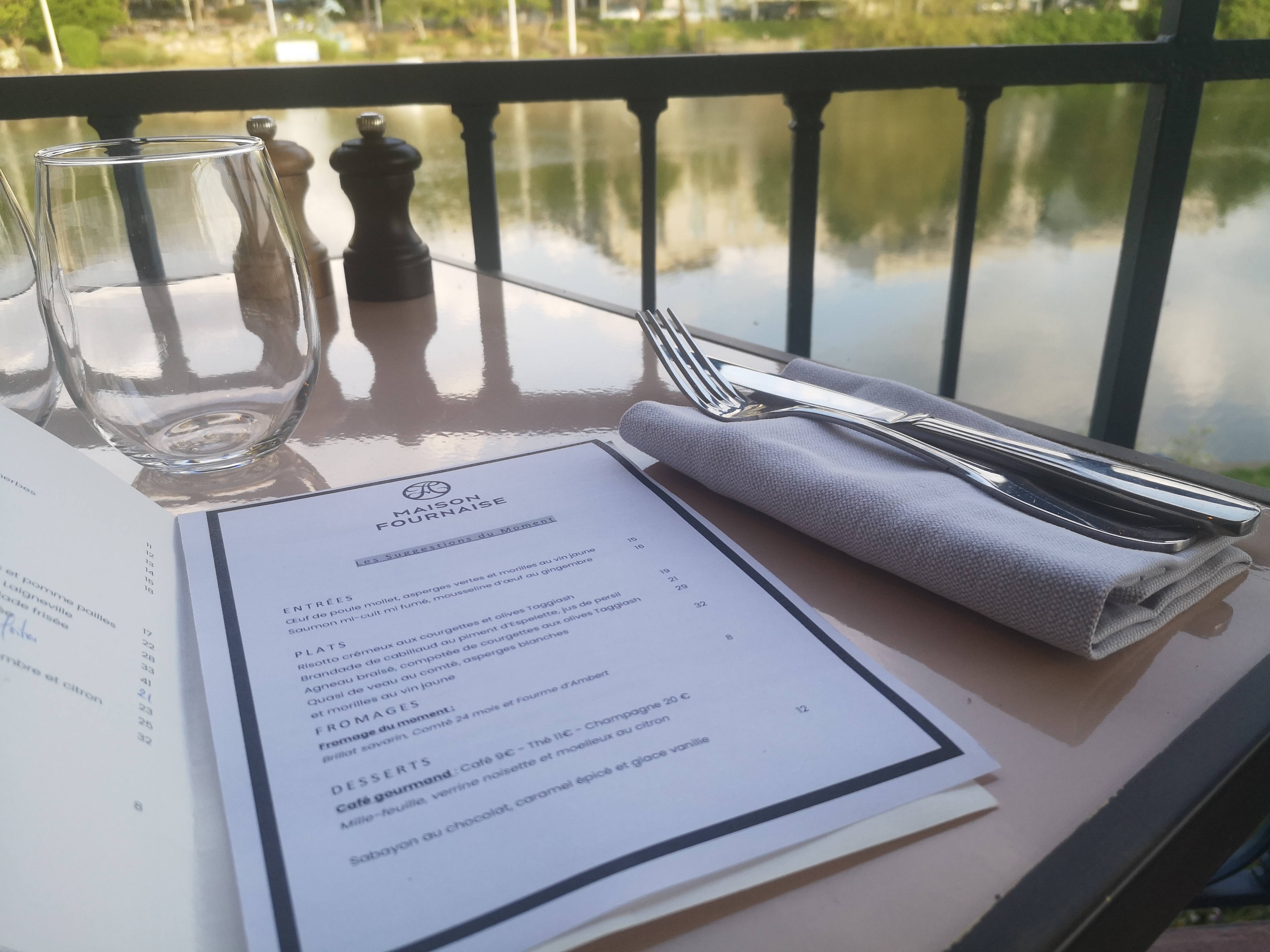 Très joli moment au bord de l’eau sur une terrasse élégante, la table l’est aussi, tant le linge que les plats, un régal avec un très bon rapport qualité prix