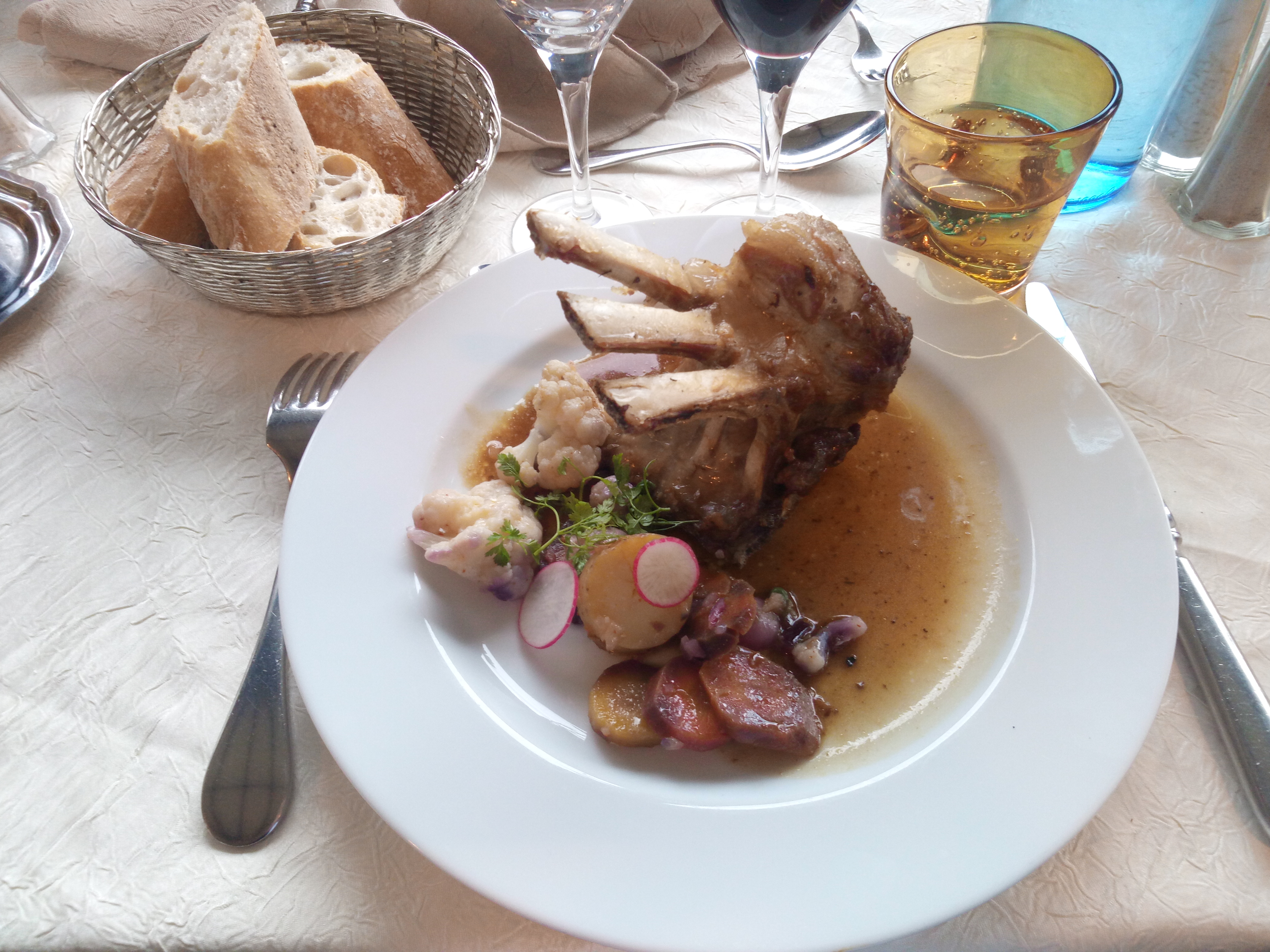 Ce restaurant sur l'ile des impressionnistes a conservé un décor proche de celui peint par Renoir pour son déjeuner des canotiers et c'est émouvant de se retrouver sur le balcon qui donne sur la Seine sous ce store rayé rouge. Enfin le décor est parfait. Les plats m'ont paru corrects sans plus mais on est tellement bien qu'on n'y pense pas.