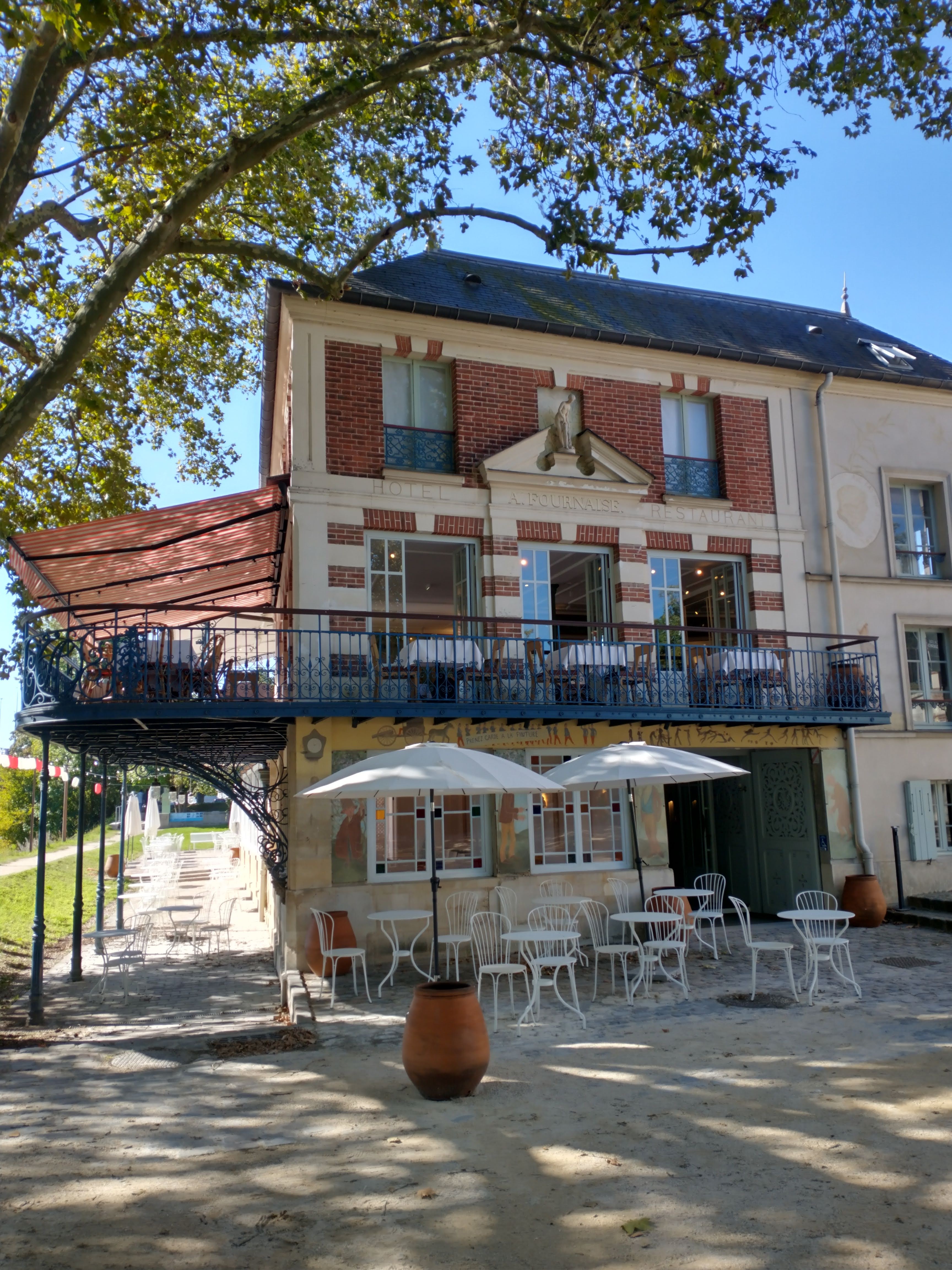 Nous sommes allés en famille découvrir ce très joli restaurant qui fut une institution pour de nombreux peintres, dont Auguste Renoir, mais aussi des gens de lettres comme Guy de Maupassant. Ce restaurant très bien rénové à conservé les charmes d'un lieu au bord de la Seine. Nous y avons beaucoup apprécié l'ambiance, d'autant que le personnel est adorable, aux petits soins. La cuisine y est traditionnelle, cela va de soi et composée de produits très frais avec des plats pour les goûts de chacun. Lors de notre passage, c'était la grosse canicule de septembre. De ce fait nous n'avons pas tenté les vins de la maison Fournaise. Nous les découvrirons lors d'un prochain passage. Allez découvrir cette belle adresse !