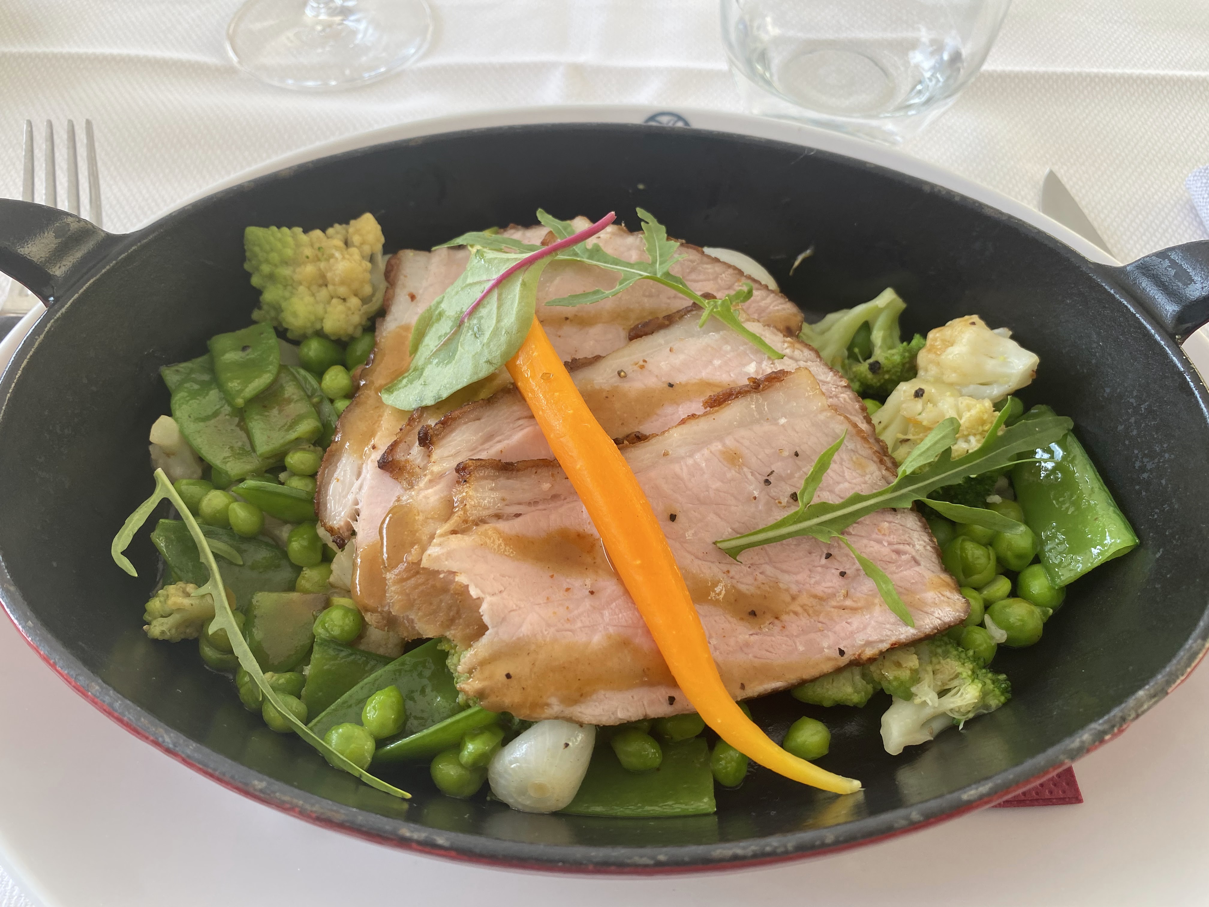 Rien de terrible, vraiment. Les plats sont à peine corrects, et réchauffés : résultats le Carré de cochon de lait trop sec et le magret de canard trop cuit. Qui plus est un état nauséeux ce matin... Par ailleurs le service n'est pas spécialement agréable. Les seuls atouts de ce restaurant sont le cadre et la terrasse. Dommage...