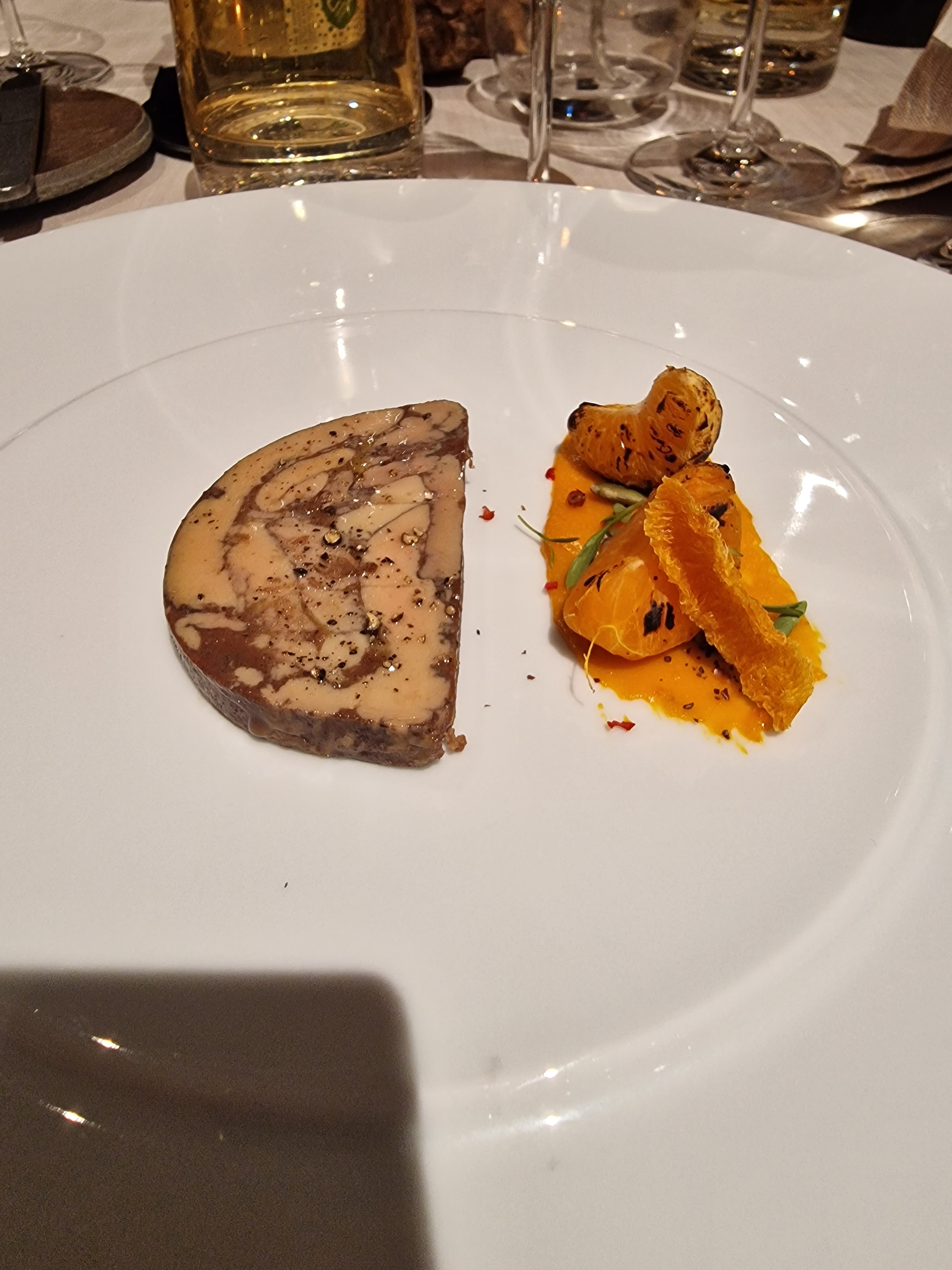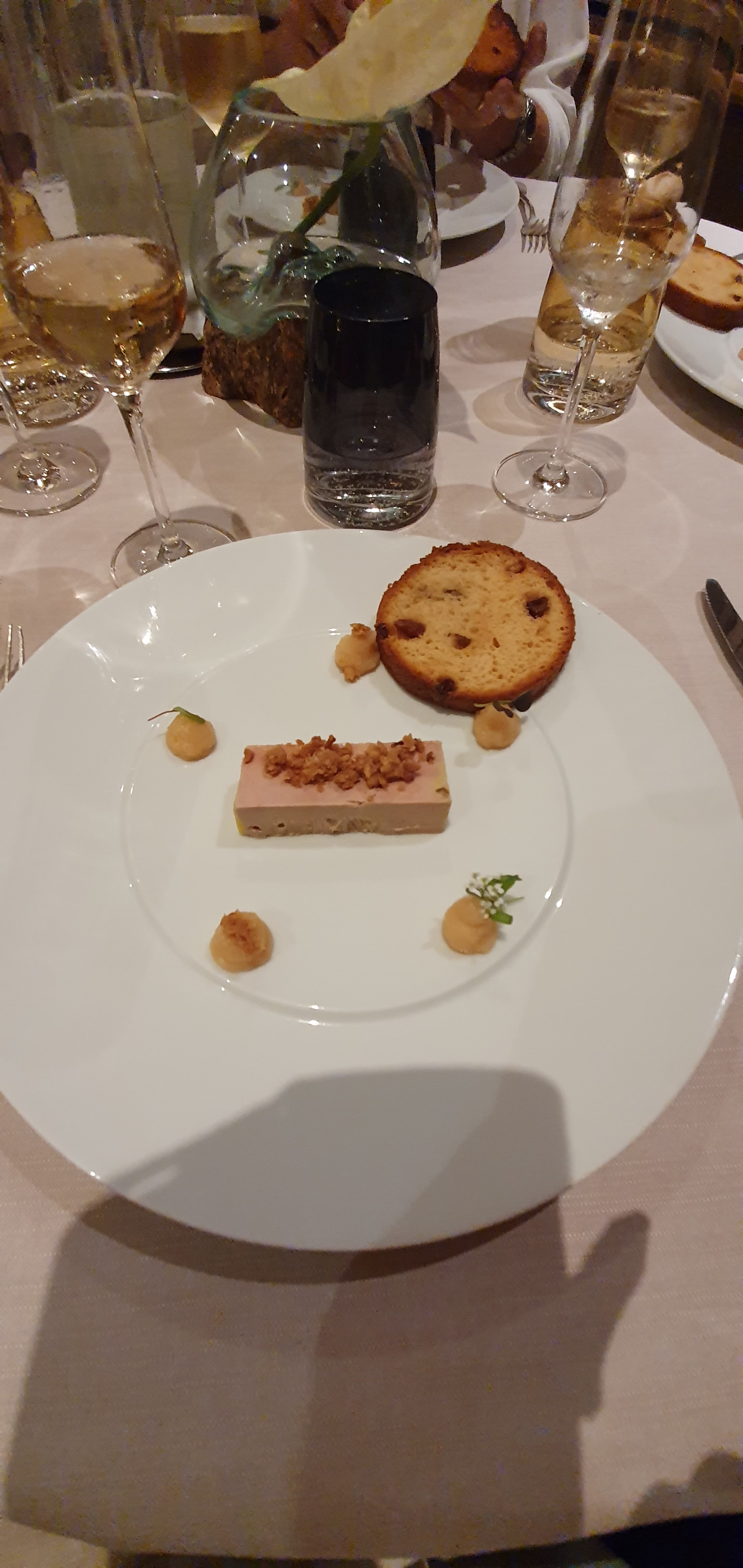 Ensemble malheureusement très mitigé. Service trop formel et trop coincé, nous ne nous sentions pas à l'aise. Nous avons essayé de plaisanter avec les serveurs mais rien à faire, toujours aussi froid. A aucun moment les serveurs ne nous ont demandés si les plats nous on plu ou si tout s'était bien passé, surprenant pour un restaurant qui se veut gastro et qui veut s'en donner les airs. Nous avons eu la chance de faire des restaurants gastronomiques (quelques uns étoilés) et c'était bien différent. La cuisine est bonne mais sans plus. Le foie gras au cacao était plus que déséquilibré en goût, il ne restait que l'amertume du cacao, dommage. Le plat principale, des saint Jacques (au nombre de 2 !) étaient bonnes mais pas de saveur extraordinaire et surtout trop peu en quantité (gastro oui mais pas radin). Le dessert était bon mais encore une fois déséquilibré en goût, beaucoup trop sucré. Dommage qu'à aucun moment on ne nous a demandé comment s'est passé notre repas, j'aurai fait part de mes remarques avec plaisir. Beaucoup trop guindé, cuisine sans grande saveur et surtout tarif d'un étoilé alors que ce n'est pas le cas, dommage.