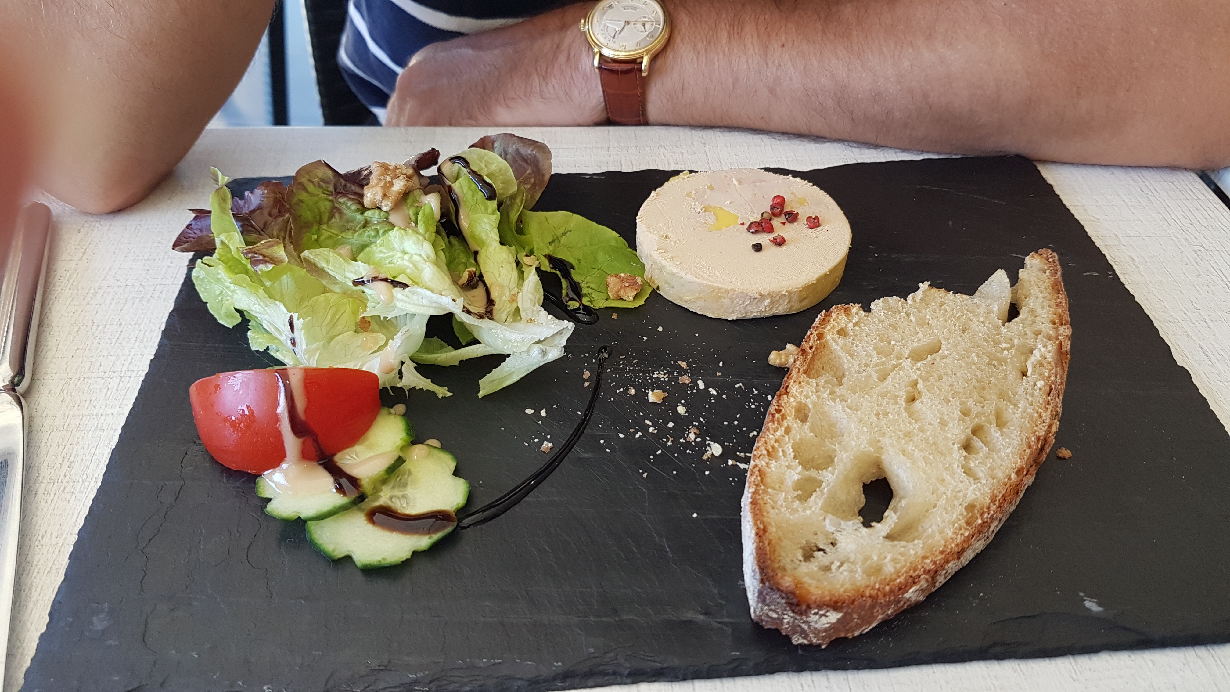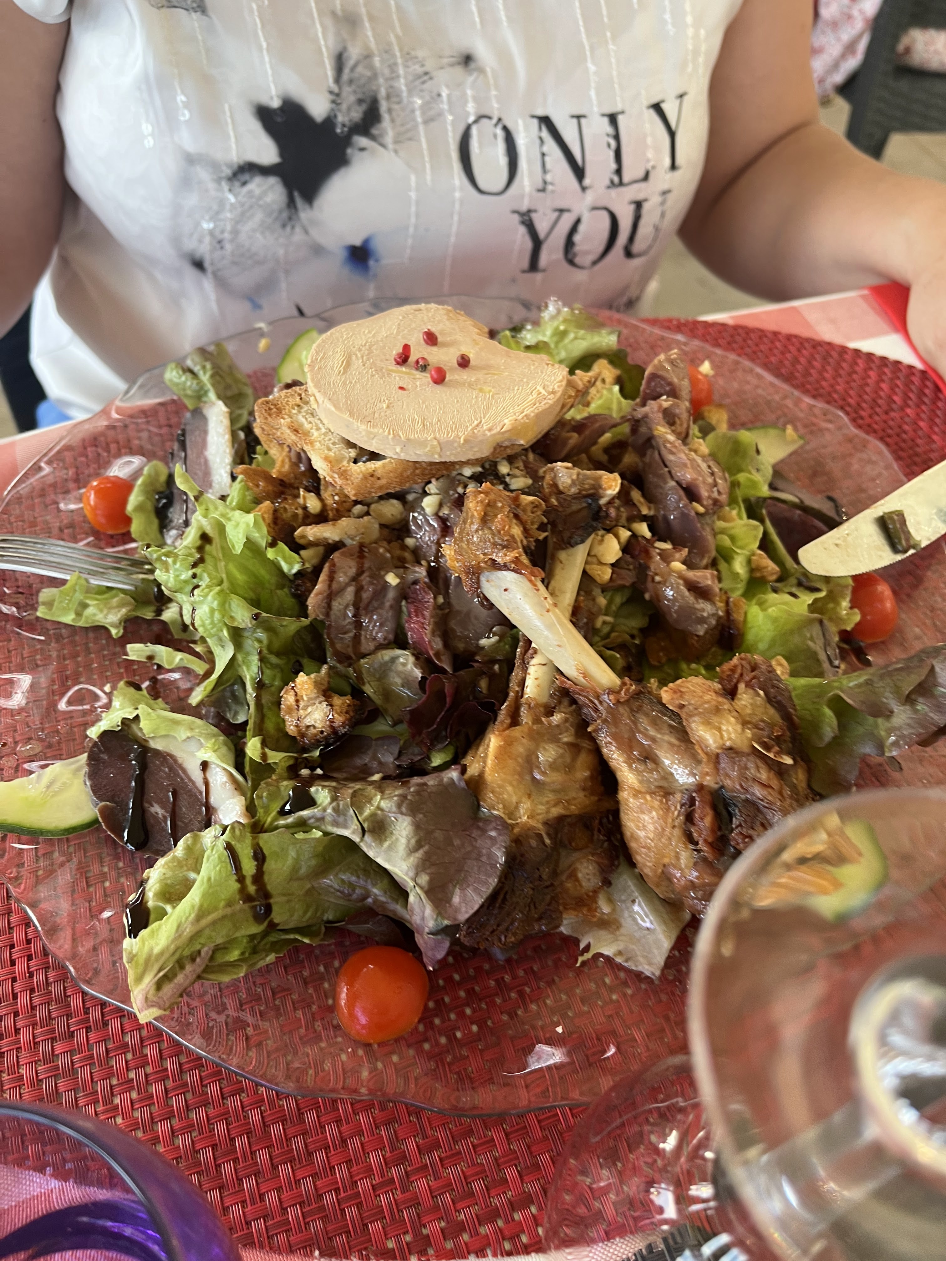 Foie gras sûrement en conserve, confit de même. De plus ce dernier était très très sec et surtout non assaisonné. Serveuse peu aimable qui n'attend pas qu'on termine de manger pour débarrasser. De plus le prix est onéreux surtout pour cette qualité. Seul l'emplacement stratégique permet de remplir la terrasse. Ayant fait de nombreux restaurants dans la région depuis plus de 20 ans que je viens dans la région, je vous déconseille fortement ce restaurant. Il y a moins cher et meilleur ailleurs.