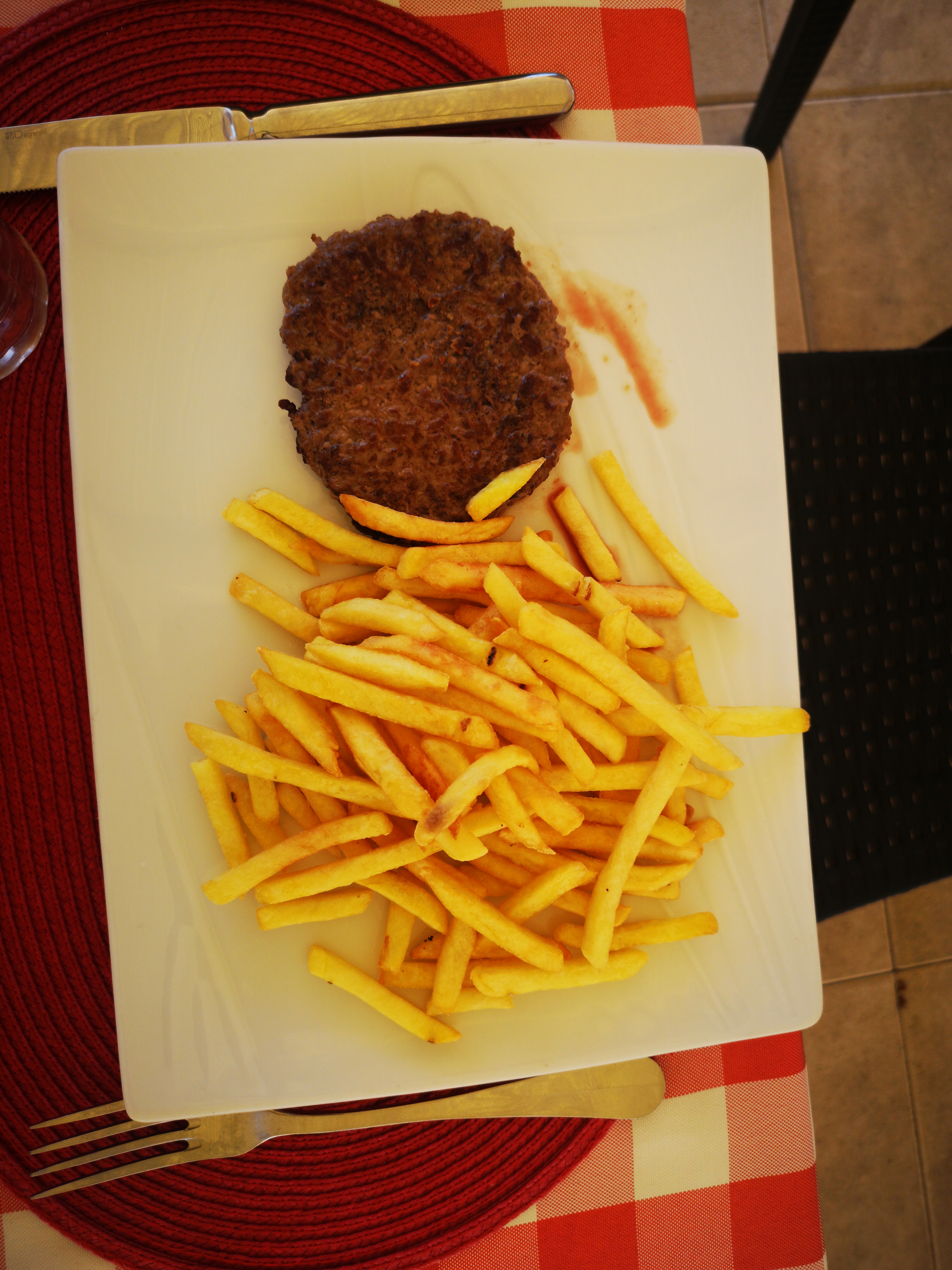Le Burger est servi sans frite, découverte après que l'on nous ai apporter les Burgers (service !) (Burger industriel à par le steak de canard) Les frites (indus)sont à 4.5 l'assiette (portion MC DO STANDARD) tarif découvert lors du paiement. Les matières premières sont chères les mot du personnel. ...
