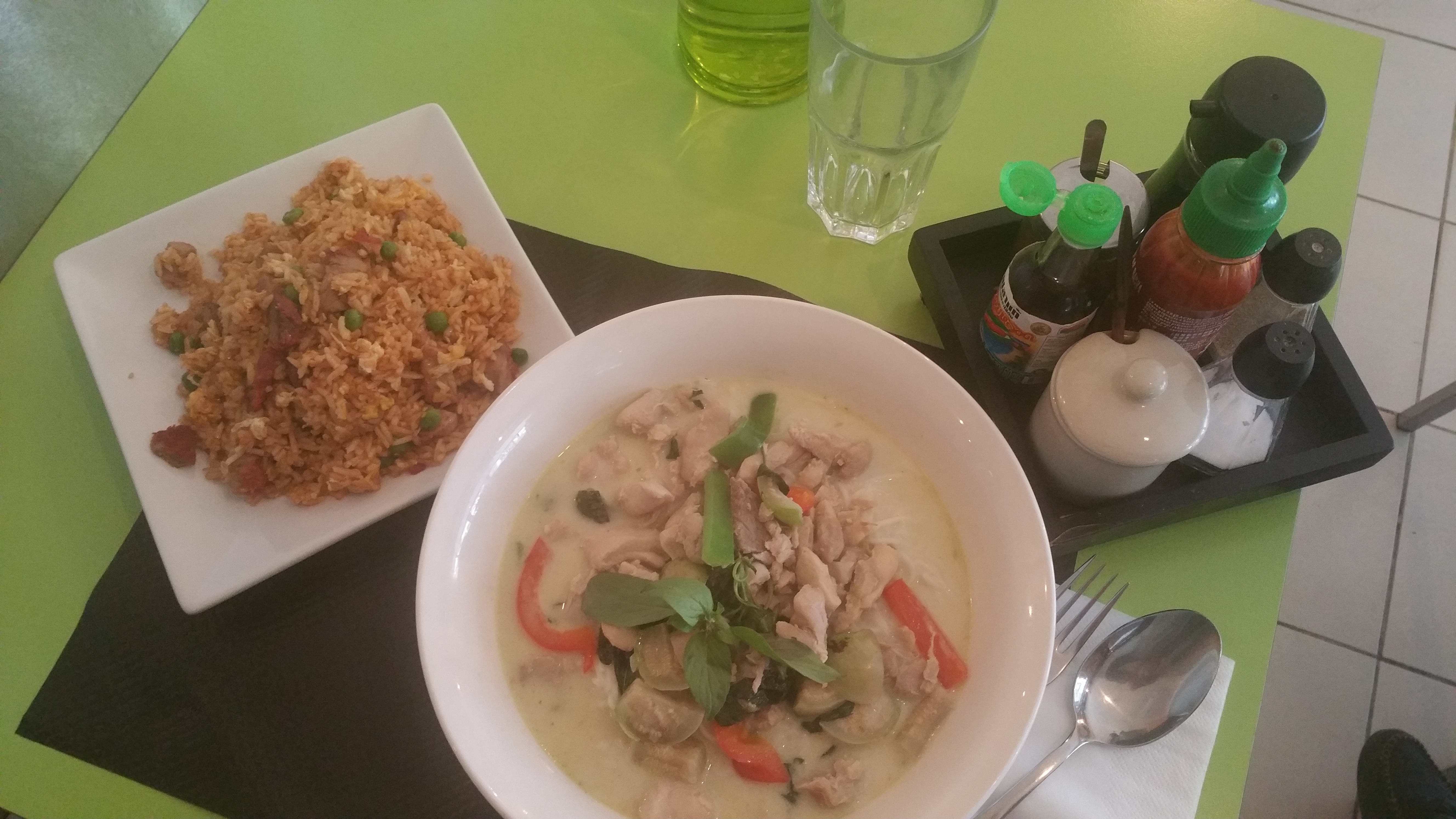 Je pris un poulet curry rouge et coco, ce plat était vraiment très bon j'ai retrouvé les saveurs que j'ai eu en Thaïlande je recommande.