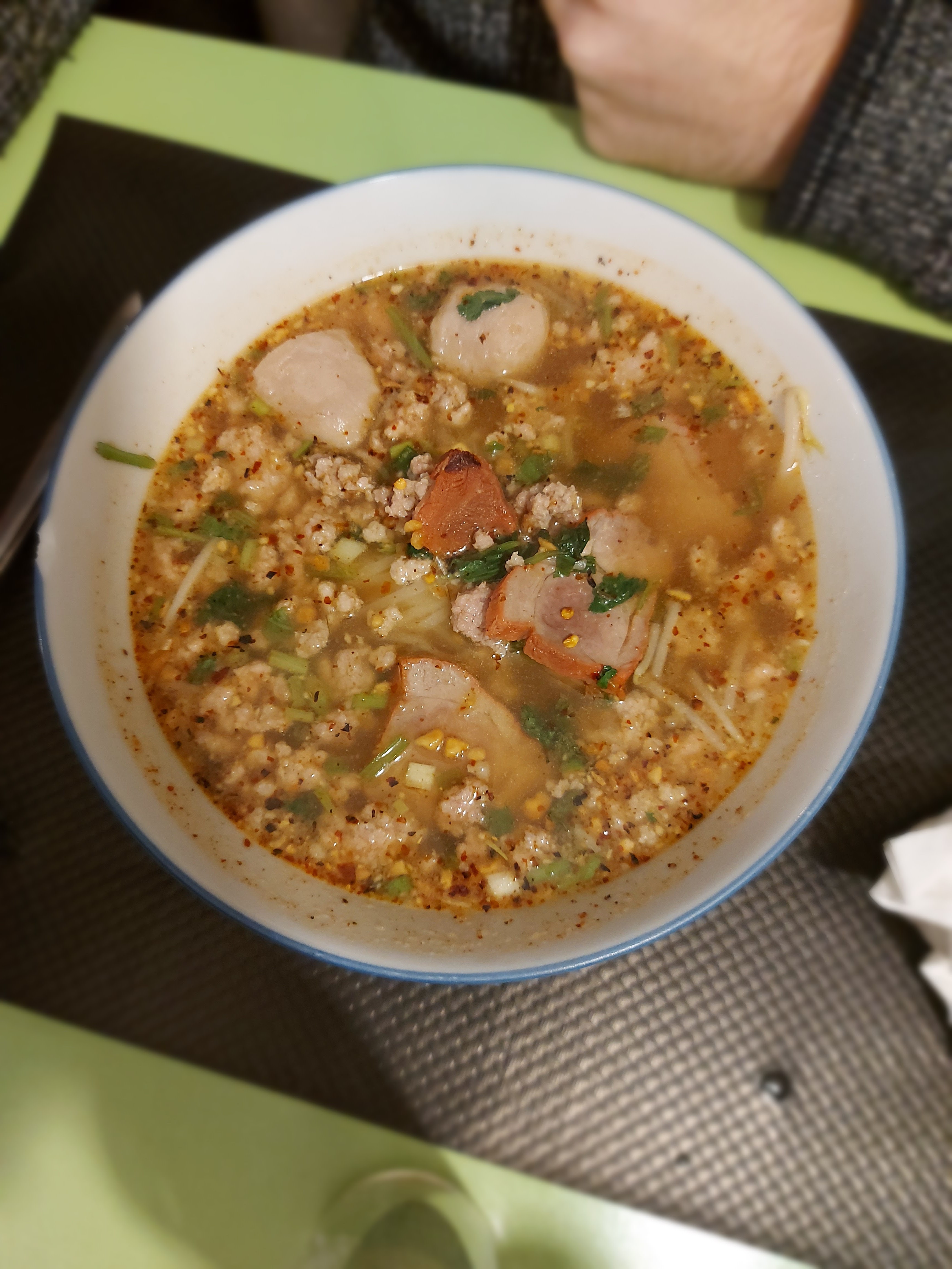 Très bon (vrai) thaï Mention spéciale pour la soupe de nouilles au porc piquant, peut être un poil trop sucrée mais j'adore ! La salade porc fermenté est top aussi