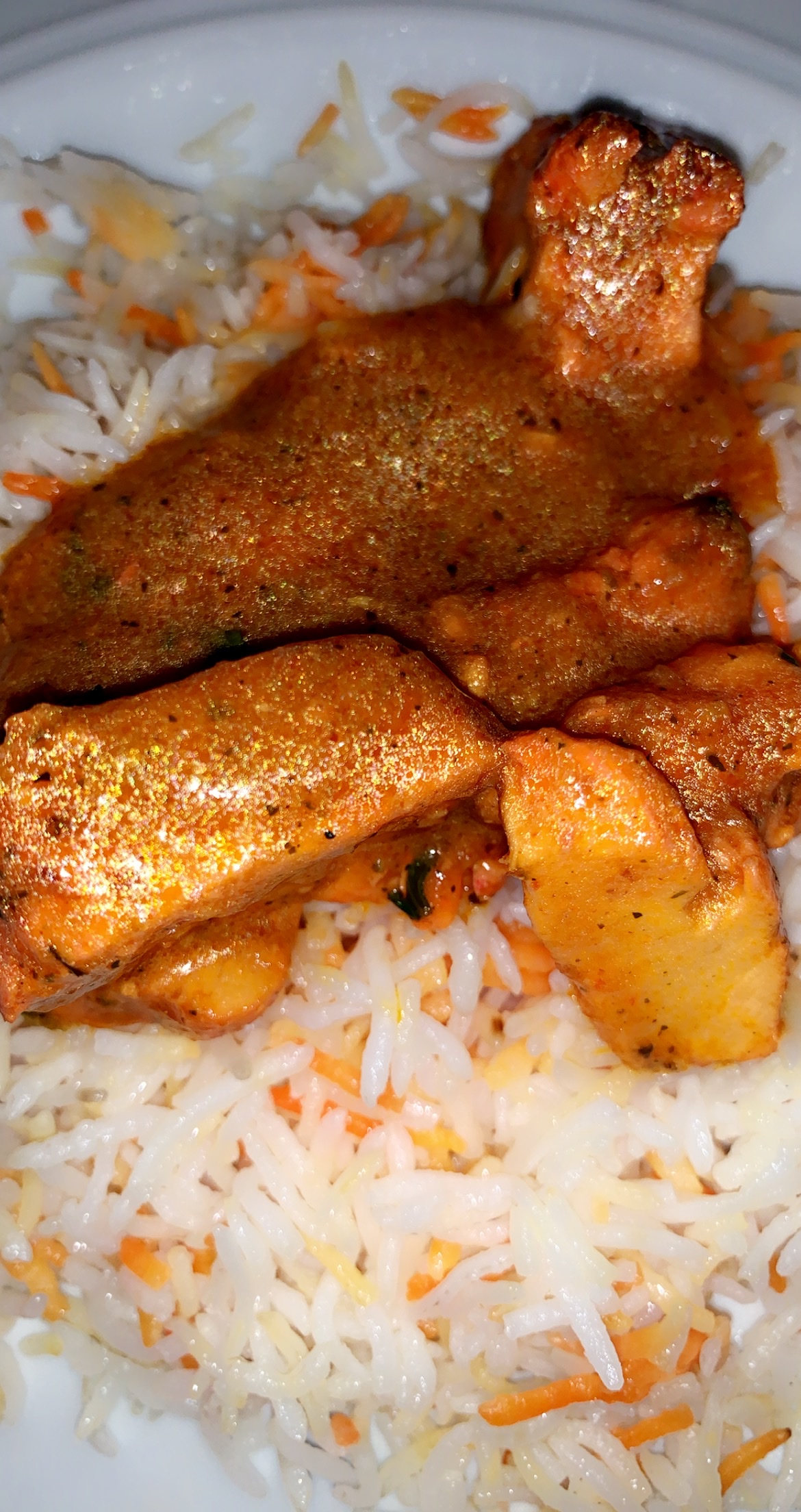 Commande passée en livraison. Le riz biryani était bien parfumé et épicé et il y avait une bonne quantité de poulet dans le plat. C’était vendu avec une sauce tikka masala