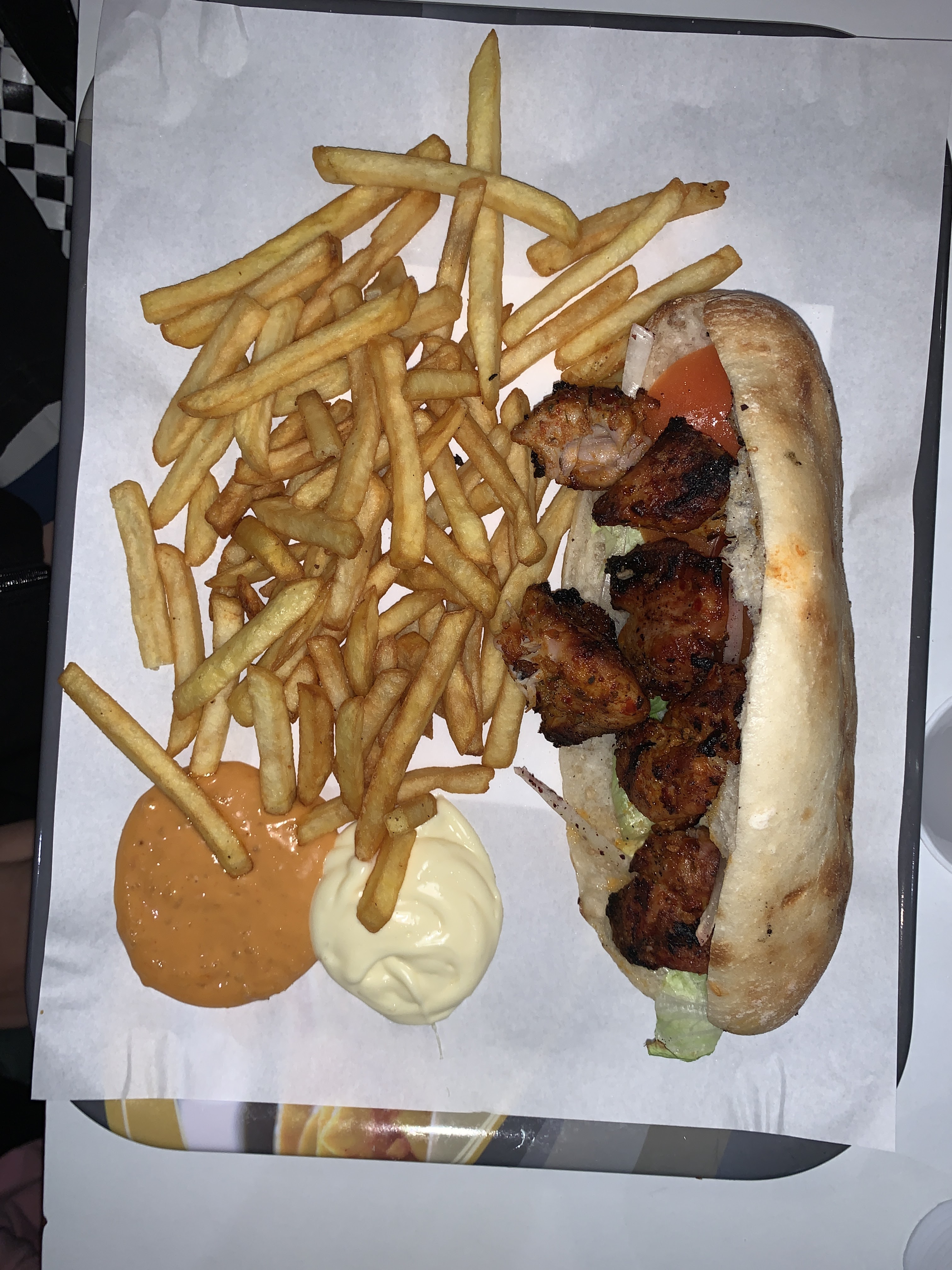 Degueulasse…. Je suis venue hier avec des copains c’était pas du tout bon yavais un cheveux sur les frites ça m’a donner envie de vomir et 7€pour un kebab c’est quand même très cher je vous le déconseille et la demoiselle a la caisse était pas du tout souriante elle nous a fait la gueule pour 30 centimes et c’était sale #tressale