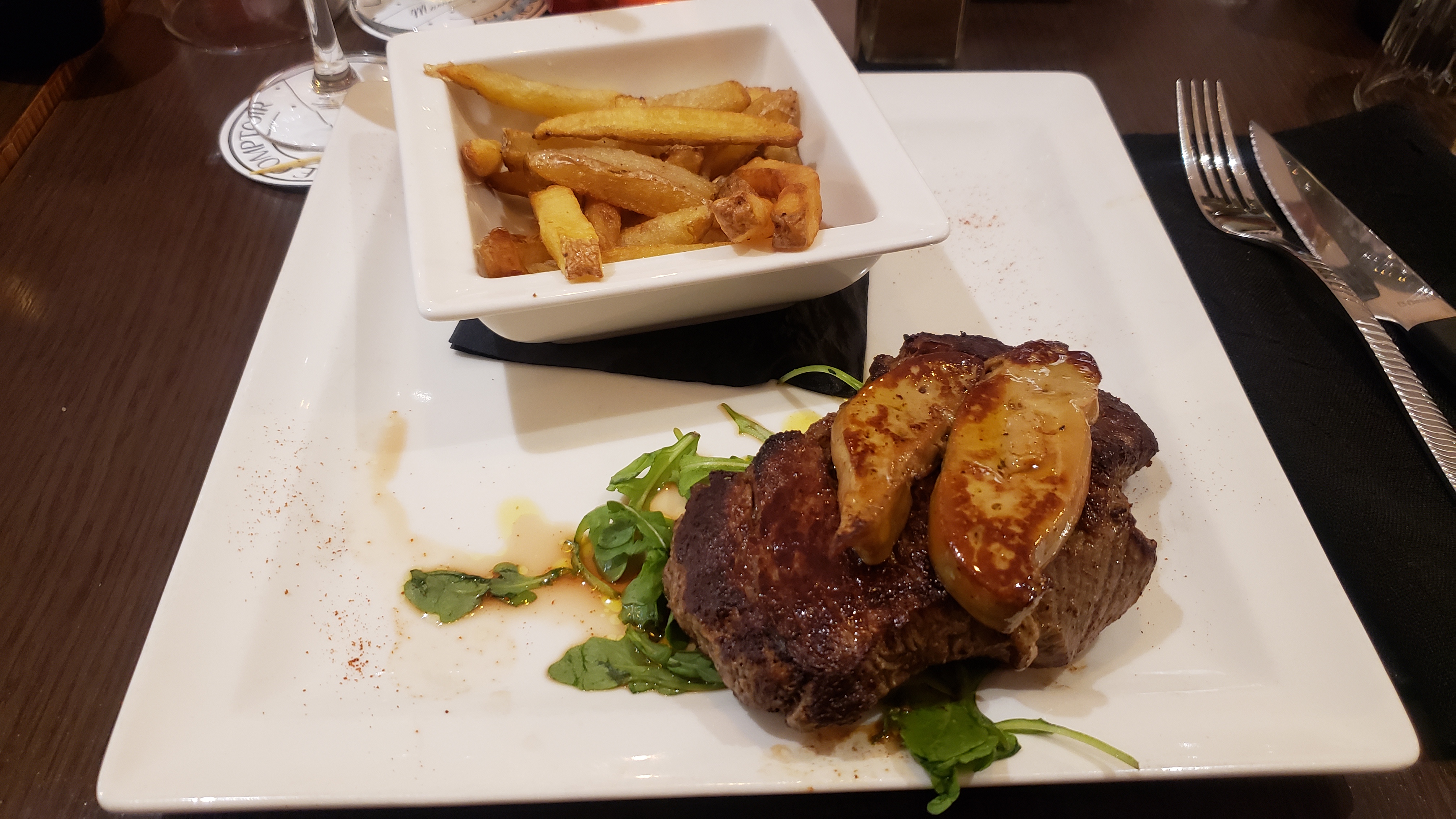 Les plats sont bons cependant petit bémol : service un peu rapide au départ (à peine assis on nous demande déjà ce que l'on veut boire...). Pour le plat plus de jambon à la truffe ... Donc jambon blanc classique (mais au prix du jambon à la truffe au final). Les verres à peine entamé que les plats arrives déjà. Puis nous commandons les desserts et on nous informe qu'il y a 10 minutes d'attente. 10minutes... 20minutes...25minutes mais que ce passe t -il? On a juste oublié notre commande, ok on repasse donc commande sauf que la plus de brioche perdue (vendredi soir 21h dommage de ne pas prévoir). Alors un peu gavé on a pris l'addition en désert. J'espère pour eux que ce type de service n'est qu'une exception je cherchais un nouveau restaurant pour sortir entre amis... Je n'y reviendrai pas.