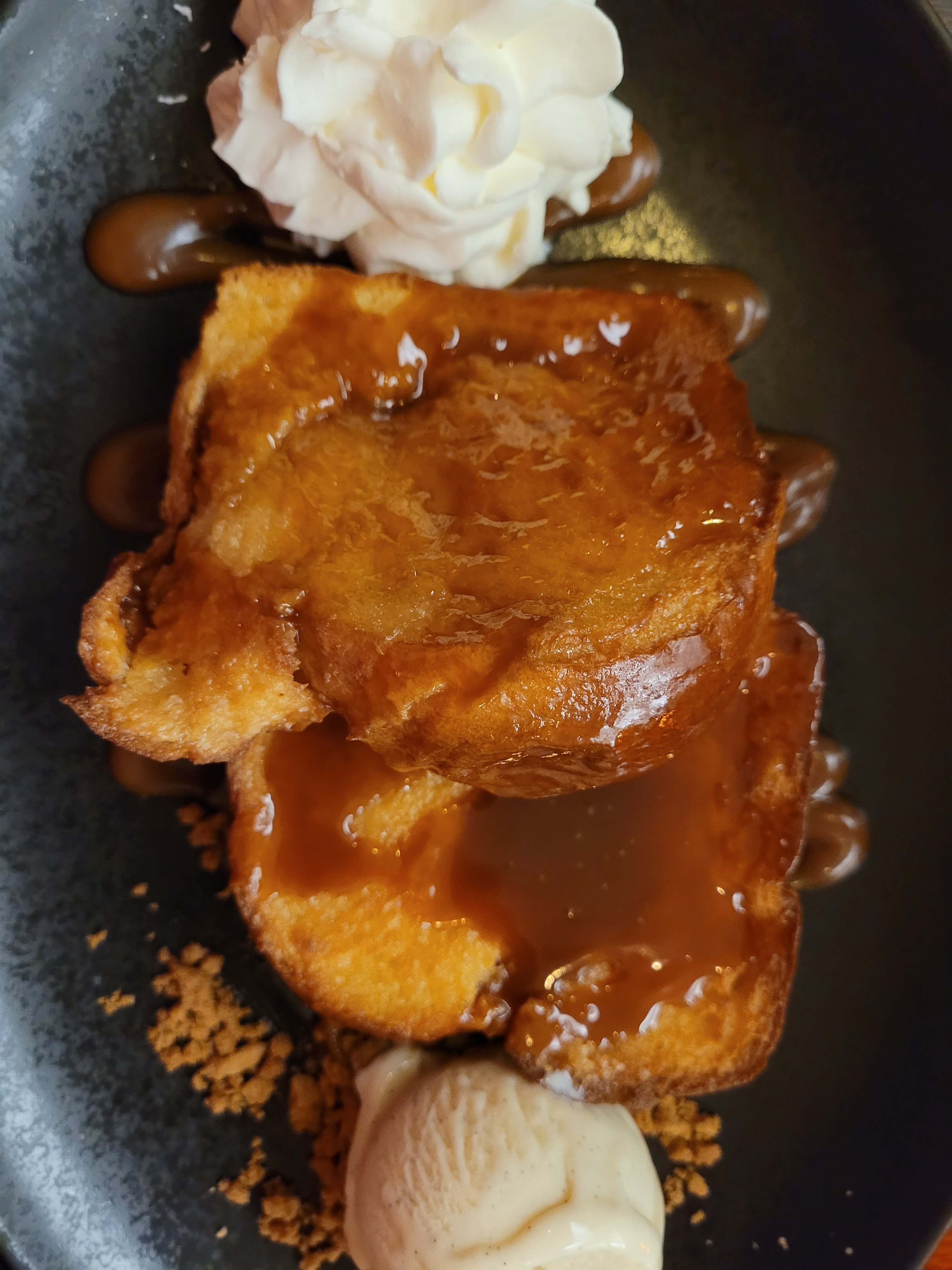 Service impeccable, personnels sympas, bonne idée le plat mi-pizza + salade quant au dessert, brioche perdue, excellente et énorme, heureusement que nous avons pu en ramener une tranche à la maison 😀