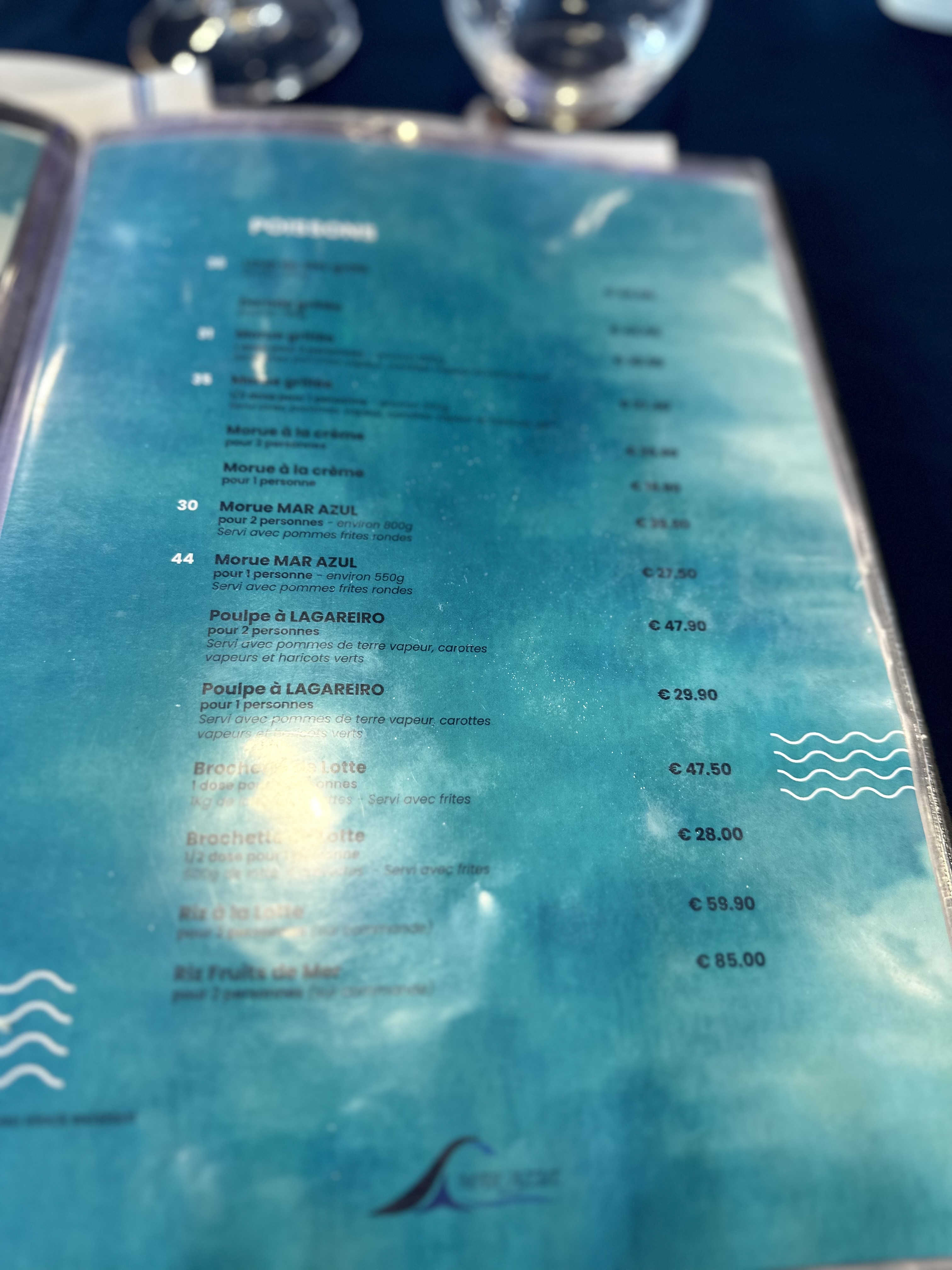 Très très bon restaurant de fruits de mer portugais et pas que vous avez un large choix de poissons et de viandes et de desserts le restaurant se constitue d un étage avec accès au fauteuil roulant par l ascenseur les WC sont très propre et sente bon vous y trouverez du gel hydroalcoolique a la sortie des WC le personnels très sympa agréable et rapide petit bémol un peu trop laxiste sur les masques beaucoup de clients ne le porte pas et personne ne leur dit rien je parle des patrons et des serveurs malgré que eux le porte dangereux pour les personnes a risques comme ma femme qui a un cancer sinon rien à dire je recommande