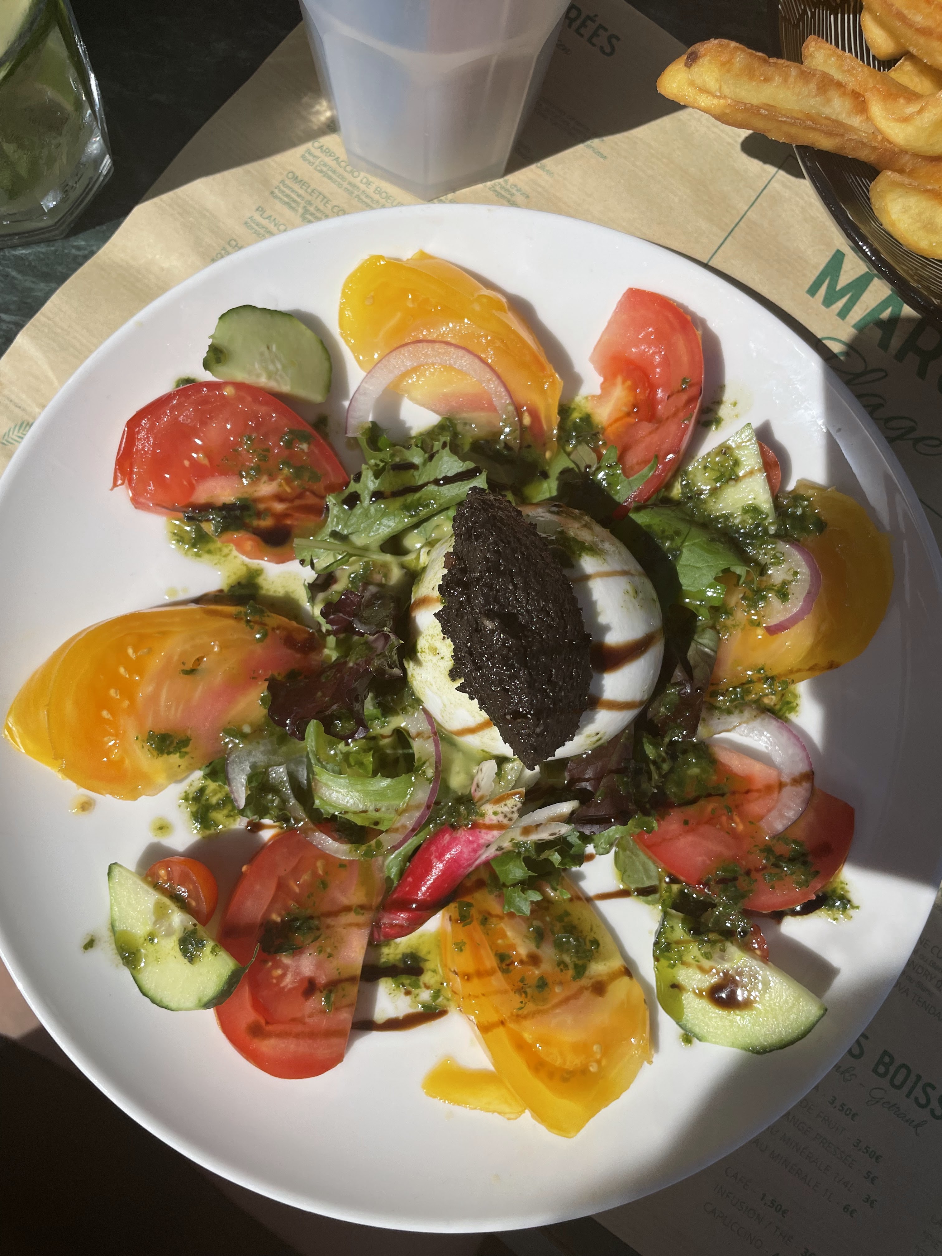 Meilleure salade Burrata 🥗 vue parfaite. Ambiance caribéenne, ambiance agréable à l'ombre, beaux plats