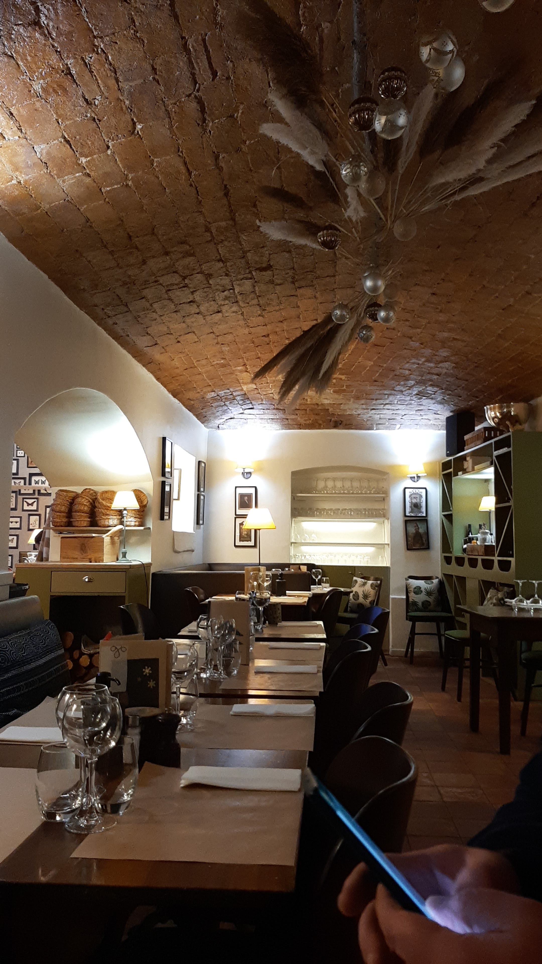 Ambiance café parisien mais sous une voûte dromoise, bonne cuisine et belle carte des vins, peu de choix pour les végétariens mais on trouve quand même !